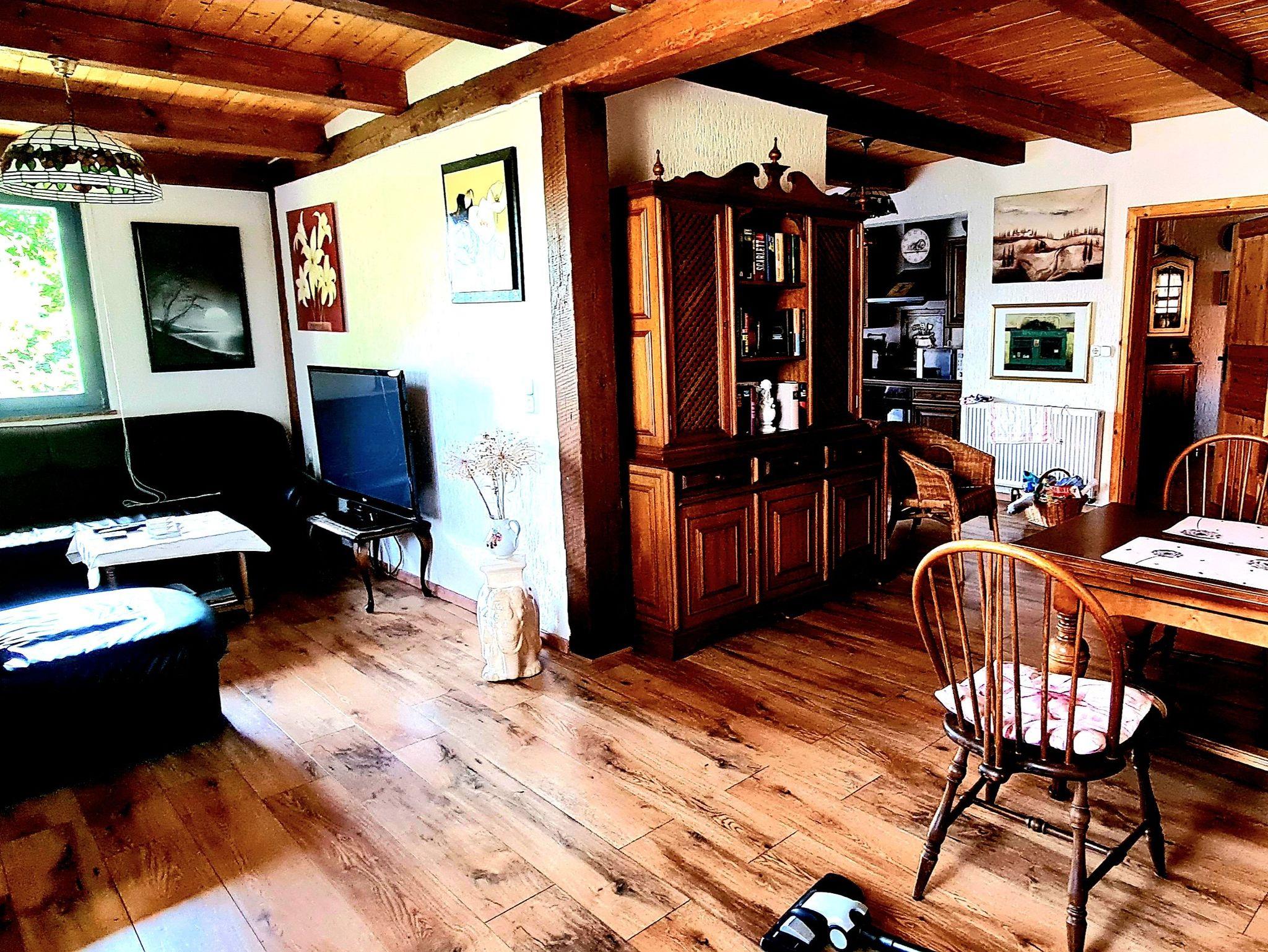 • Die Fußböden im Wohnzimmer und Schlafzimmer haben Holzfußbodenbelag, Bad mit Fliesenfußboden;