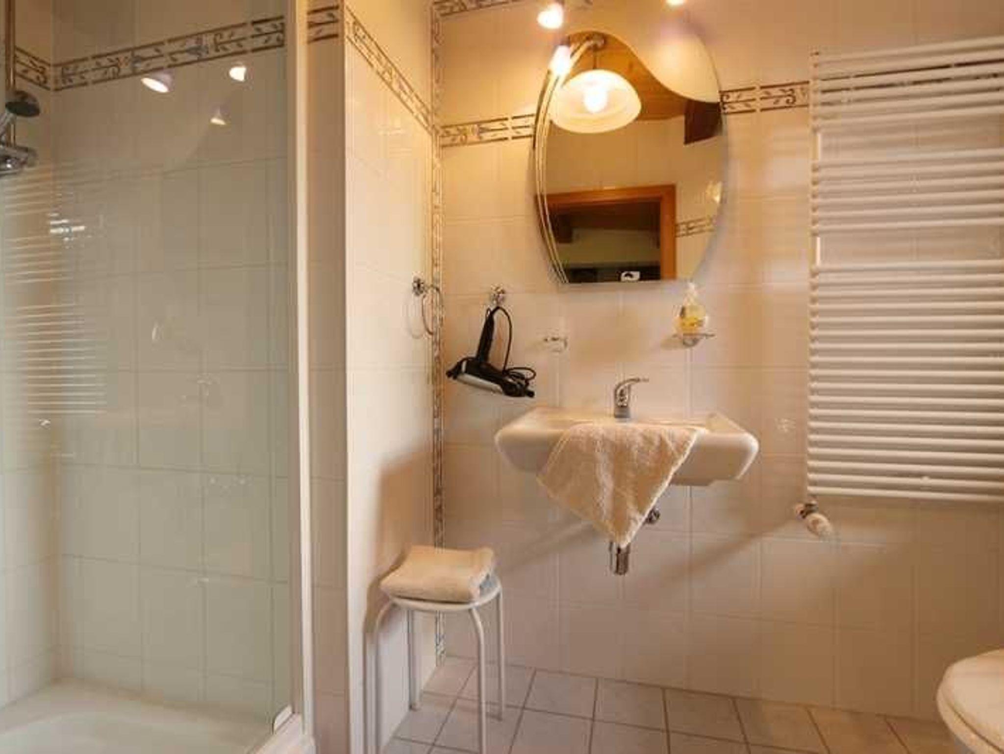 • Bad mit Dusche, WC, Waschbecken, Haarfön und Handtuchtrockenheizkörper;