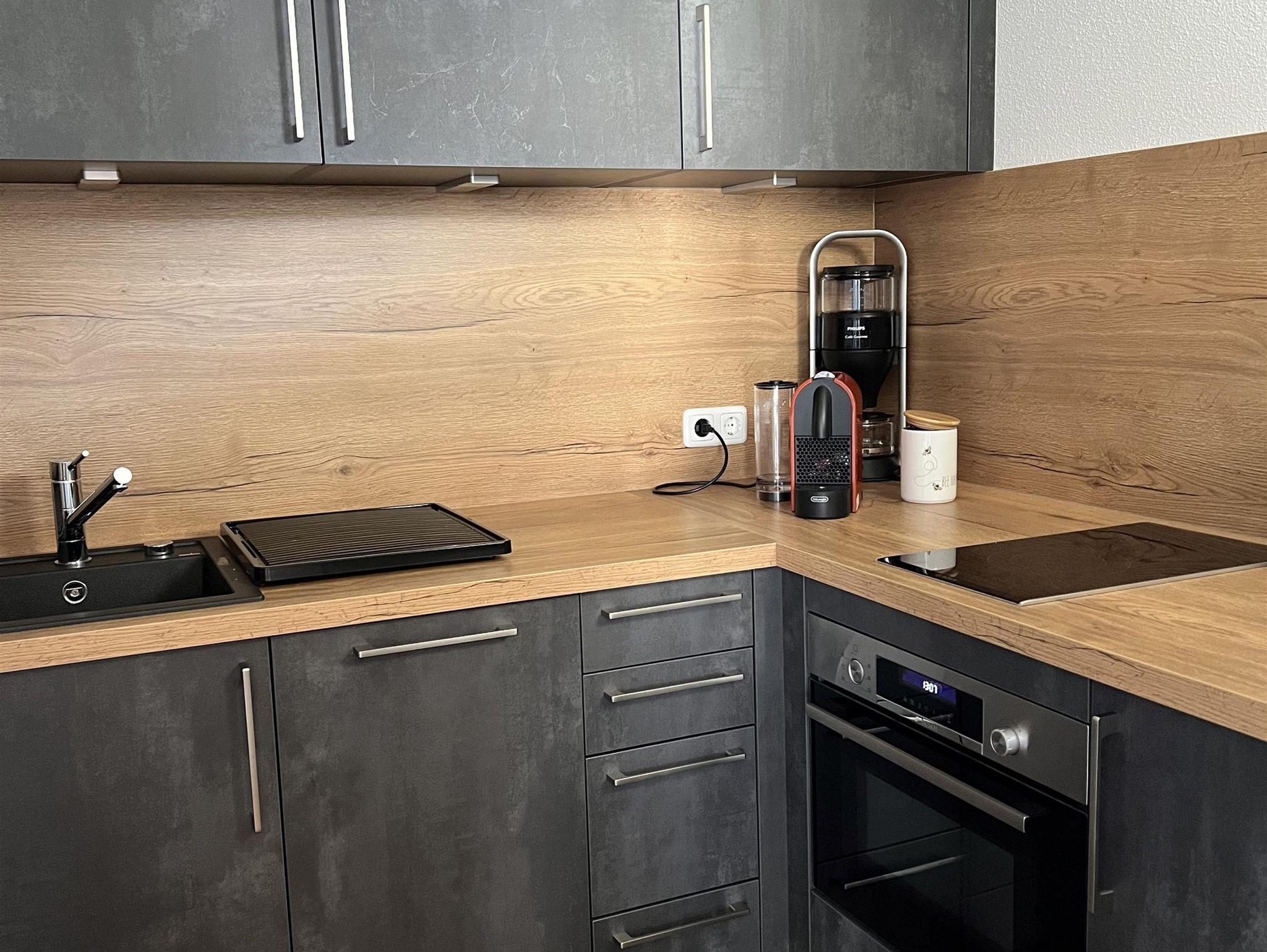 Ausstattung Küche - Kühlschrank mit kleinem 3*Gefrierfach, Kaffeemaschine, Nespressomaschine, Milchaufschäumer, Mikrowelle mit Backofenfunktion