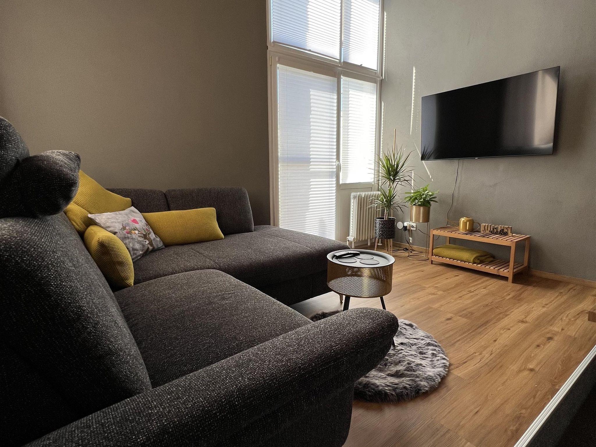 Ausstattung Wohnbereich - Eckcouch, 55 Zoll Fernseher