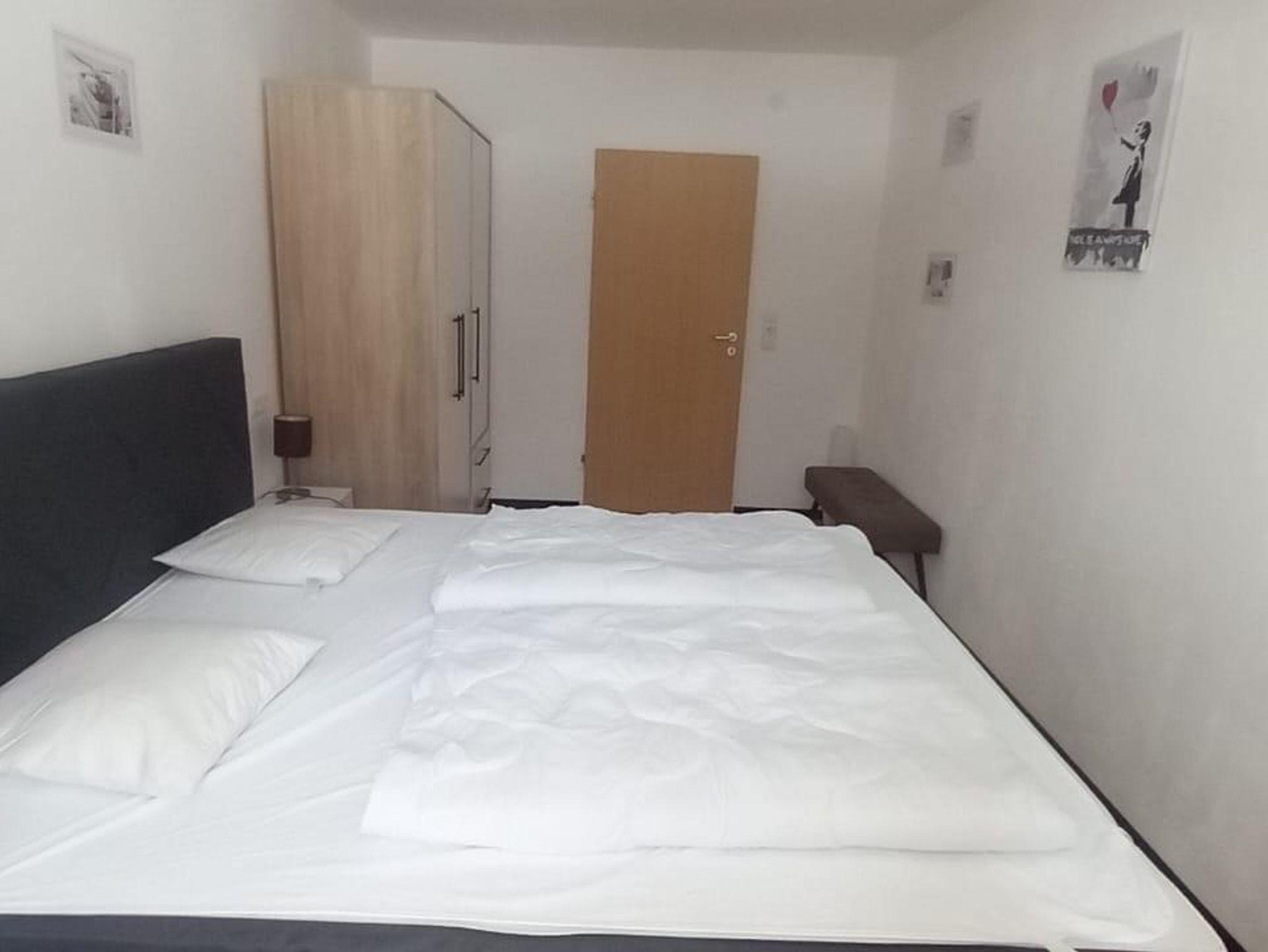 Schlafzimmer 2 im Erdgeschoss mit Boxspringbett 1,80, großer Kleiderschrank