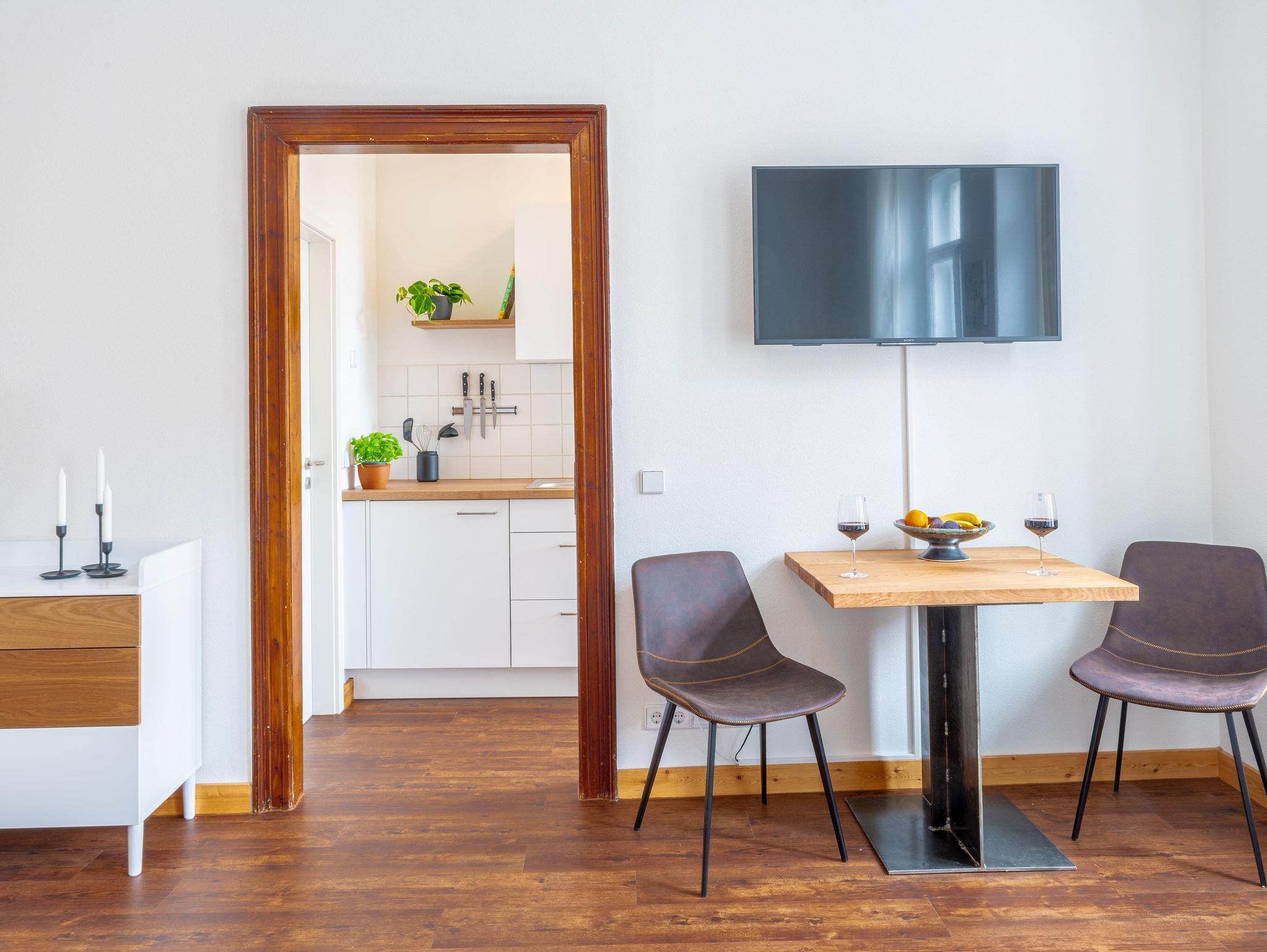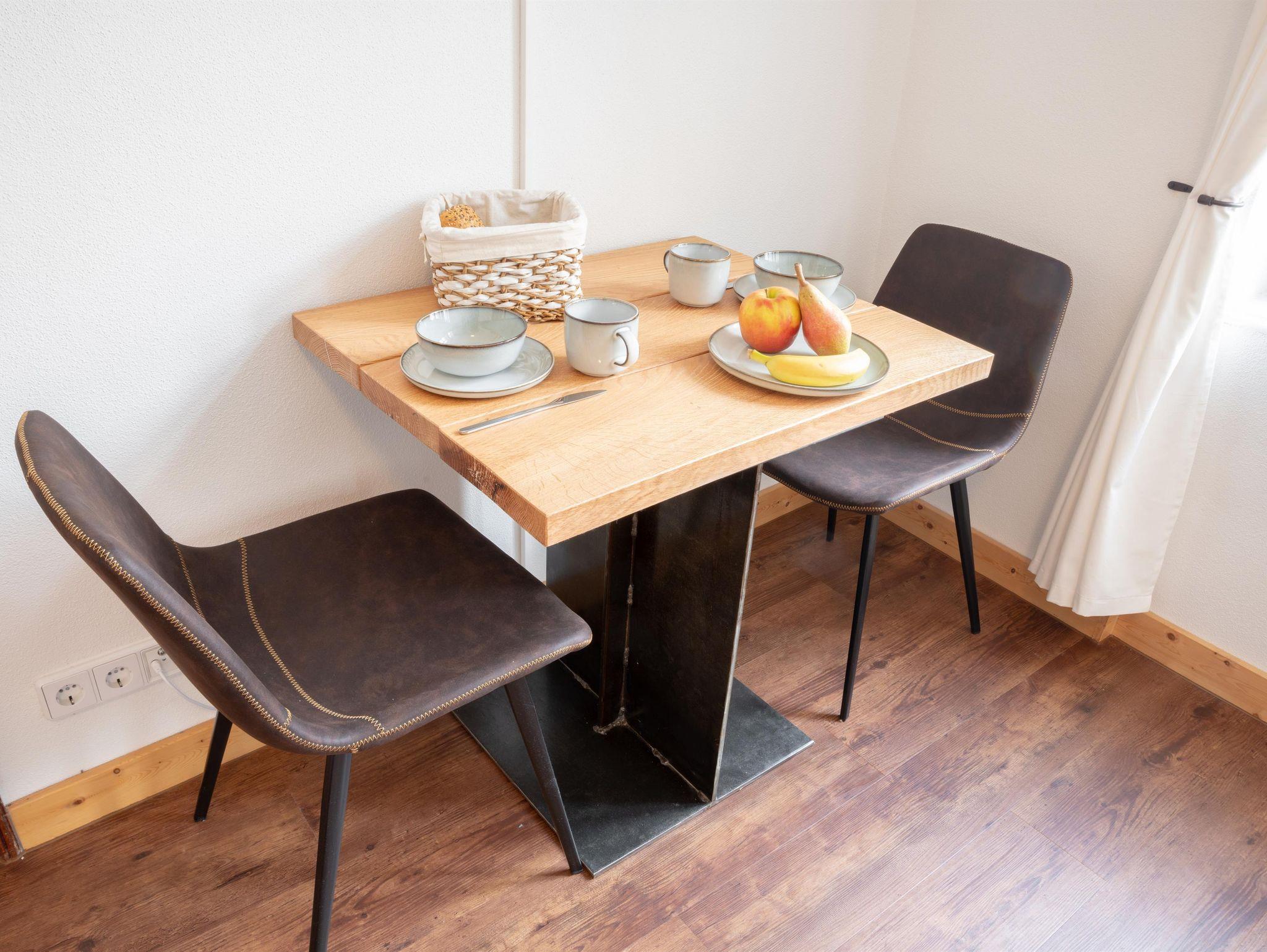 Am gemütlichen Holztisch lassen Sie sich Ihre Mahlzeiten schmecken oder nutzen ihn als Schreibtisch für kreative Ideen. Neben dem internetfähigen Smart-TV steht Ihnen selbstverständlich kostenloses WLAN zur Verfügung.