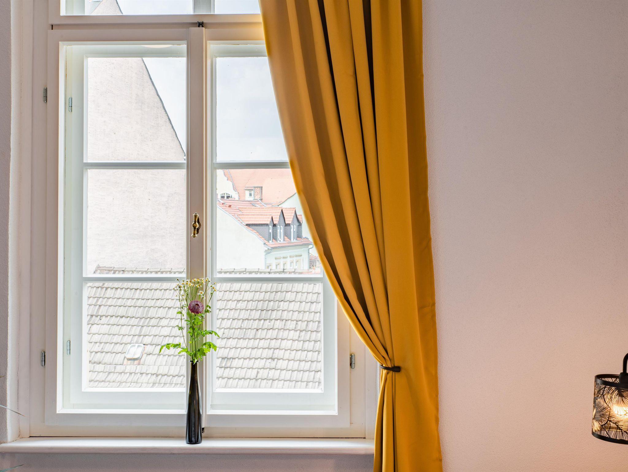 Diese großzügig geschnittene und stillvoll eingerichtete Ferienwohnung befindet sich in der dritten Etage des Sächsischen Hofs Meißen.
