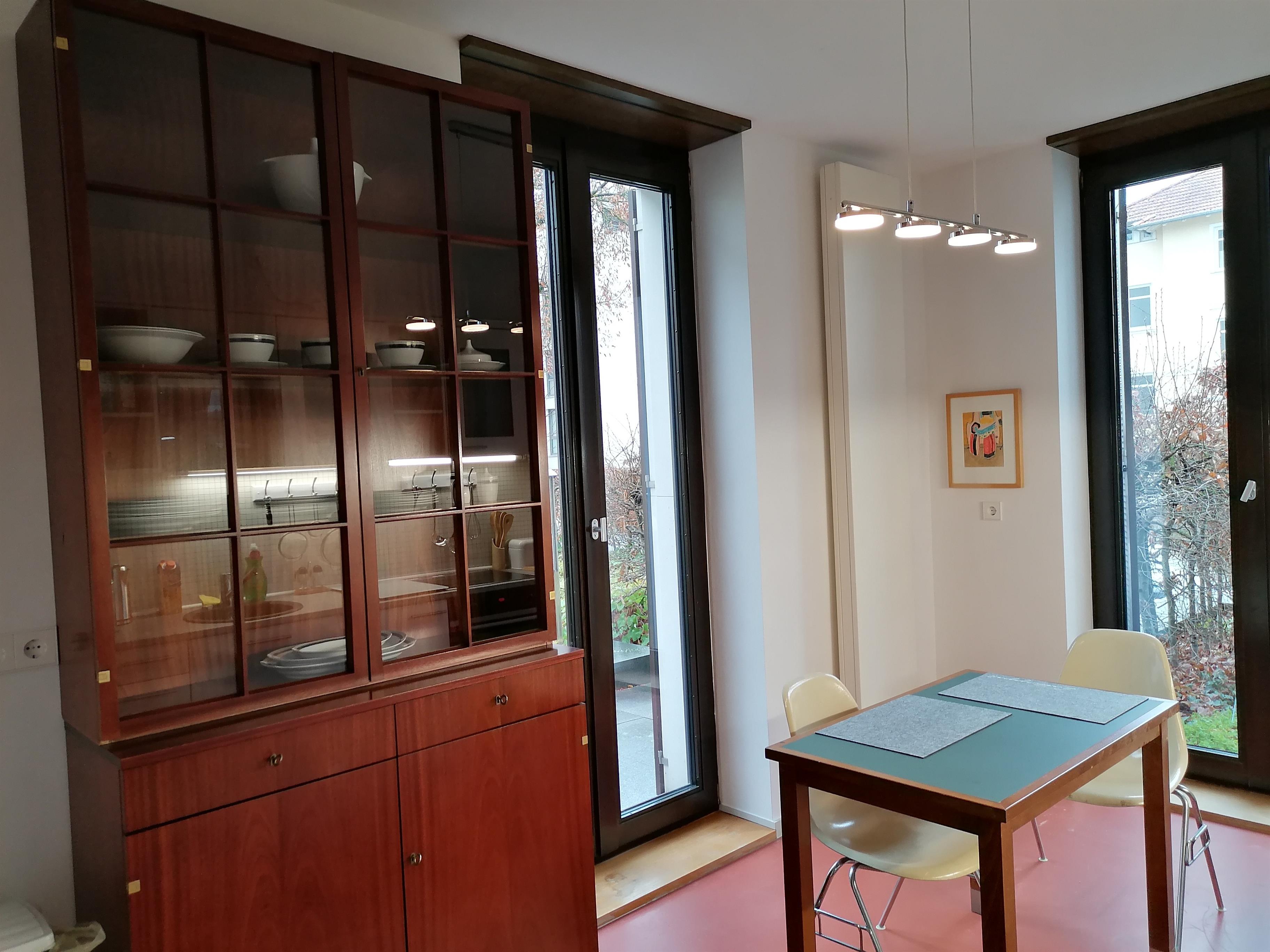 Die schöne Architekten-Villa liegt in lauf Entfernung zum Bahnhof, zum Theater, zum Park und in die Altstadt. Die Wohnung ist voll ausgestattet. Mit hochwertigem Parkettboden und möbliert mit Design- und Wohnklassikern. Das Badezimmer mit Fliesen im Bauhaus Stil der 30er Jahre. Zusätzlich gibt es eine überdachte Außenterrasse, die über den Wohn- und Esszimmerbereich erreichbar ist (Sitzmöbel wie Tisch und Stühle) werden im Frühjahr auf der Terrasse bereit gestellt.