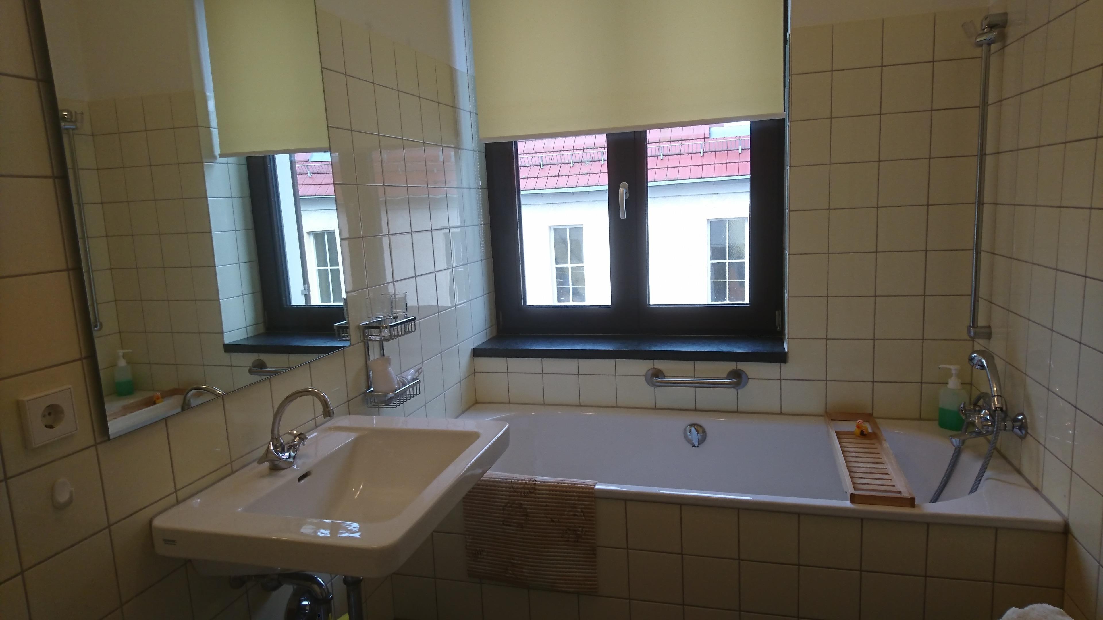 Badeværelse med bruser og badekar