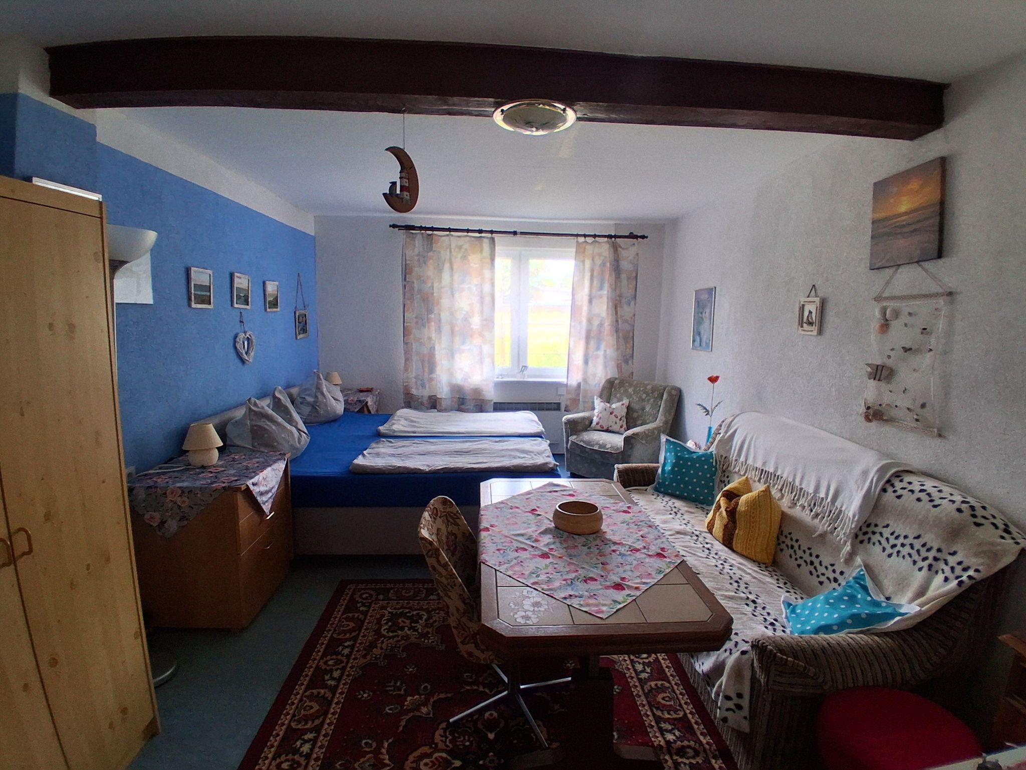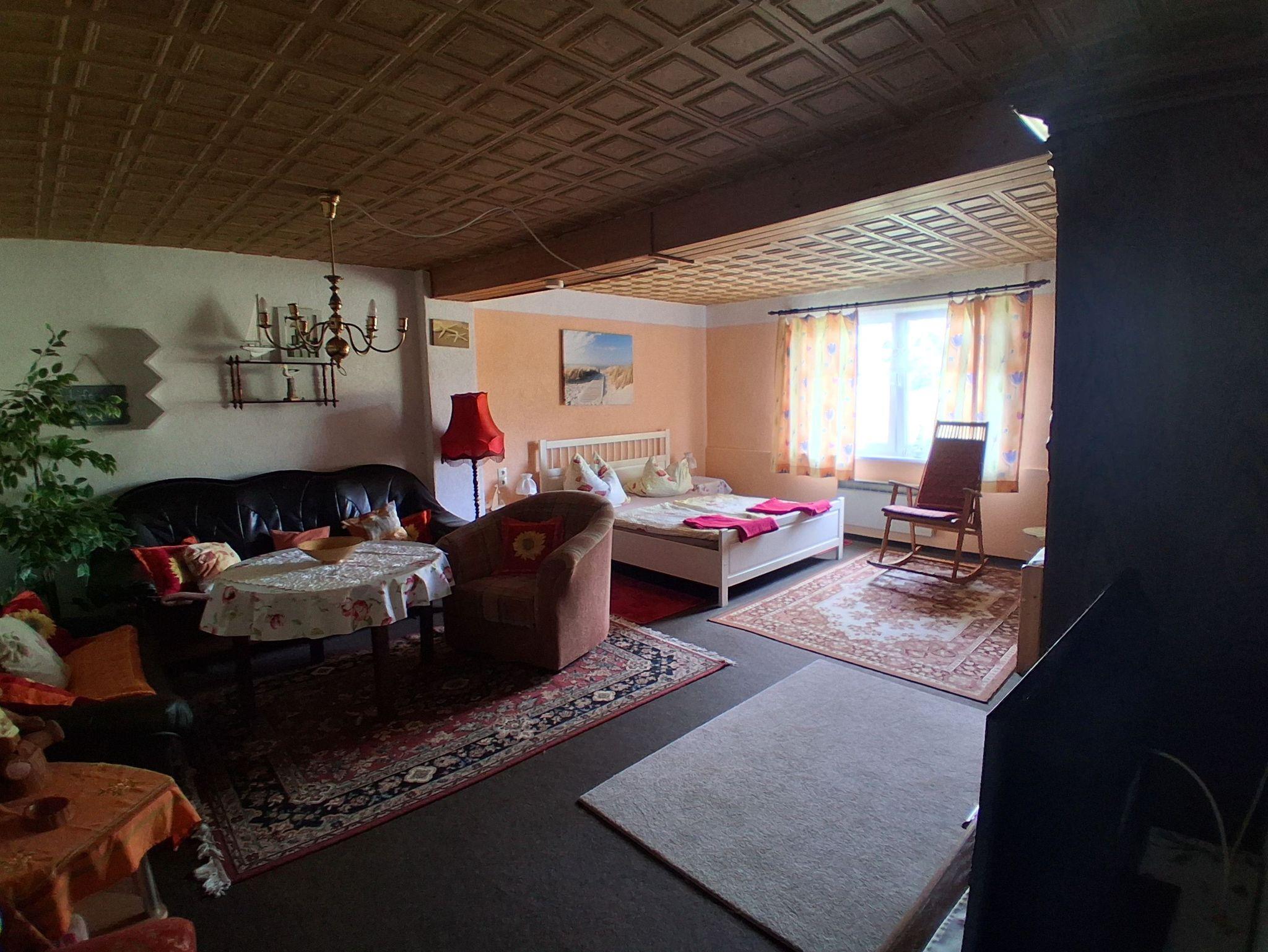 Die Ferienwohnung ist ca. 120 m² groß und befindet sich im Erdgeschoss. Sie verfügt über drei kombinierte Wohn- & Schlafbereiche mit Sofa und Doppelbetten, zwei Bäder mit Dusch/WC einer separaten Küche. Im großen kombi. WZ/SZ befindet sich ein Fernseher und im kleinen WZ/SZ ein separate Kochgelegenheit. Die Küche ist ausgestattet mit einer Küchenzeile mit Kaffeemaschine, Toaster, Wasserkocher und Kühlschrank. Die Erstausstattung Bettwäsche und Handtücher sind im Gesamtpreis enthalten. Im Garten steht Ihnen eine Sitzecke und ein Grill zur Verfügung, mit dem Sie einen perfekten Grillabend einplanen können. Außerdem befindet sich im Garten ein Trampolin und ein Basketballkorb.