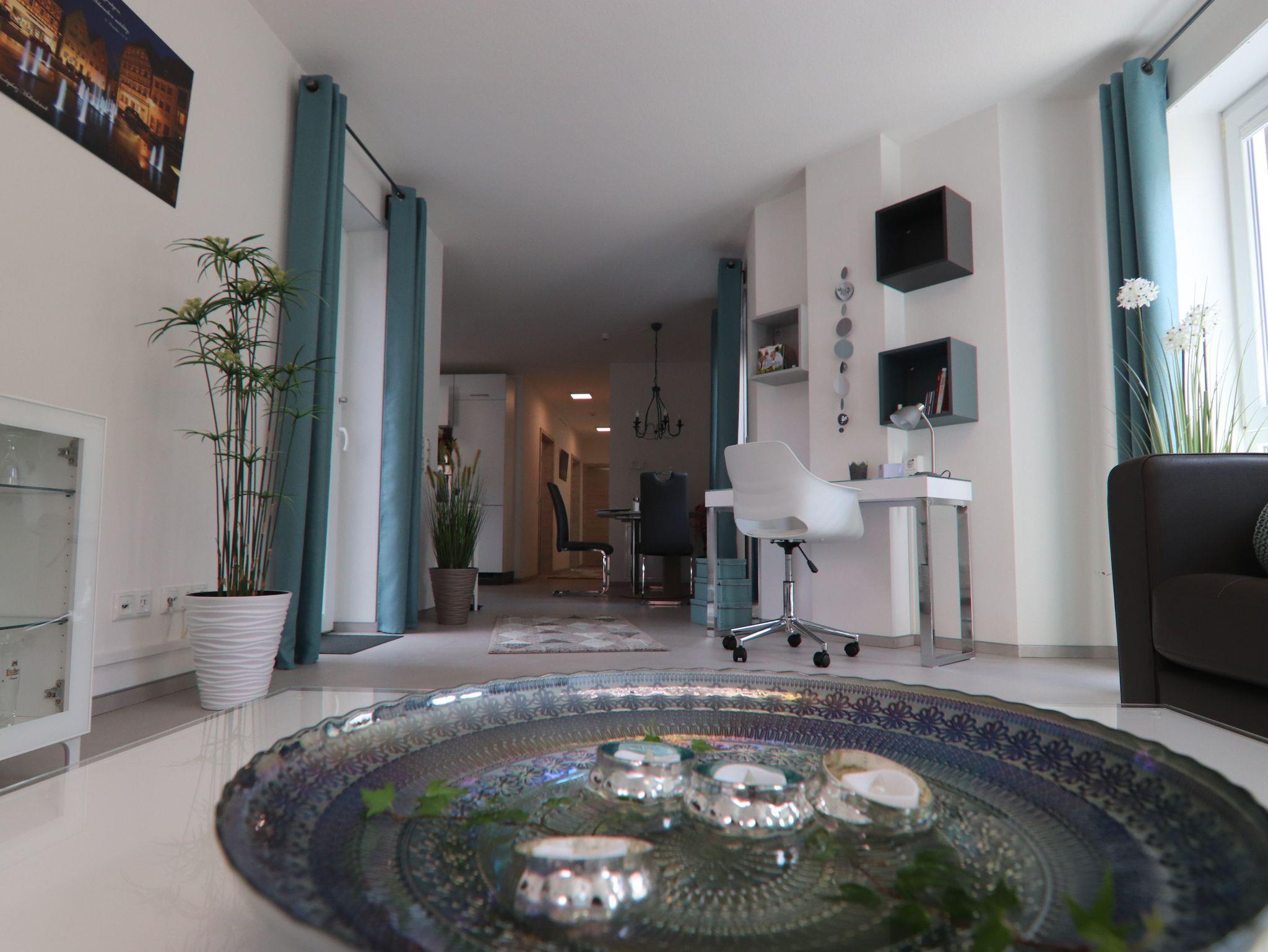Wir heißen Sie herzlich Willkommen in unserer luxuriösen und neu eingerichteten Ferienwohnung im Herzen von Mellrichstadt. Zentral gelegen, mit eigener Terrasse, Autostellplatz und E-Ladestation, sind Sie in nur 3 Gehminuten mitten im Zentrum. Unsere helle, sowie liebevoll eingerichtete Wohnung mit vielen Raffinessen lädt zum Kuscheln und Verweilen ein. Das Schlafzimmer mit seinem Boxspringbett sorgt mit hochwertigen Matratzen für eine erholsame Nachtruhe. Sollten Sie Ihre Urlaubslektüre vergessen haben, werden Sie Begeisterndes in unserem Bücherregal finden.