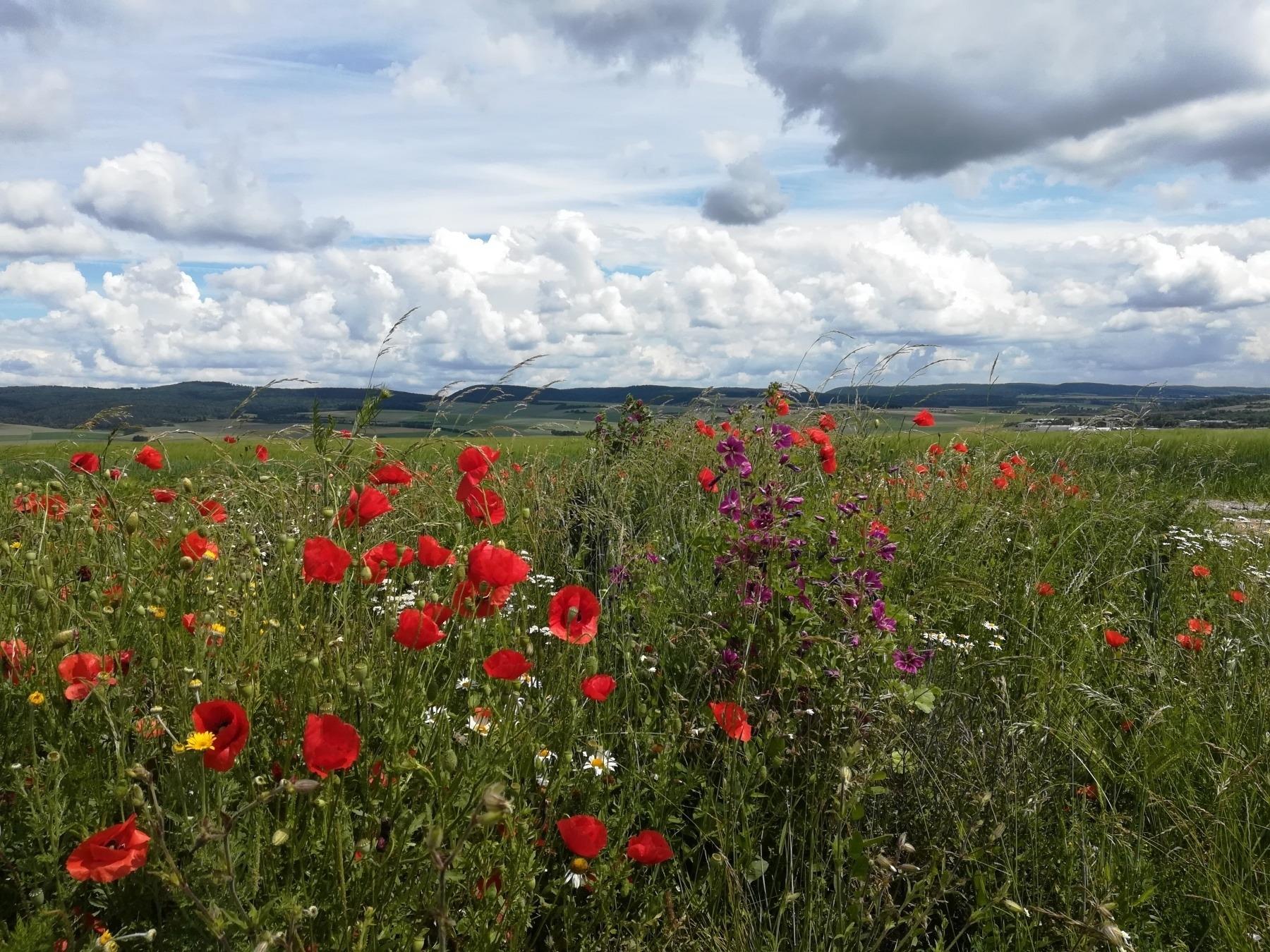 Durchgangsverkehr rings um mit freien Blick in die Landschaft. Wanderwege beginnen direkt