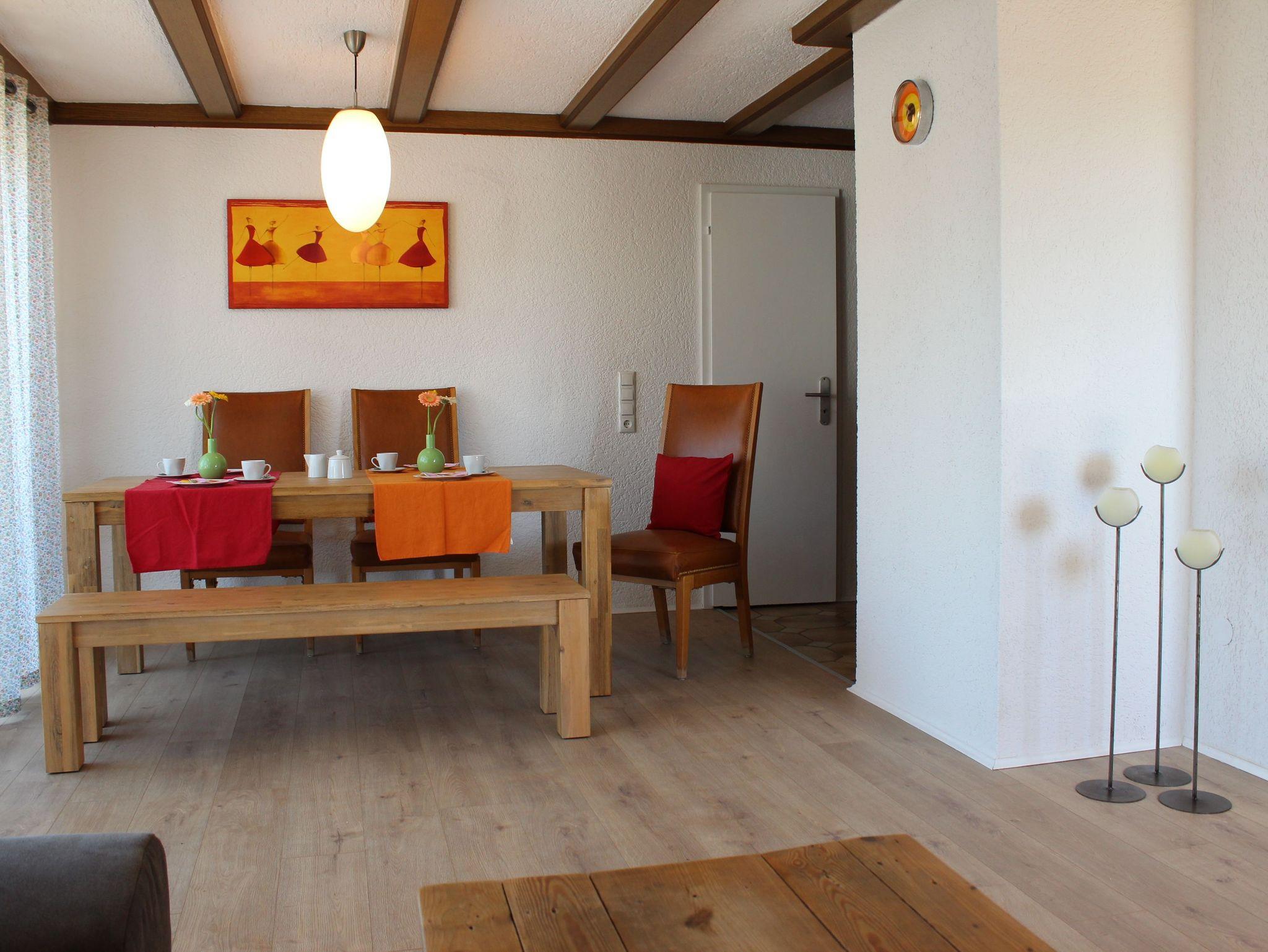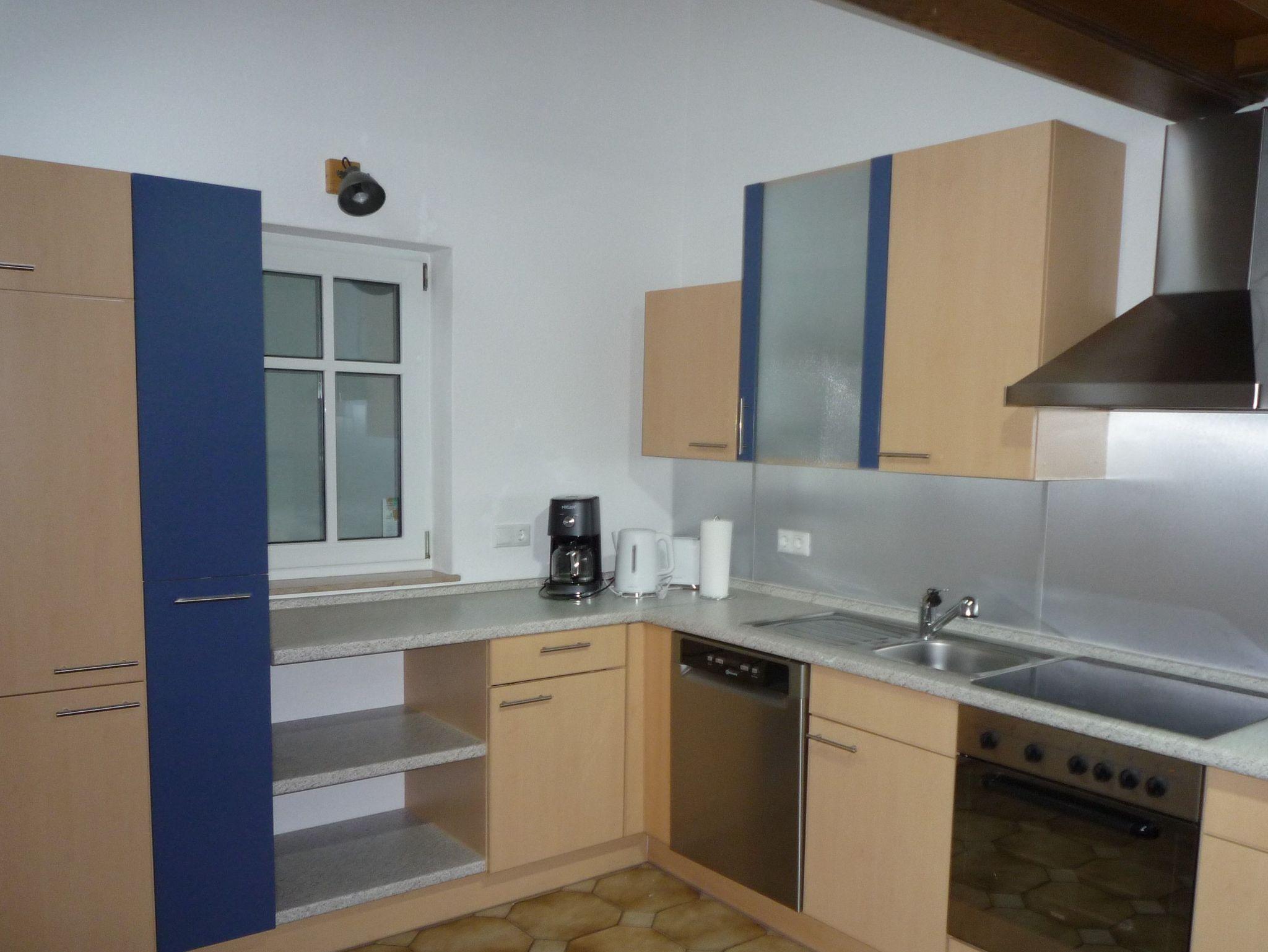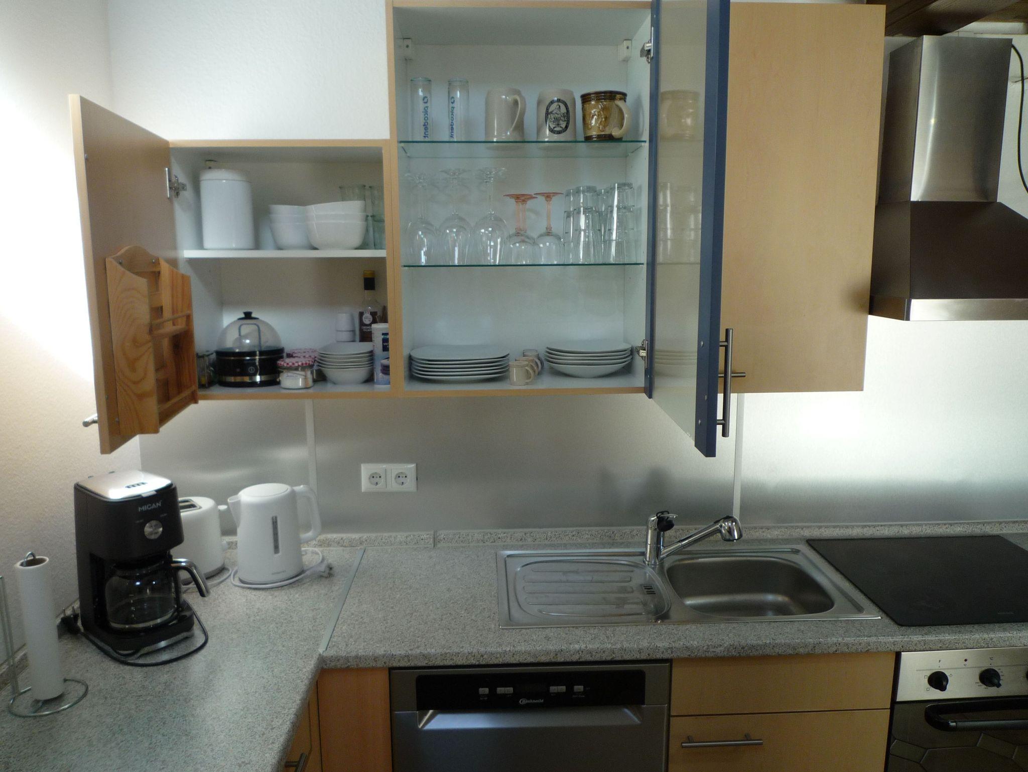 Unsere Ferienwohnung mit ca.93 qm verfügt über eine Einbauküche mit Herd,Kühlschrank,Spülmmaschine,Kaffeemaschine,Wasserkocher,Toaster und verschiedene Küchenutensilien