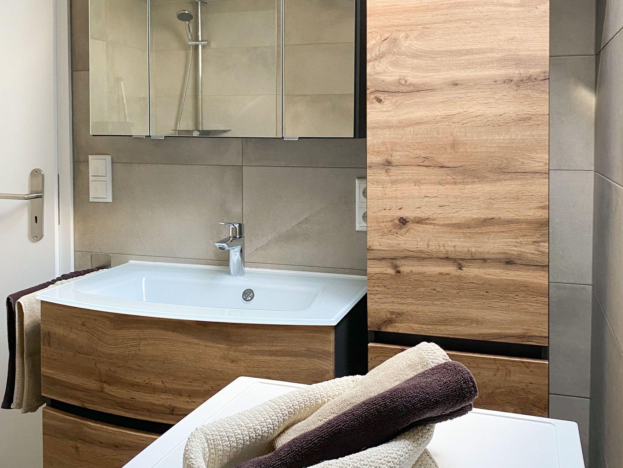 Badezimmer mit Dusche,Föhn und Waschmaschine. Separates WC.