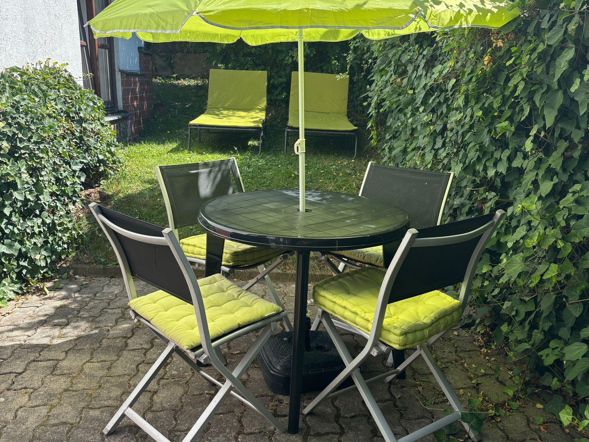 Im Garten befindet sich eine eigene nicht einsehbare Terrasse mit Sonnenliegen, 4 Sitzplätzen und einer Grillmöglichkeit. Im Badezimmer befindet sich eine Waschmaschine.