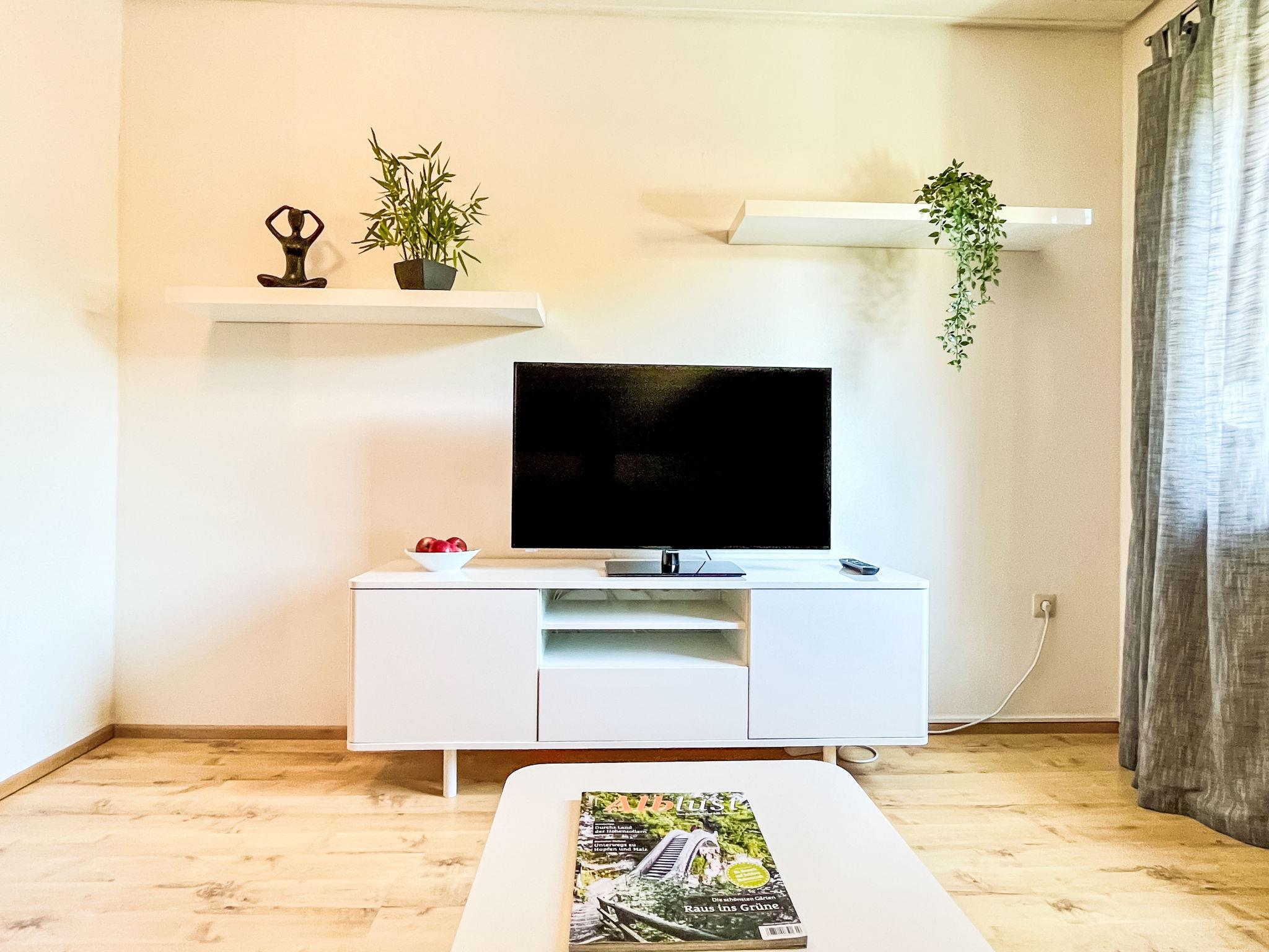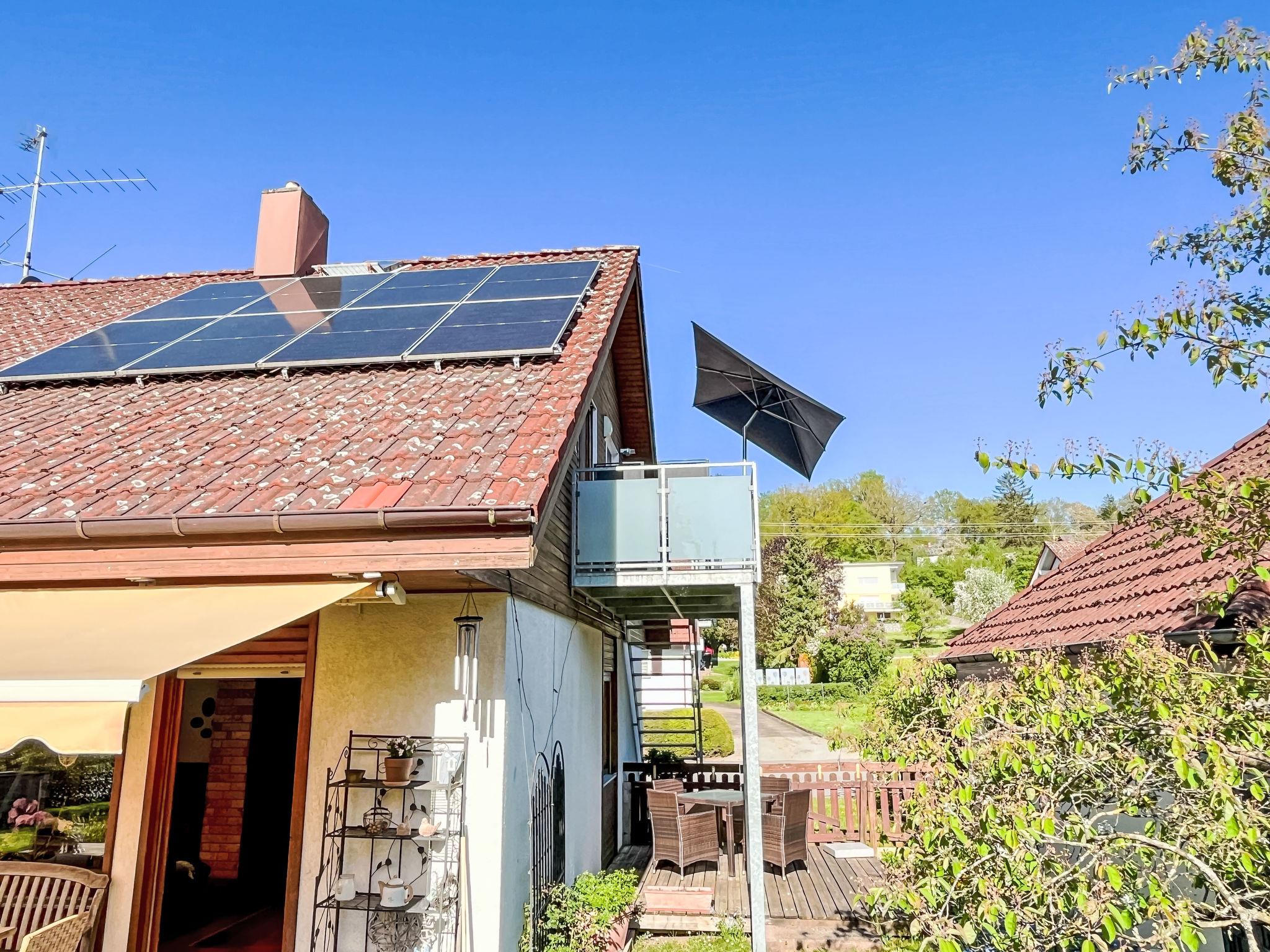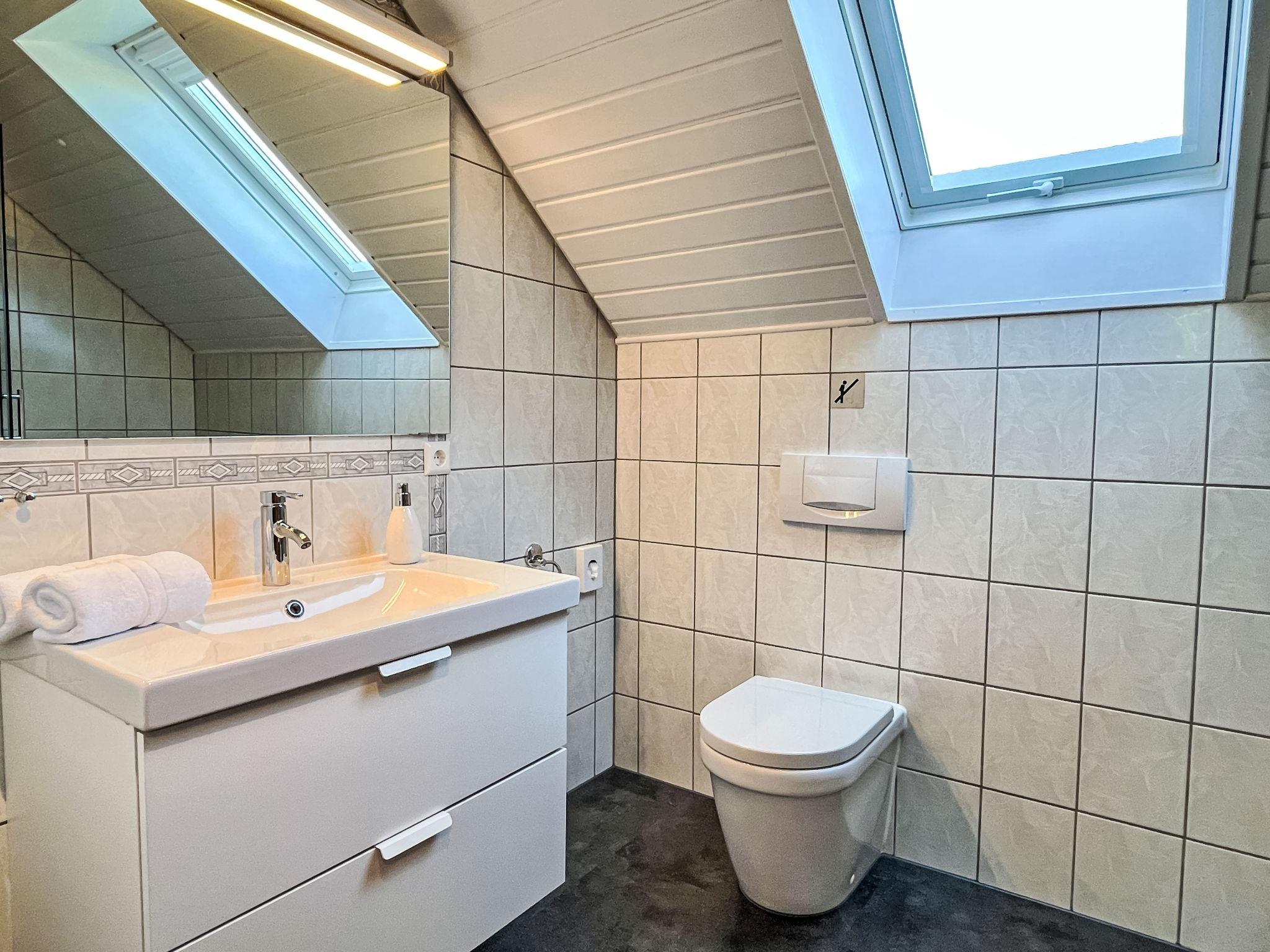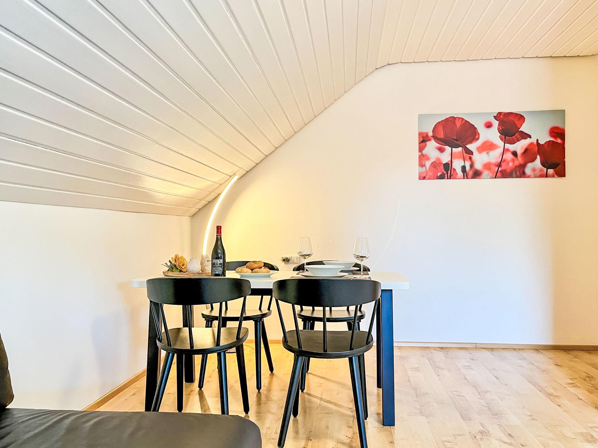 "Land in Sicht", 2-room apartment 60 m2, on the top floor. Bright, partly with sloping ceilings, beautiful and tasteful furnishings: living/sleeping room with 1 double sofabed (160 cm), dining table and satellite TV (flat screen). 1 room with 1 double bed and satellite TV (flat screen). Kitchen (oven, dishwasher, 4 ceramic glass hob hotplates, toaster, kettle, microwave, electric coffee machine). Exit to the balcony. Shower/WC. Heating. Balcony. Balcony furniture. Beautiful view of the garden. Facilities: children's high chair, baby cot. Internet (WiFi, free). Parking at the house. Please note: non-smokers only. Maximum 1 small pet/ dog allowed. Smoke alarm. Separate access to the apartment via external staircase (honeycomb steps).