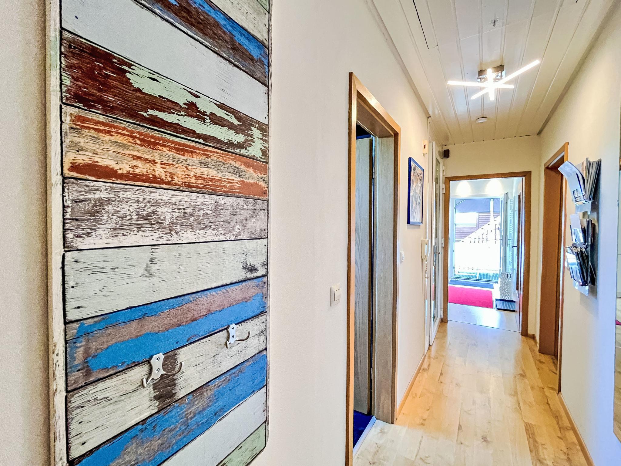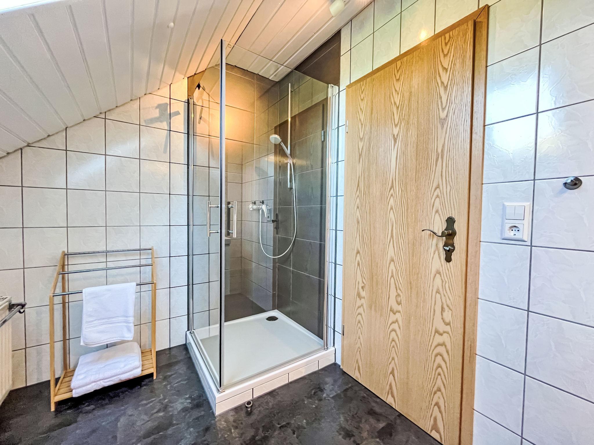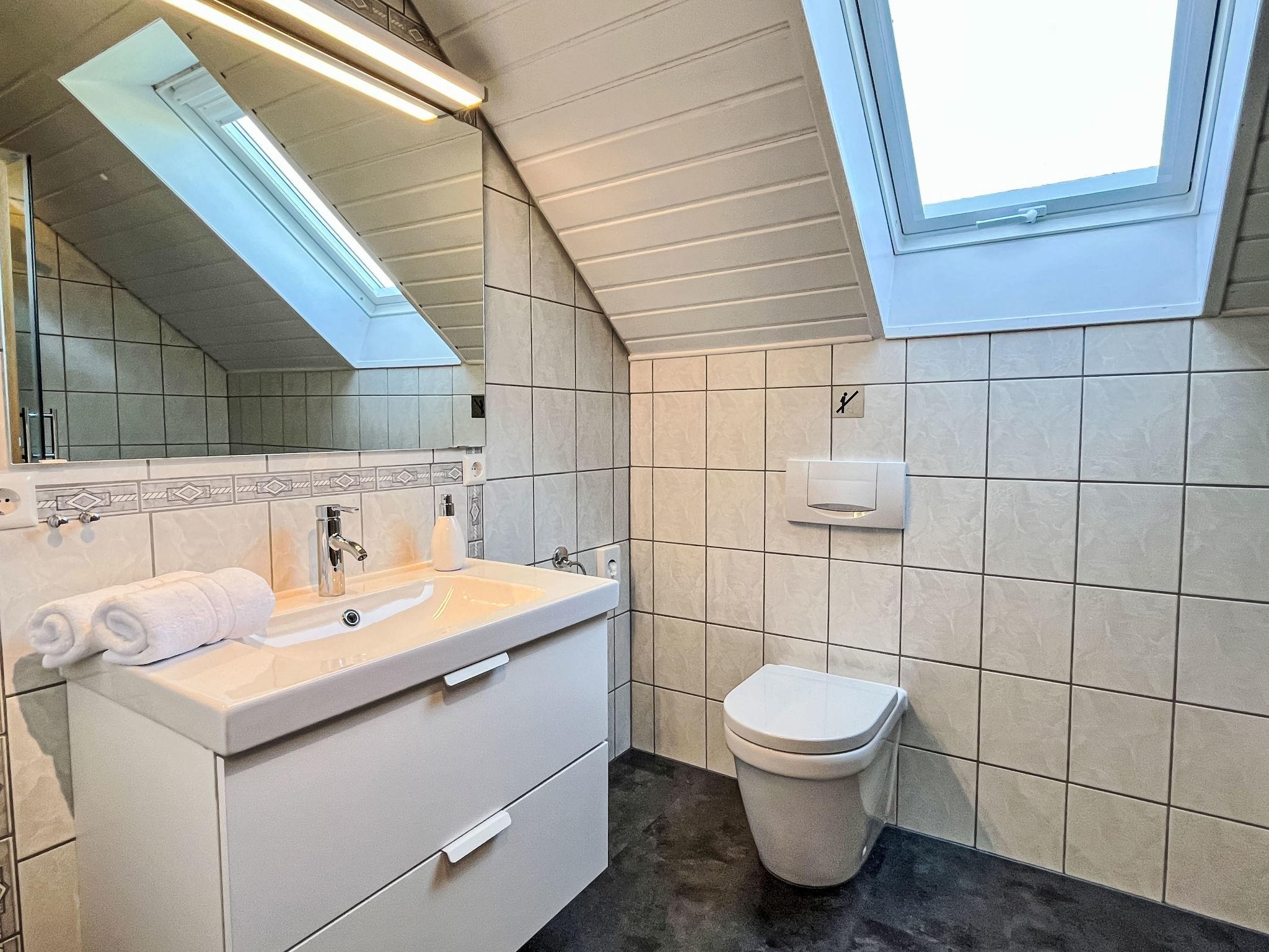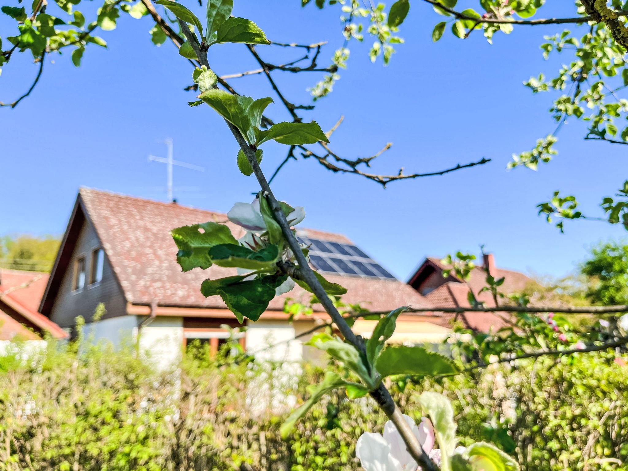 "Land in Sicht", 2-room apartment 60 m2, on the top floor. Bright, partly with sloping ceilings, beautiful and tasteful furnishings: living/sleeping room with 1 double sofabed (160 cm), dining table and satellite TV (flat screen). 1 room with 1 double bed and satellite TV (flat screen). Kitchen (oven, dishwasher, 4 ceramic glass hob hotplates, toaster, kettle, microwave, electric coffee machine). Exit to the balcony. Shower/WC. Heating. Balcony. Balcony furniture. Beautiful view of the garden. Facilities: children's high chair, baby cot. Internet (WiFi, free). Parking at the house. Please note: non-smokers only. Maximum 1 small pet/ dog allowed. Smoke alarm. Separate access to the apartment via external staircase (honeycomb steps).