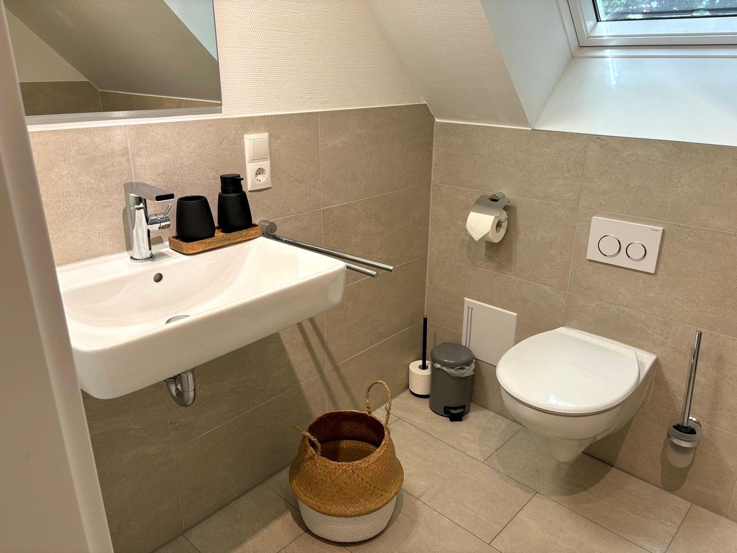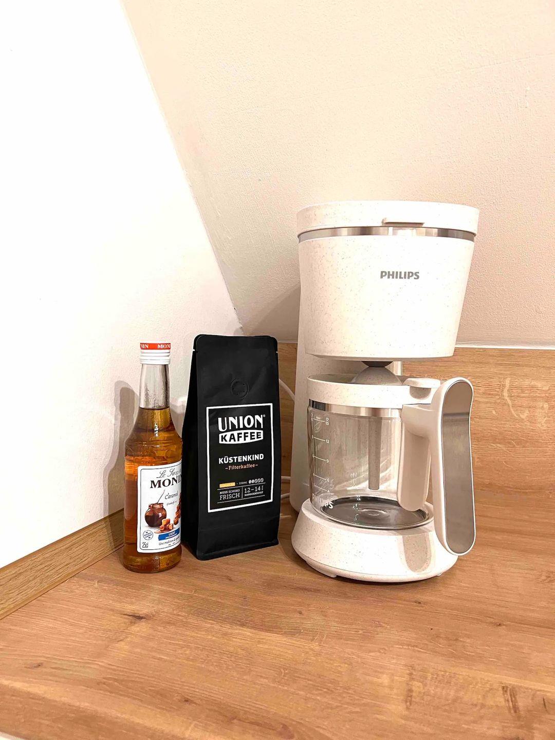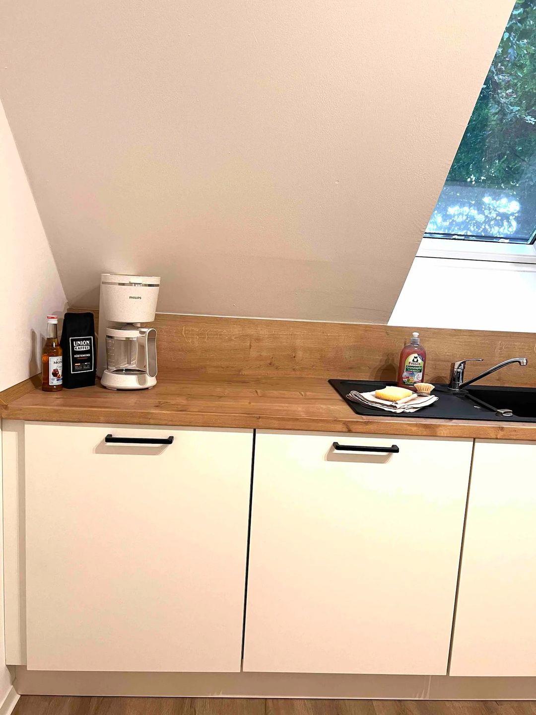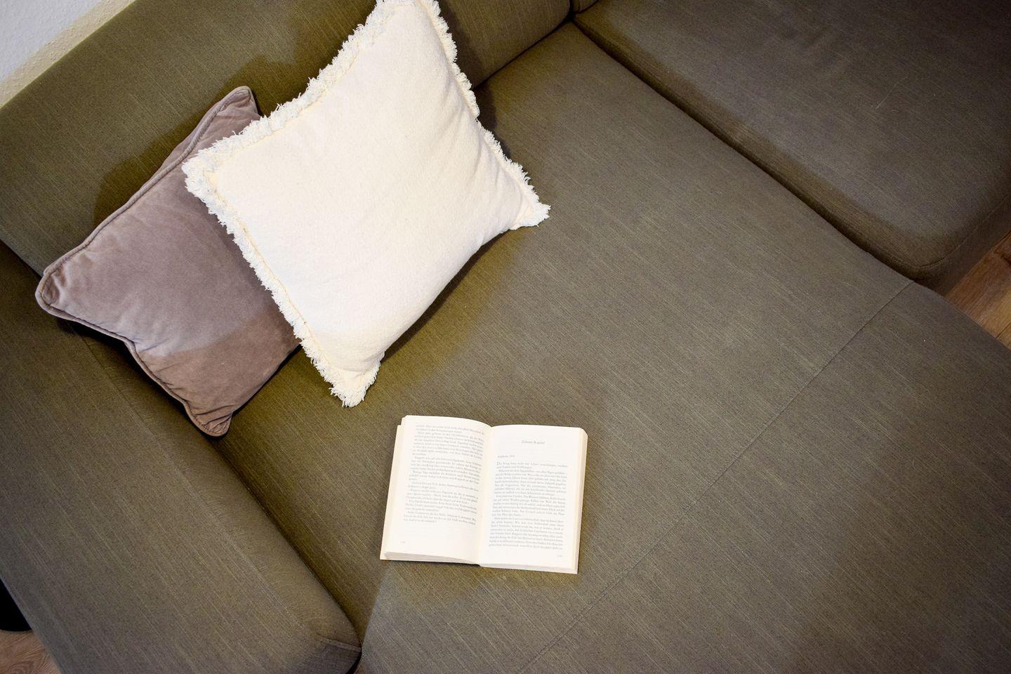 Im Wohnzimmer befindet sich eine riesige, super gemütliche Couch und ein TV mit Sat TV und Streaming Diensten. Es gibt auch einen Esstisch mit Platz für 4 Personen. Die Küche ist mit allem ausgestattet, was man zum Kochen braucht.