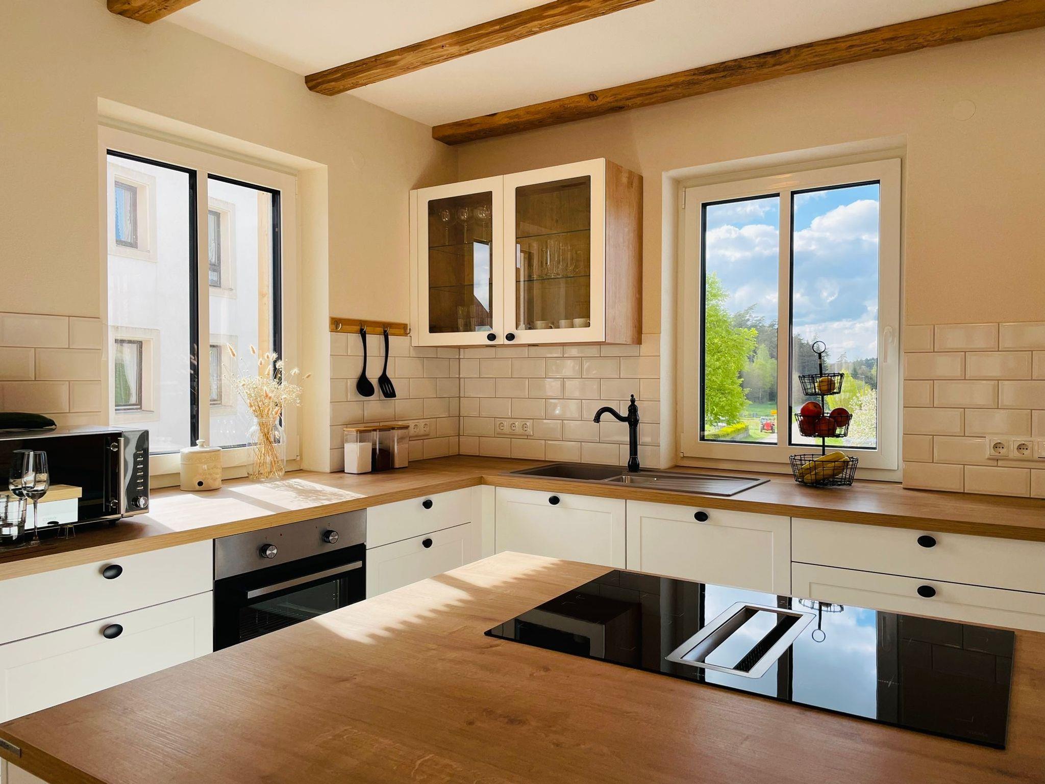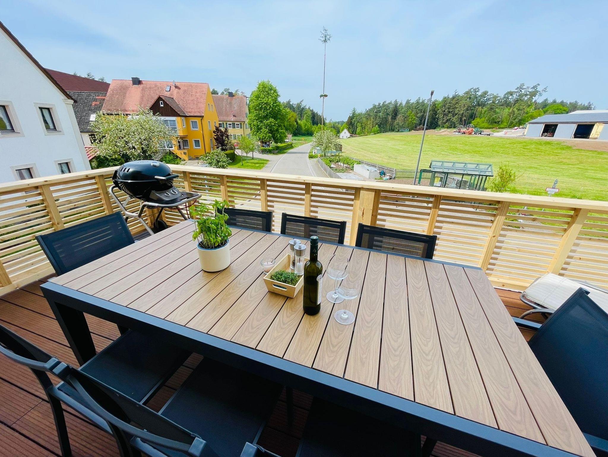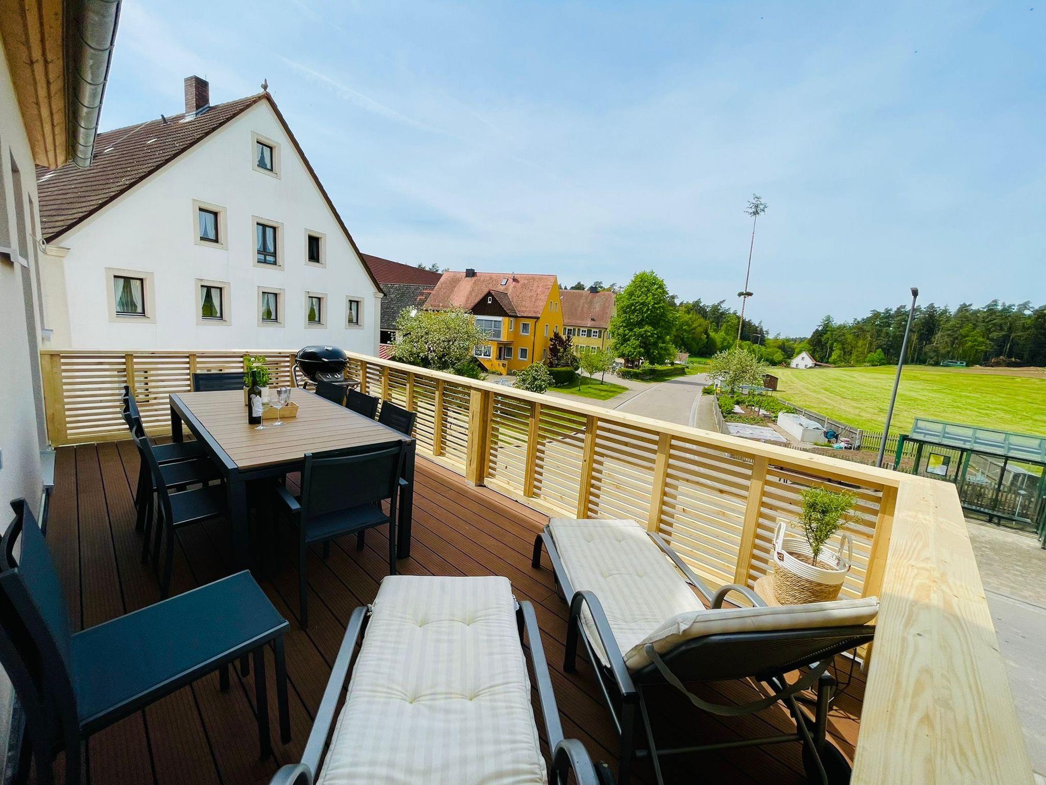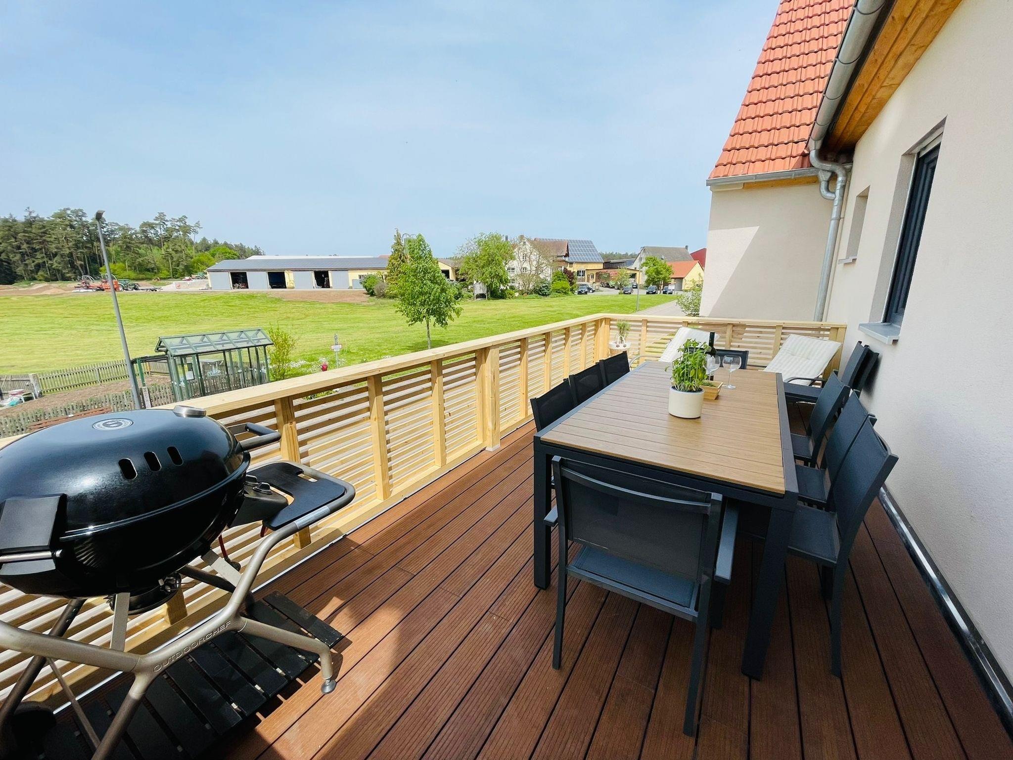 Grillabende sorgt der 17 m2 große Balkon mit malerischer Aussicht auf Wiesen und Wälder.