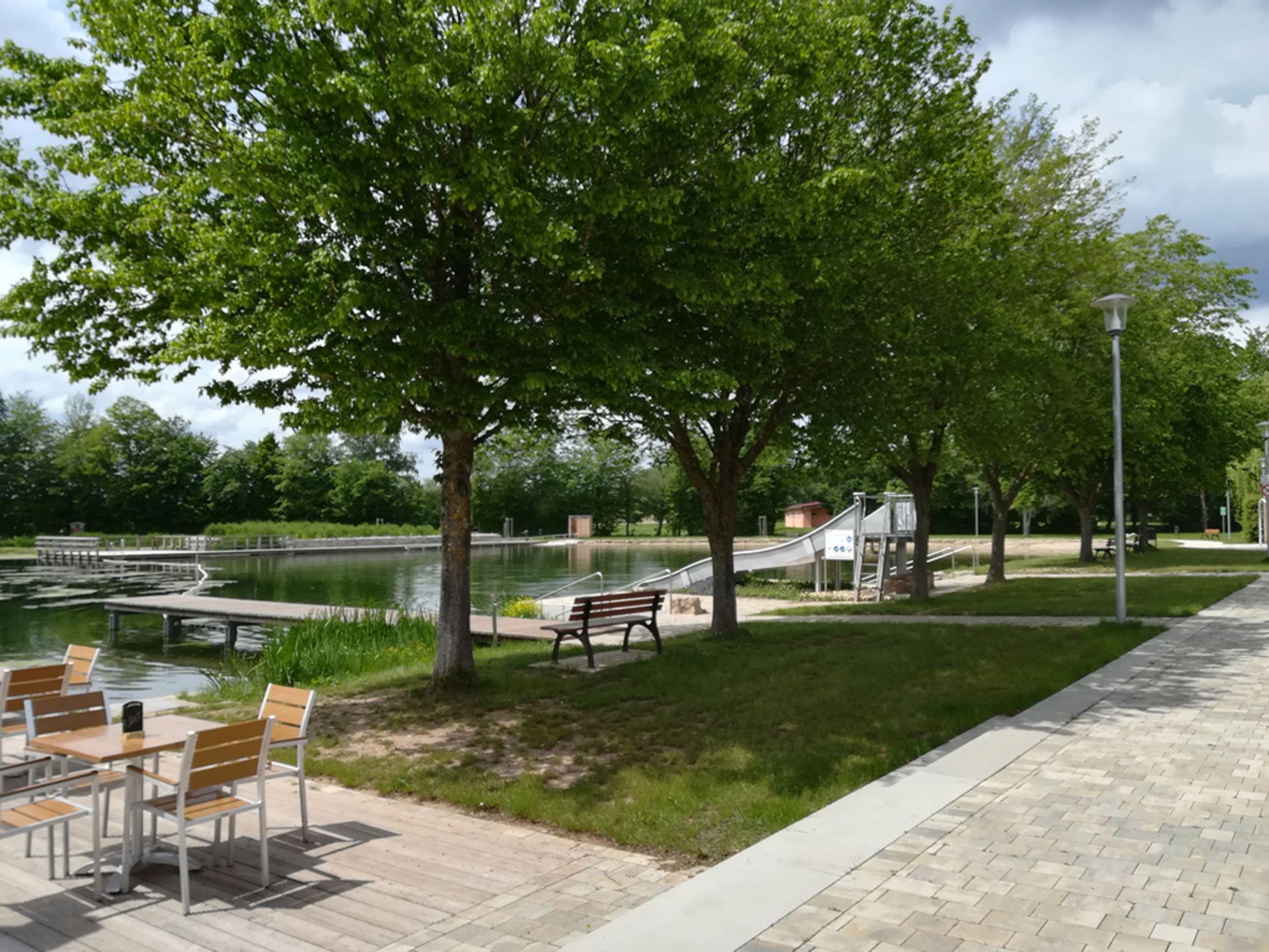 Ein Freizeitzentrum der besonderen Art. Sie finden hier Wasserrutsche, Sandstrand und Kinderspielplatz. Die Ruhewiesen liegen rund um den Badeweiher oder unter Schatten spendenden Bäumen.