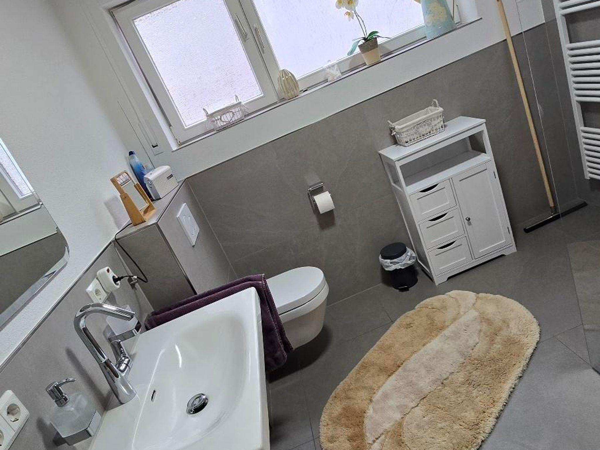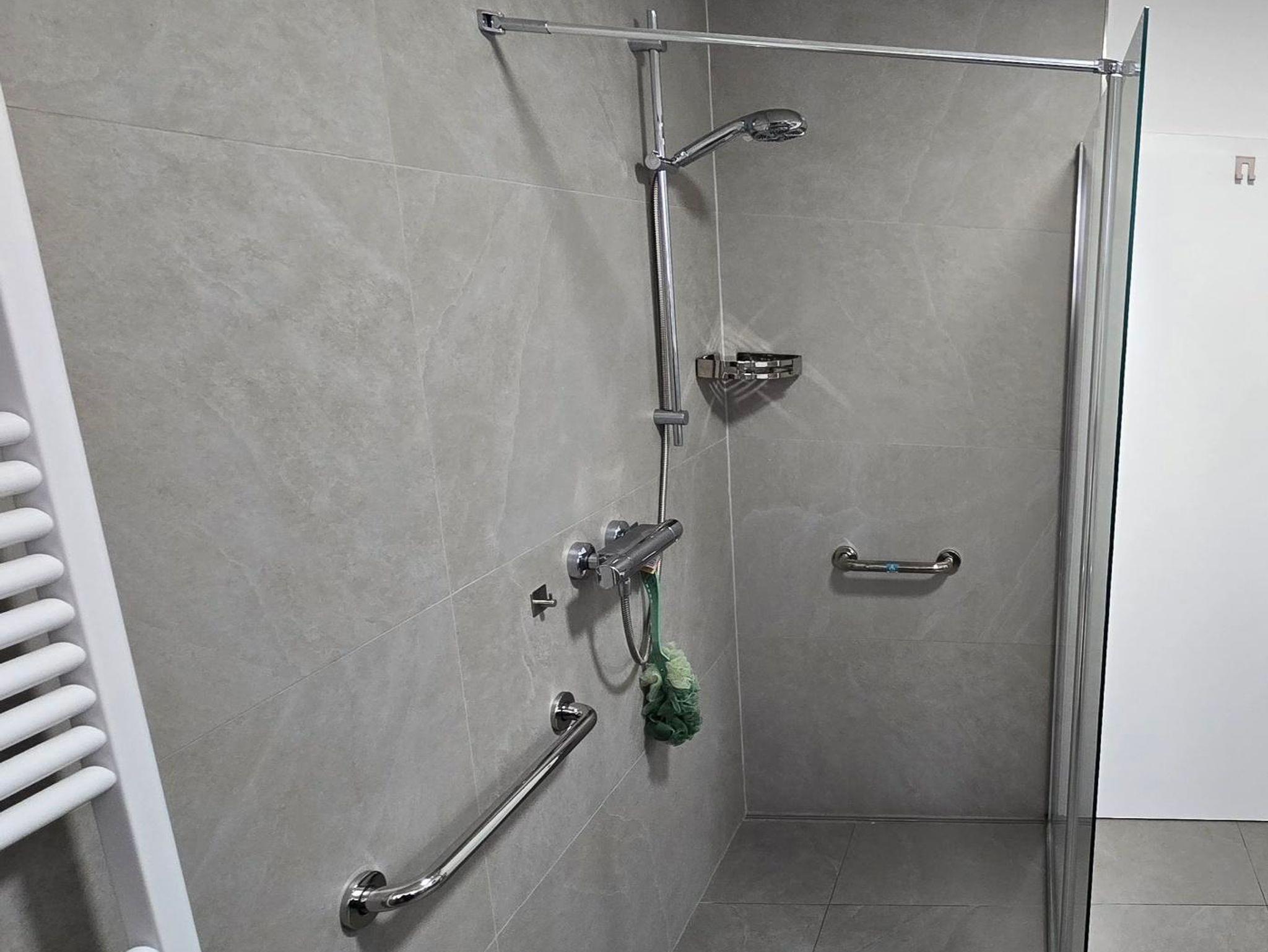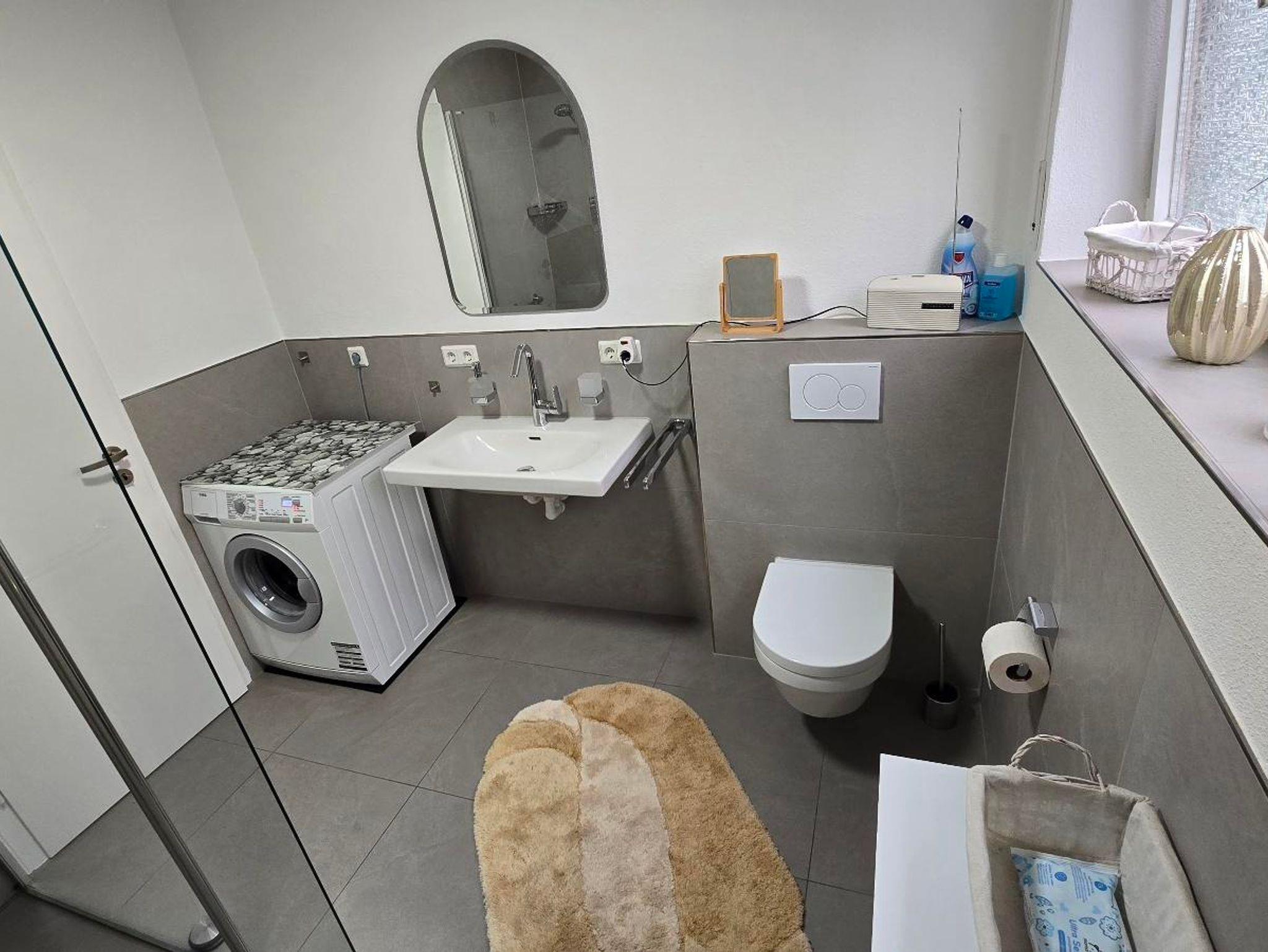 Das Bad mit barrierefreien Dusche , Waschmaschine vorhanden.