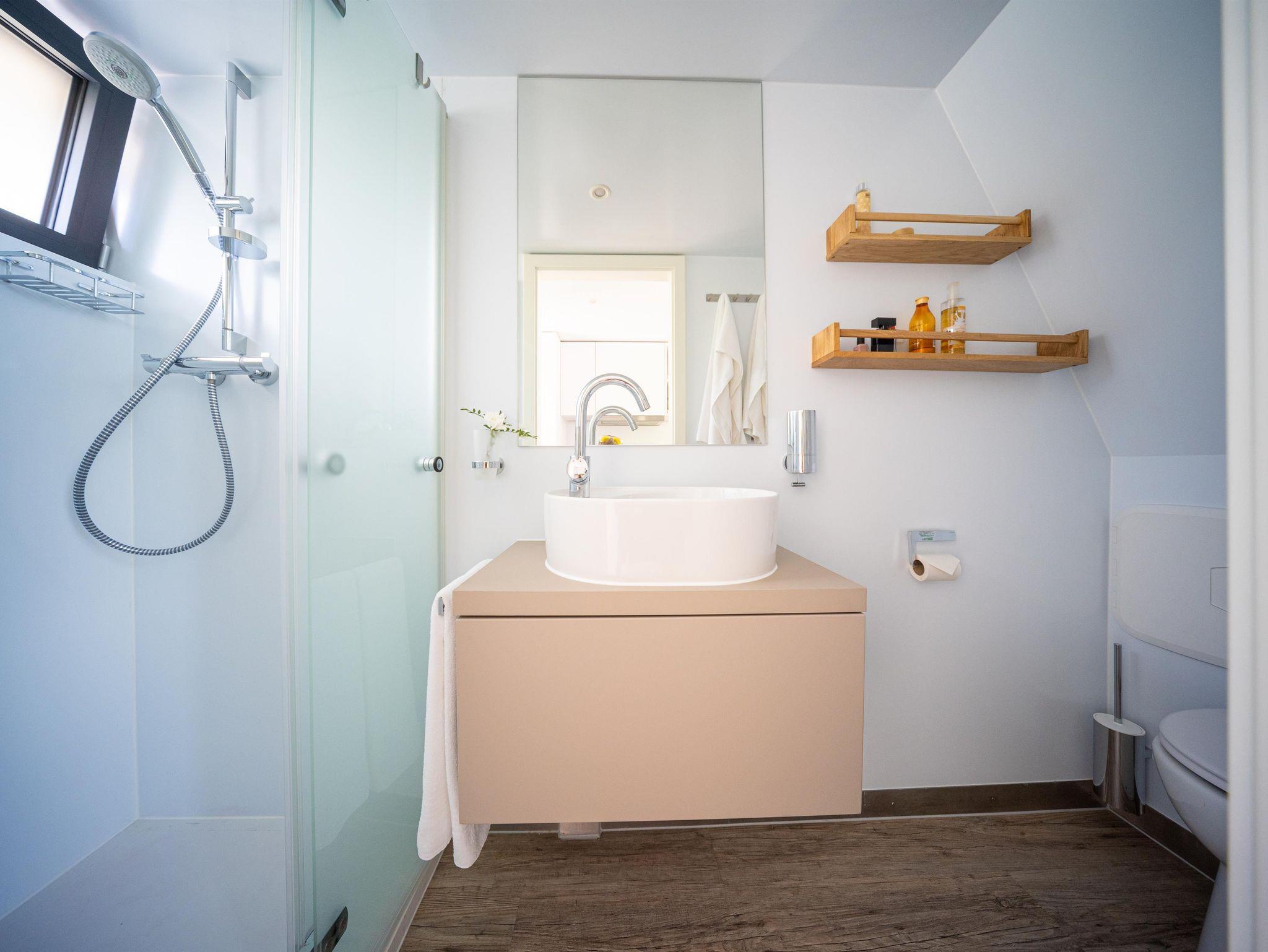 Schwimmende Ferienwohnung auf der Saar, Mobilheim, Dusche, WC, 2 Schlafräume