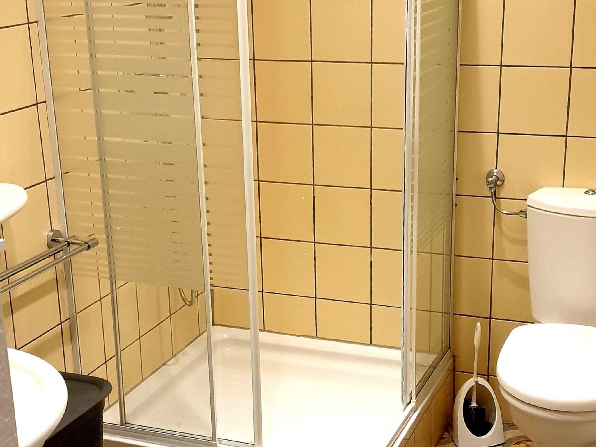 1 Badezimmer mit Dusche, WC und Waschtisch