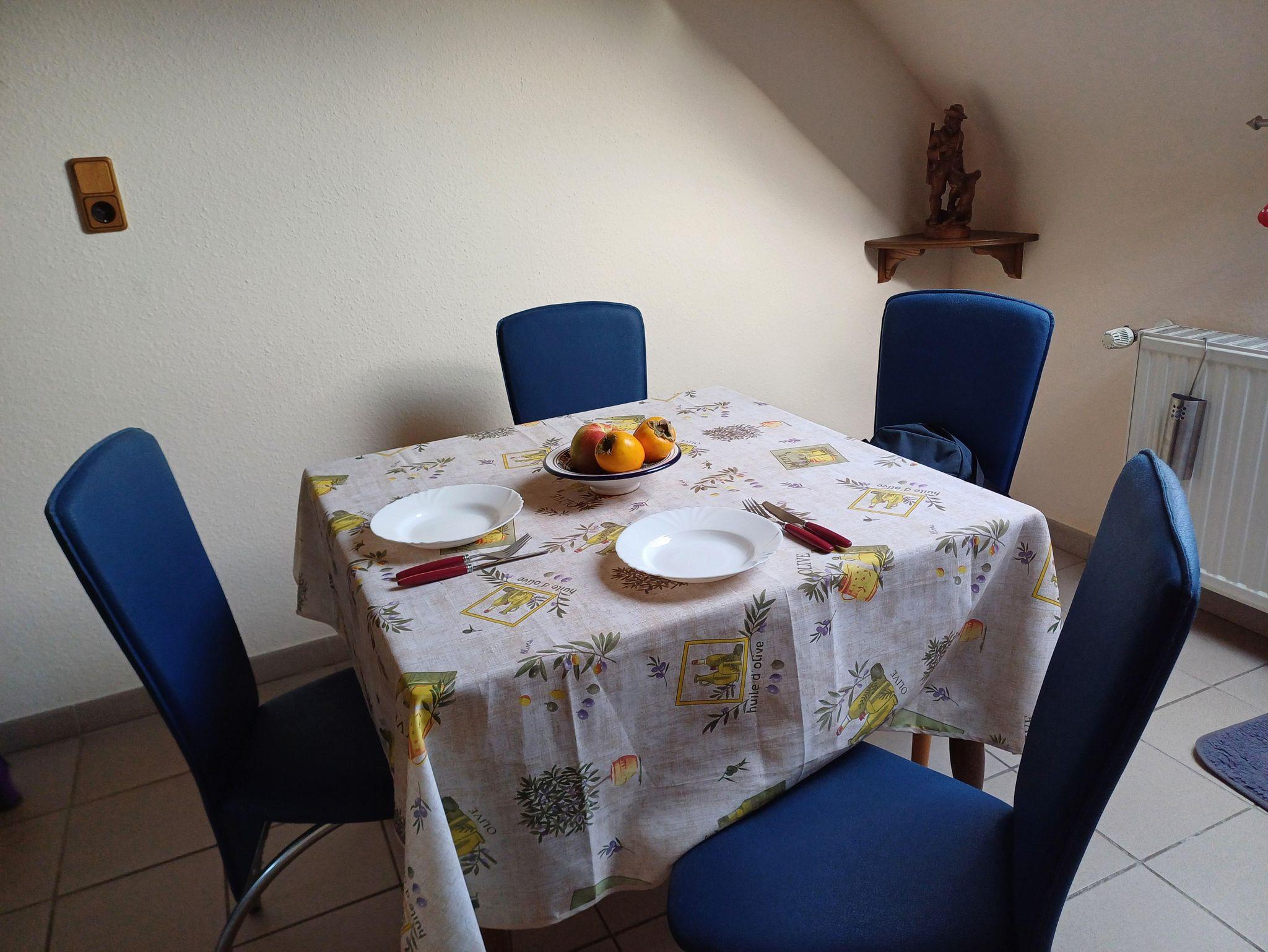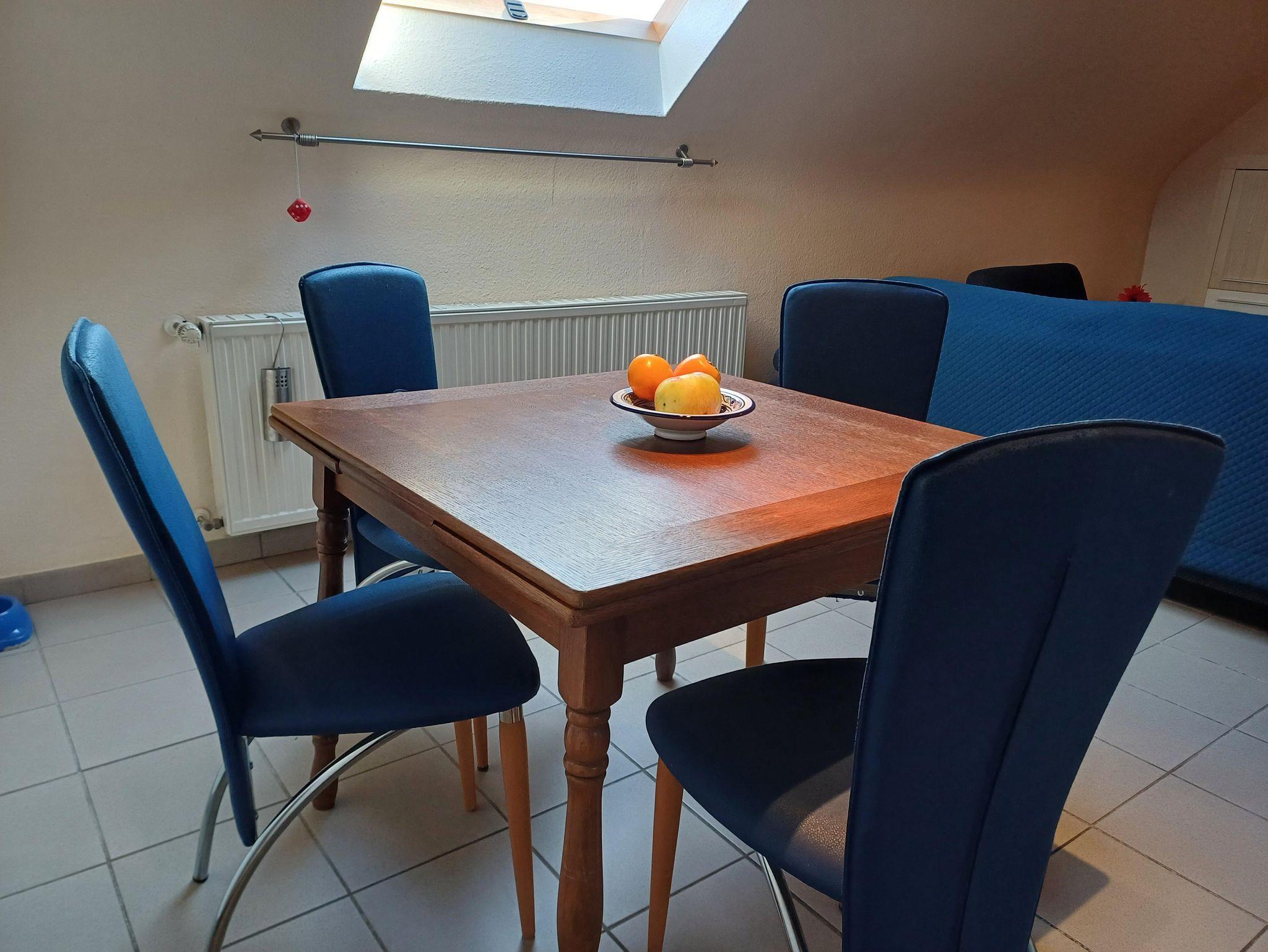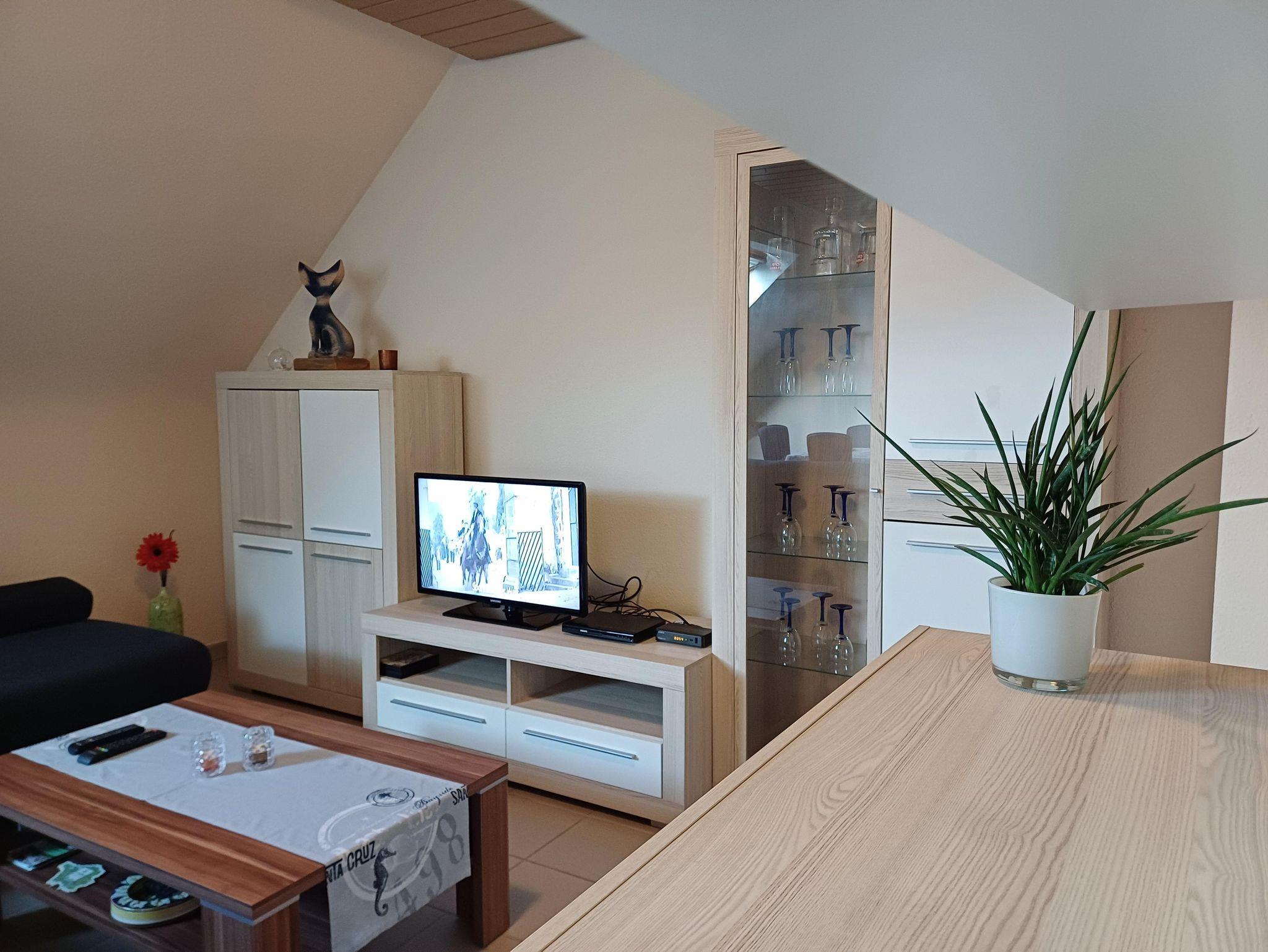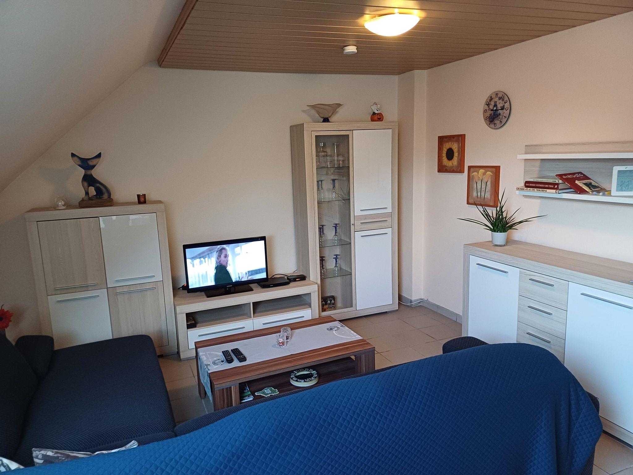 Die gemütliche Dachgeschosswohnung (77 m²) befindet sich im OG eines 2-Familienhauses und bietet Platz für 1-4 Personen. Die komplett ausgestattete Küche lässt keine Wünsche offen. Im großzügigen Wohnessbereich befindet sich eine Essgruppe, Eck-Couch, Satelliten-TV und DVD-Player. Es sind zwei große separate Schlafzimmer vorhanden. Das Badezimmer verfügt über eine Badewanne mit Duschfunktion und ein WC. Entspannte Abende können Sie auf dem kleinen Südwest Balkon ausklingen lassen.
