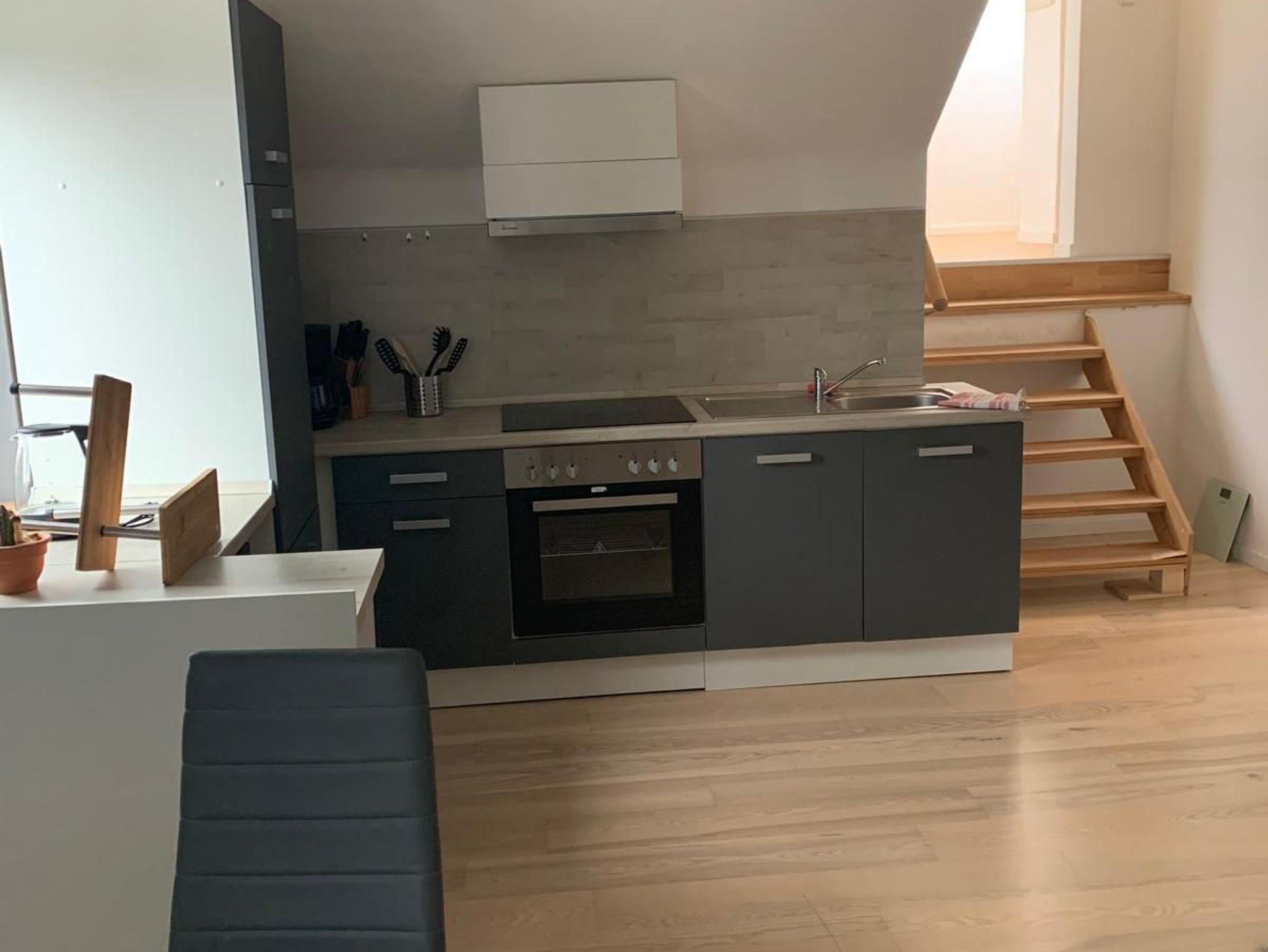 Die Wohnung liegt im Dachgeschoss und ist über ein gemeinsames Treppenhaus erreichbar.