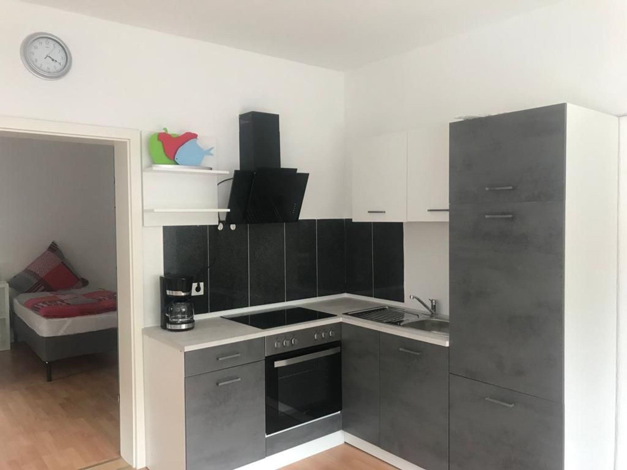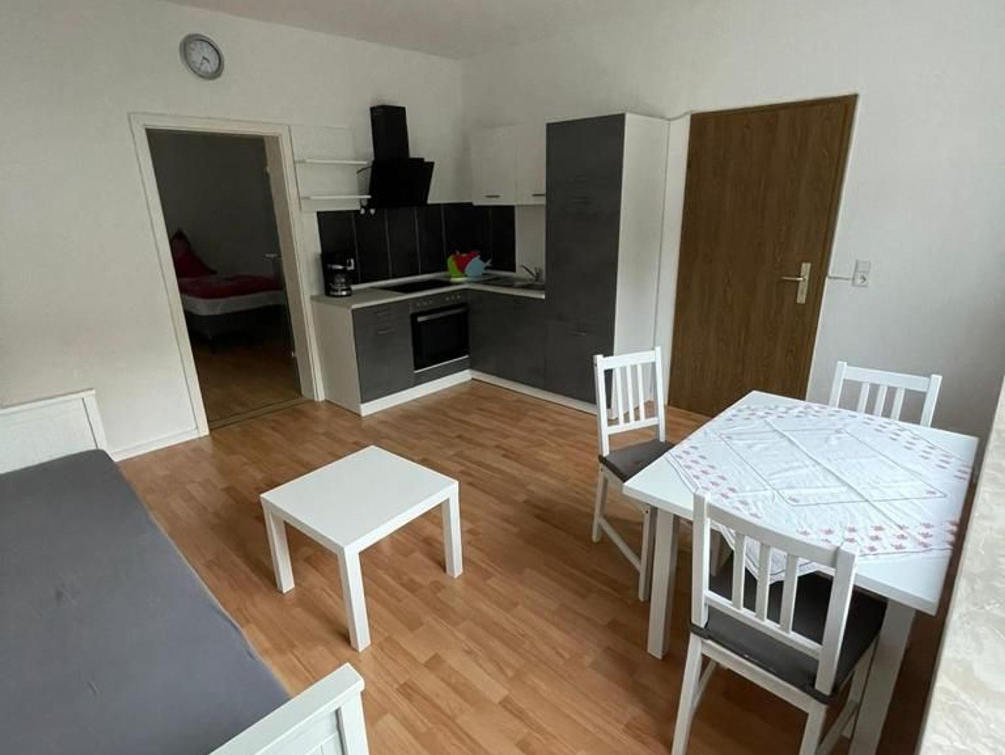 Die Wohnung besteht aus 2 Räumen, einem Schlafzimmer mit anliegendem Bad,