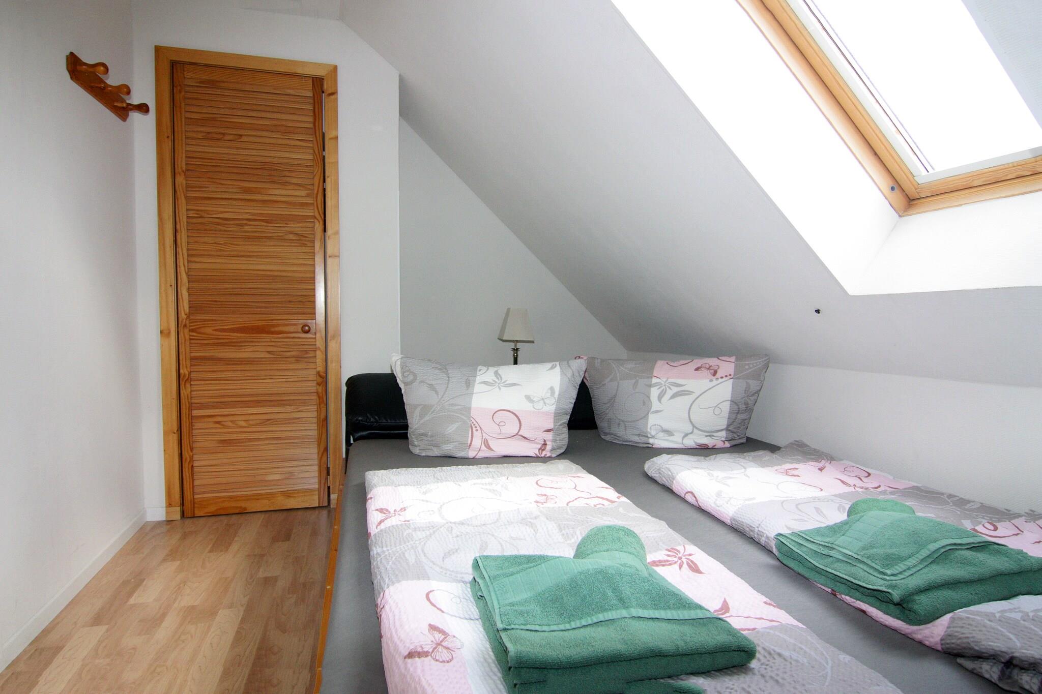 På 1. etage: (åbent køkken(kogeplade(Komfur med to kogeplader, elektrisk), brødrister, kaffemaskine, ovn, mikrobølgeovn, opvaskemaskine , køle-fryseskab), stue / spisestue(enkeltseng, Fjernsyn(parabol), spisebord, radio), soveværelse(dobbeltseng), badeværelse(bruser(Walk-in-bruser), håndvask, toilet)) varme, have(deles med andre gæster), havemøbler, grill(deles med andre gæster), parkering, barnestol, baby crib(paid), Håndklæder/sengelinned (ekstra gebyr)