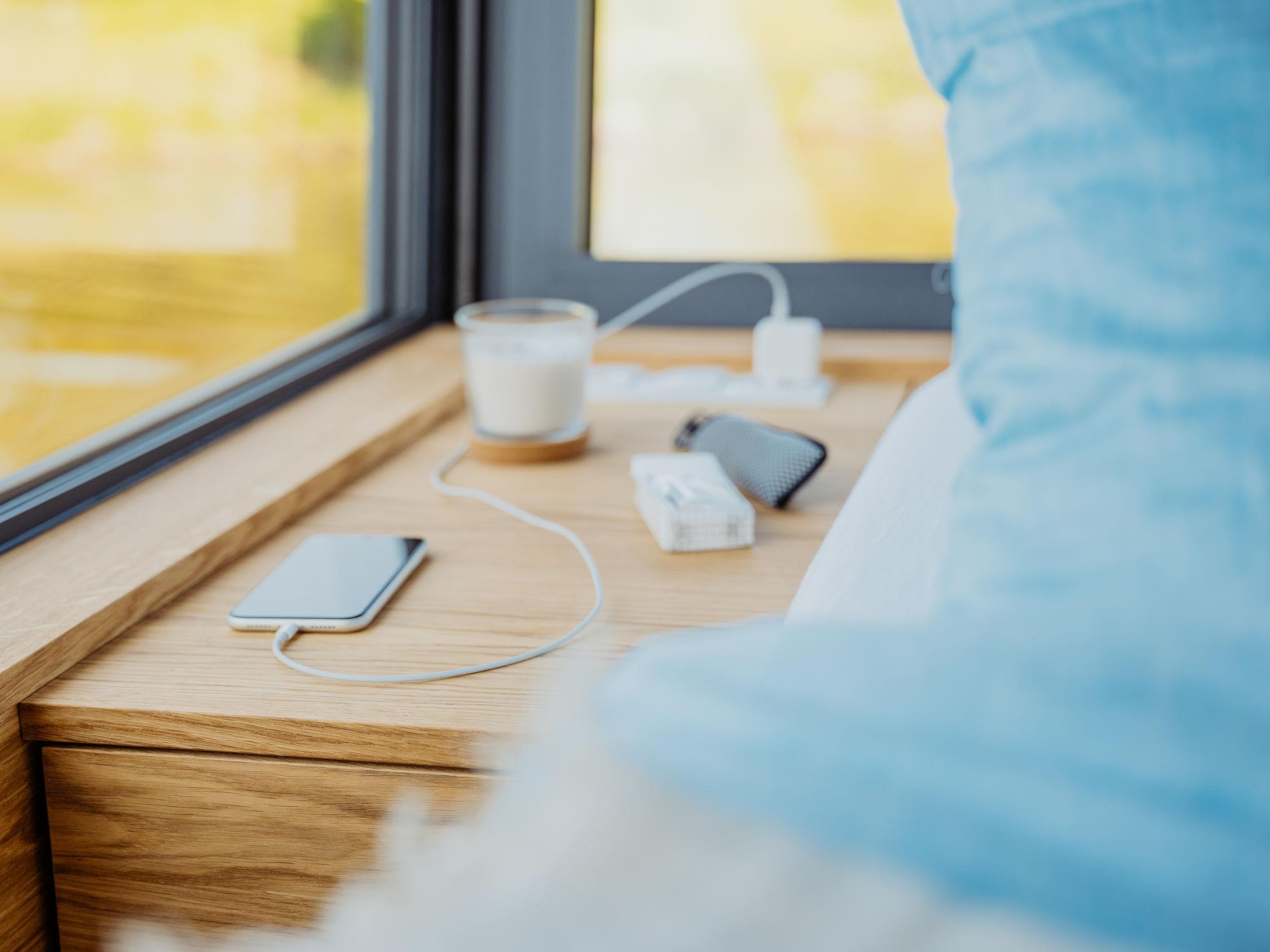 "Floating Home-Hausboot in Mettlach Hafen", 2-room house 54 m2. Object suitable for 4 adults. Modern and stylish furnishings: open living/dining room 28 m2 with panoramic window with 1 pull-out bed (2 pers.), dining table and digital TV. Open gallery with panoramic window with 1 double bed (180 cm, length 200 cm). Open kitchen (oven, dishwasher, 2 induction hot plates, toaster, kettle, electric coffee machine, combination microwave). Shower/WC. Large terrace 18 m2. Facilities: washing machine, dryer. Internet (WiFi, free). Please note: non-smokers only. Wine fridge, Nespresso coffee machines with 10 free capsules, grill with gas cartridge, instruction and handover on site.