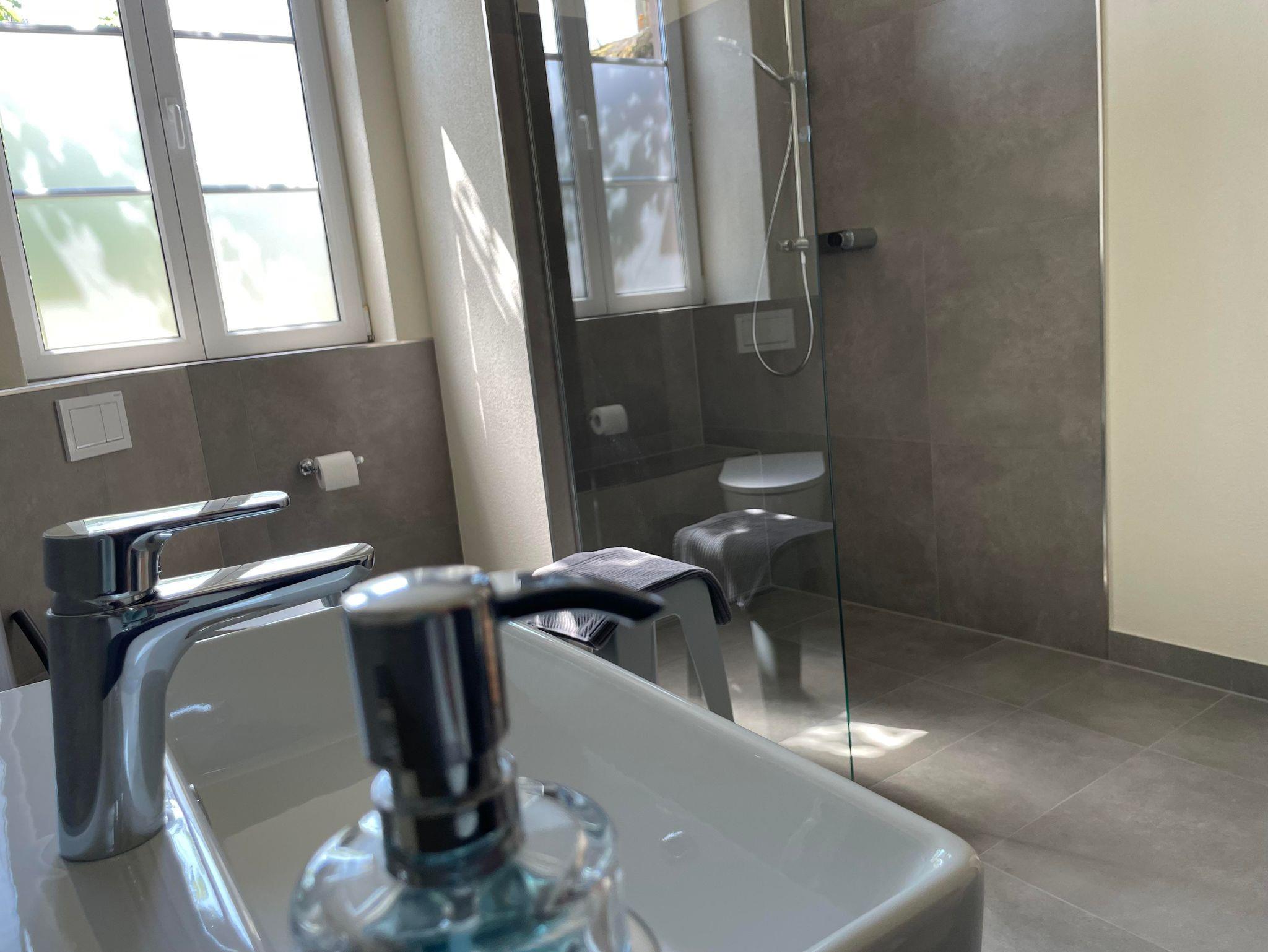 Für Elektro-Fahrzeuge steht eine Ladestation mit Strom von der Photovoltaik-Anlage zur Verfügung. Fahrräder und E-Bikes können in einem separaten Raum sicher abgestellt und geladen werden. Ebenso steht eine Hundedusche mit Warmwasser und Trockentücher zur Verfügung. .