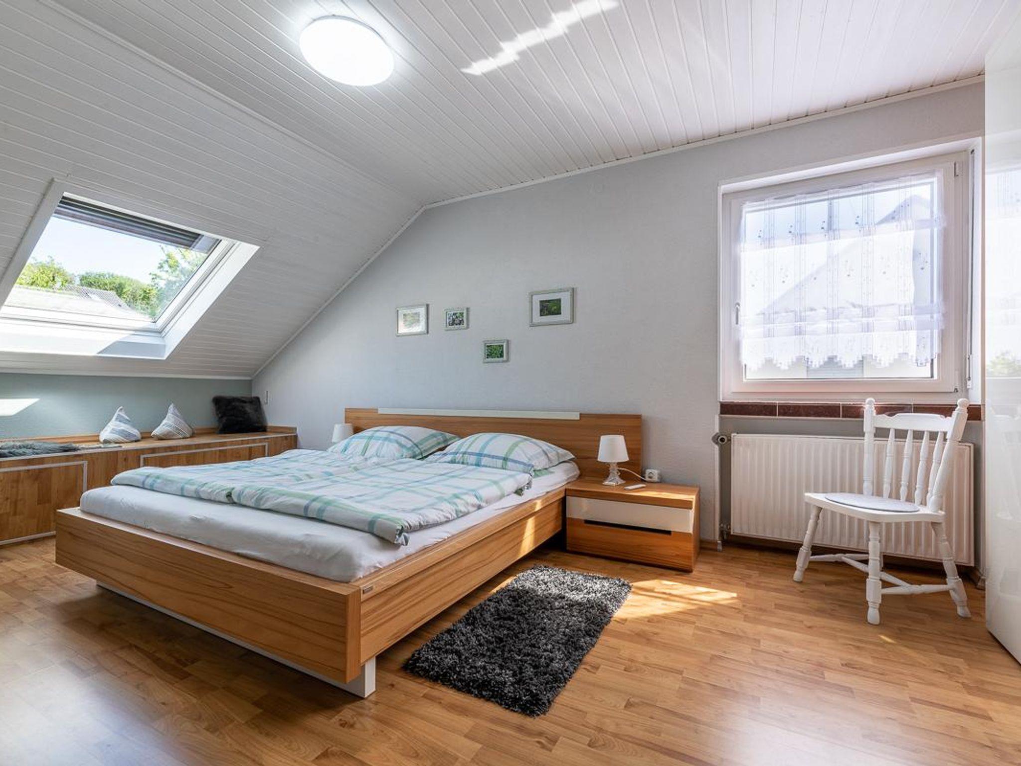Die geräumige, modern ausgestatte Ferienwohnung hat eine Wohnfläche von 80 qm. Im hellen, offenen Wohnbereich befindet sich ein Wohnzimmer mit SAT-TV, eine Essecke und eine komplett ausgestattete Küche mit Spülmaschine, Mikrowelle, Ceranfeld und Backofen. Zwei getrennte Schlafzimmer mit einem Doppelbett und 2 Einzelbetten bieten komfortable Schlafplätze für 4 Personen. Im geräumigen Bad befindet sich ein WC, Waschbecken, Dusche, Badewanne und eine Waschmaschine. Es steht ein Bügelbrett, Bügeleisen, Staubsauger, kostenloses WLAN, bei Bedarf 1 Kinderbett und ein Kinderhochstuhl zur Verfügung.