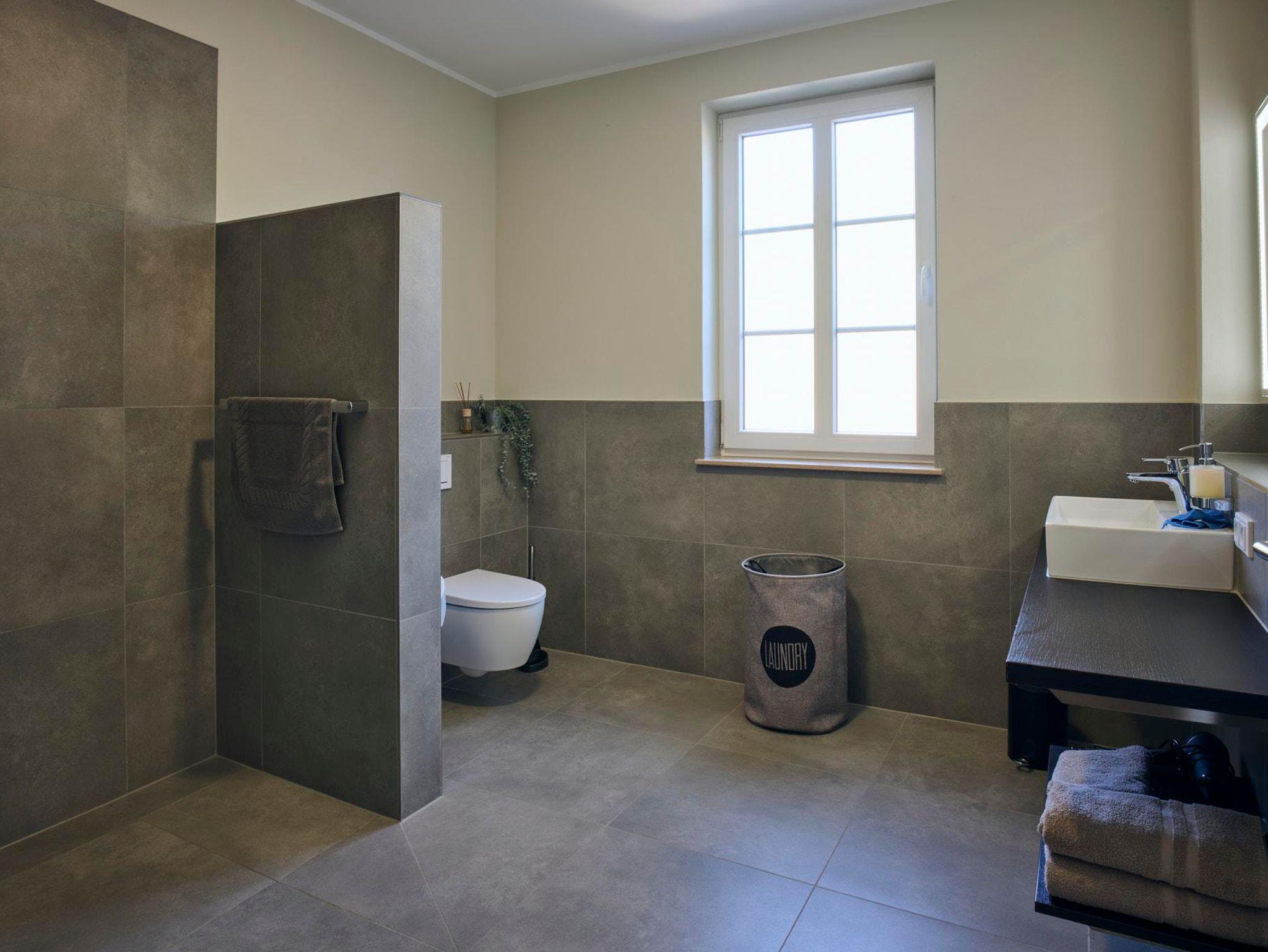 Eine Fußbodenheizung für die kalte Jahreszeit und Betonkernkühlung im Sommer lassen den Gästen zu jeder Jahreszeit die absolute Behaglichkeit, erzeugt durch Photovoltaik und Erdwärme zum Heizen und Klimatisieren, nachhaltig und emissionsfrei zukommen. Waschmaschine, Trockner und Ausgussbecken sind im Hauswirtschaftsraum der Wohnung vorhanden.