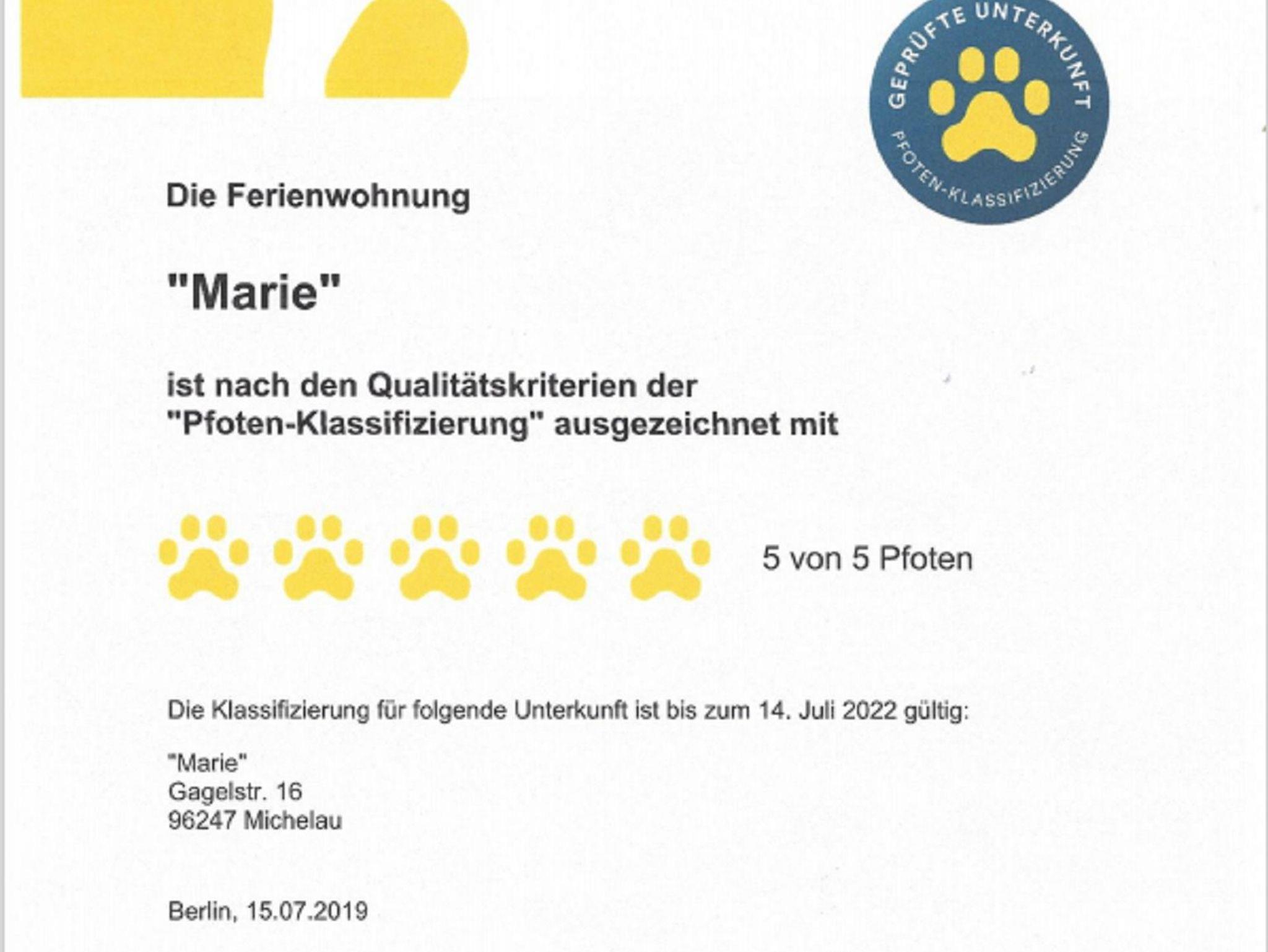 Das Grundstück ist ca. 800 qm groß und komplett eingezäunt. Hier hat Ihr Vierbeiner, der uns herzlich willkommen ist, genügend Platz sich auszutoben. Das Highlight: Für Ihren Vierbeiner steht ein separates und komfortables Hundebad zur Reinigung bzw. Pflege kostenlos zur Verfügung. Seit Mai 2021 sind wir nun auch stolze Träger von 5-Pfoten in der Klassifizierung des DTV.