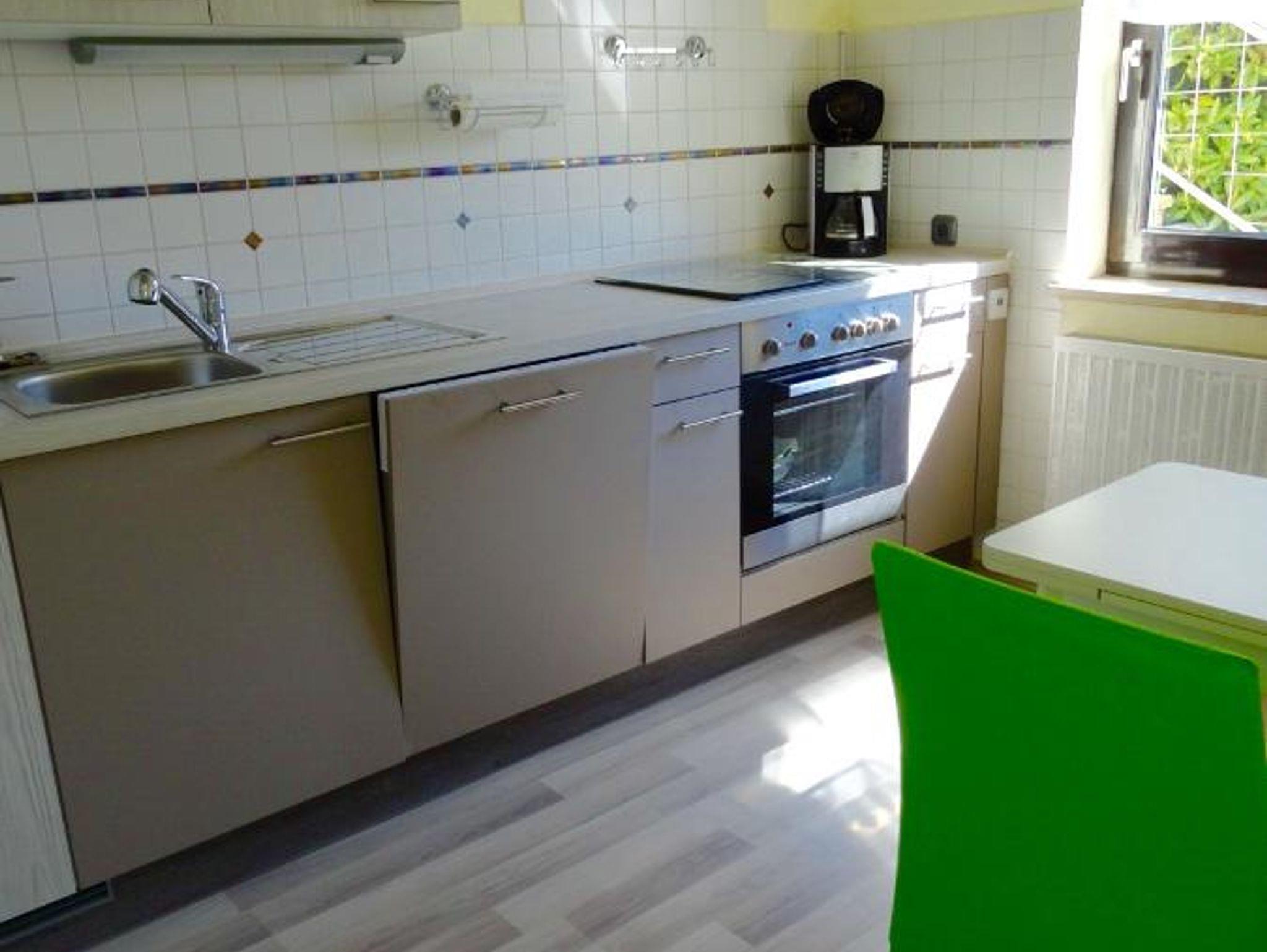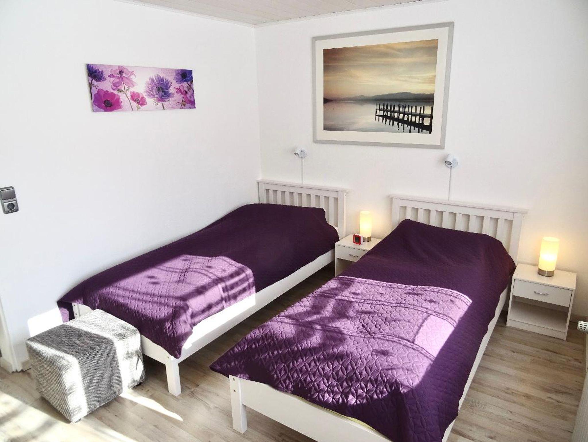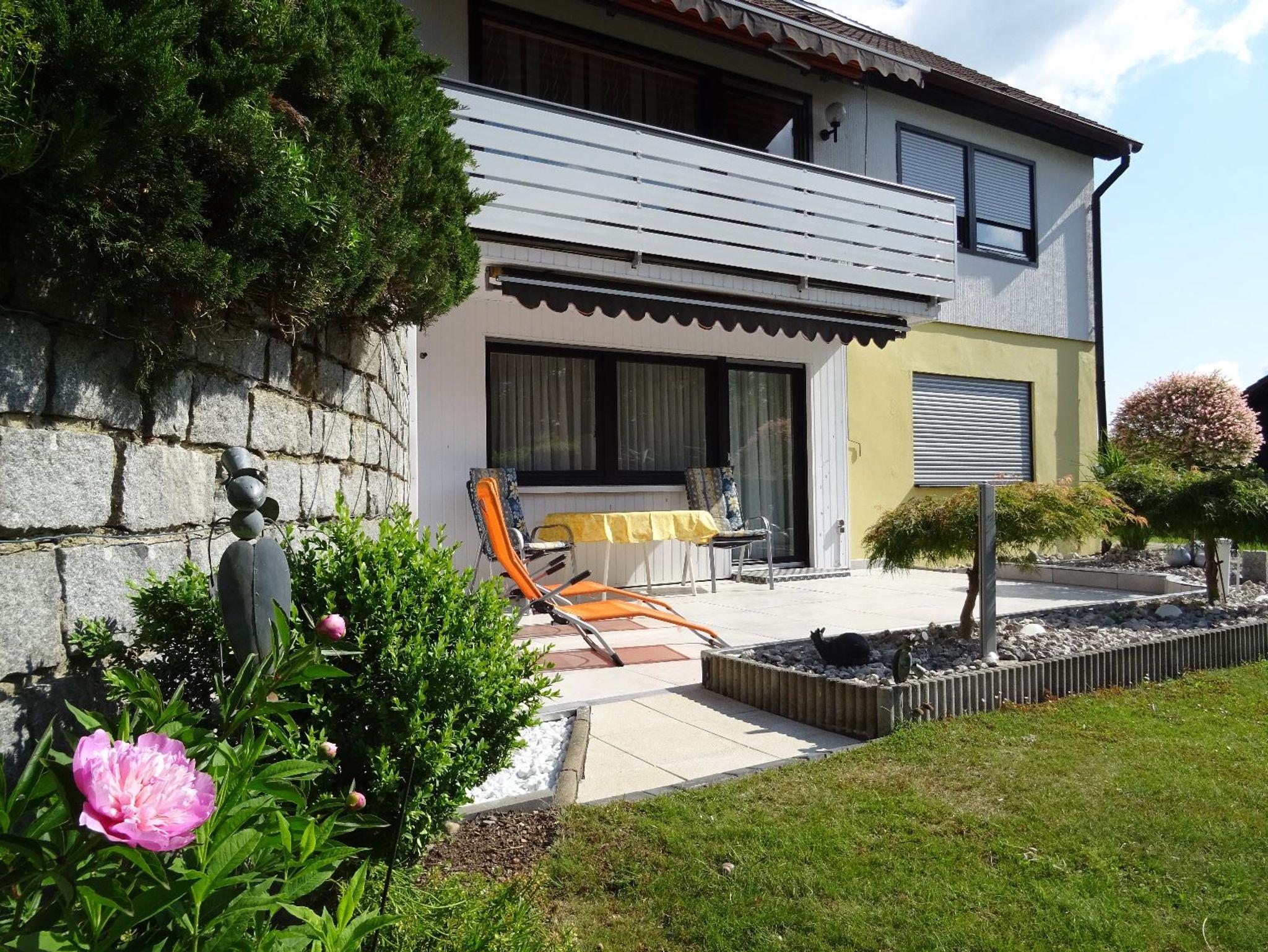 Herzlich Willkommen in unserer modern eingerichteten NICHTRAUCHER-Ferienwohnung für zwei Personen (ca. 55 qm) in Michelsneukirchen im Vorderen Bayerischen Wald. Das Schlafzimmer ist mit zwei Einzelbetten ( 0,90 m X 2,00 m) ausgestattet, die bei Bedarf zusammengestellt werden können. Bei jedem Schlafplatz befindet sich ein Nachtschränkchen und jeweils zwei Leselampen. Im großzügigen Kleiderschrank mit Spiegeltüren und mehreren Schubfächern lässt sich Ihr Urlaubsgepäck einfach verstauen. Elektrische Rollladen, die in allen Zimmern angebracht wurden, sorgen für optimale Verdunkelung. Rauchmelder sind in allen Wohn-/Schlafräumen vorhanden. Im angrenzenden Wohnraum finden Sie eine moderne Wohnwand mit Sat-TV ( 42 Zoll ), DVD-Player, DAB/Internet-Radio und weiteres Geschirr. Zum Zeitvertreib bei schlechterem Wetter stehen viele Bücher und mehrere Spiele zur Verfügung. Die große Polsterecke lädt zum Entspannen und Relaxen ein (bei Nutzung als Schlafplatz müssen wir dies jedoch zusätzlich berechnen). Ein kleiner Essbereich mit ausziehbarem Tisch ( 0,80 m X 0,80 m/bzw. 1,20 m) rundet das Bild ab. Über das Wohnzimmer gelangen Sie außerdem auf die große (ca 25 qm) , teilweise fest überdachte Sonnenterrasse mit Sitz- und Liegemöglichkeiten. Bei Bedarf schützt Sie eine über die ganze Fläche ausziehbare Markise. Mitgeführte E-Bikes können in einem abschließbaren und mit Lademöglichkeit ausgestattetem Nebenraum untergebracht werden. Auf Wunsch (ohne Zusatzkosten) kann eine Tischtennisplatte mit Ausrüstung bereitgestellt werden. Im Badezimmer mit normal großem Fenster finden Sie eine Dusche ( 0,90 m X 0,70 m, 0,70 m Einstiegsbreite) mit Hand-/und Regenfallbrause, ein WC und einen geräumigen Waschbecken-Spiegelschrank. Die Küche mit einer neuwertigen Küchenzeile ist mit Kühlschrank ( ohne TK-Fach ) einem Geschirrspüler , Glaskeramik-Kochplatten , mehreren Elektro-Kleingeräten und einem weiteren Sitzbereich versehen. Sie befindet sich außerhalb des Wohnbereichs und ist durch den Eingangsbereich getrennt. Eine Garderobe mit Spiegel- und Schuhschrank sowie ein kleiner Abstellraum (mit Erste-Hilfe Ausstattung und einem kleinem Gefrierschrank )bieten weiteren Stauraum für Gepäck und Sportausrüstung, Bettwäsche, Handtücher und Ihre Koffer. Eine weitere kleine Diele mit Garderobe und kleinem Schränkchen befindet sich vor den Zimmern. Kostenfreie WLAN-Nutzung, Endreinigung und Parkplatz sind im Preis enthalten. Der Stellplatz befindet sich vor den Garagen des Eigentümers. Zugang zur FeWo vom Stellplatz aus über 10 Stufen und ca 30 m Weg oder ebenerdig über den Garten (nur in der schneefreien Zeit; ca 40 m). Keine Haustiere und nur Nichtraucher!!