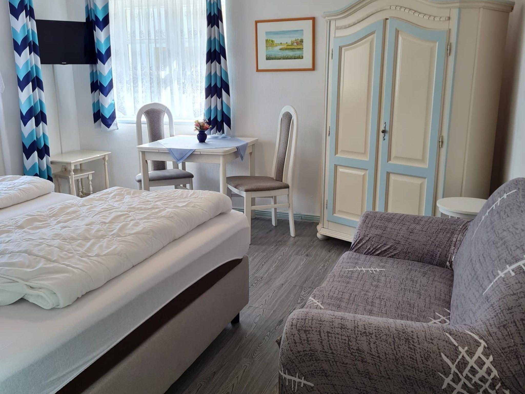 Sie wohnen im reetgedeckten Ferienhaus Rohrdachhus in einer sehr schönen Ferienwohnung auf ca. 35 qm großen Fläche; ein kom. Wohnschlafzimmer mit komfortablen Doppelbett; SAT-TV; eigene herrliche Terrasse; sep. Küche; Badezimmer mit DU/WC/Föhn und kostenfreier Parkplatz.