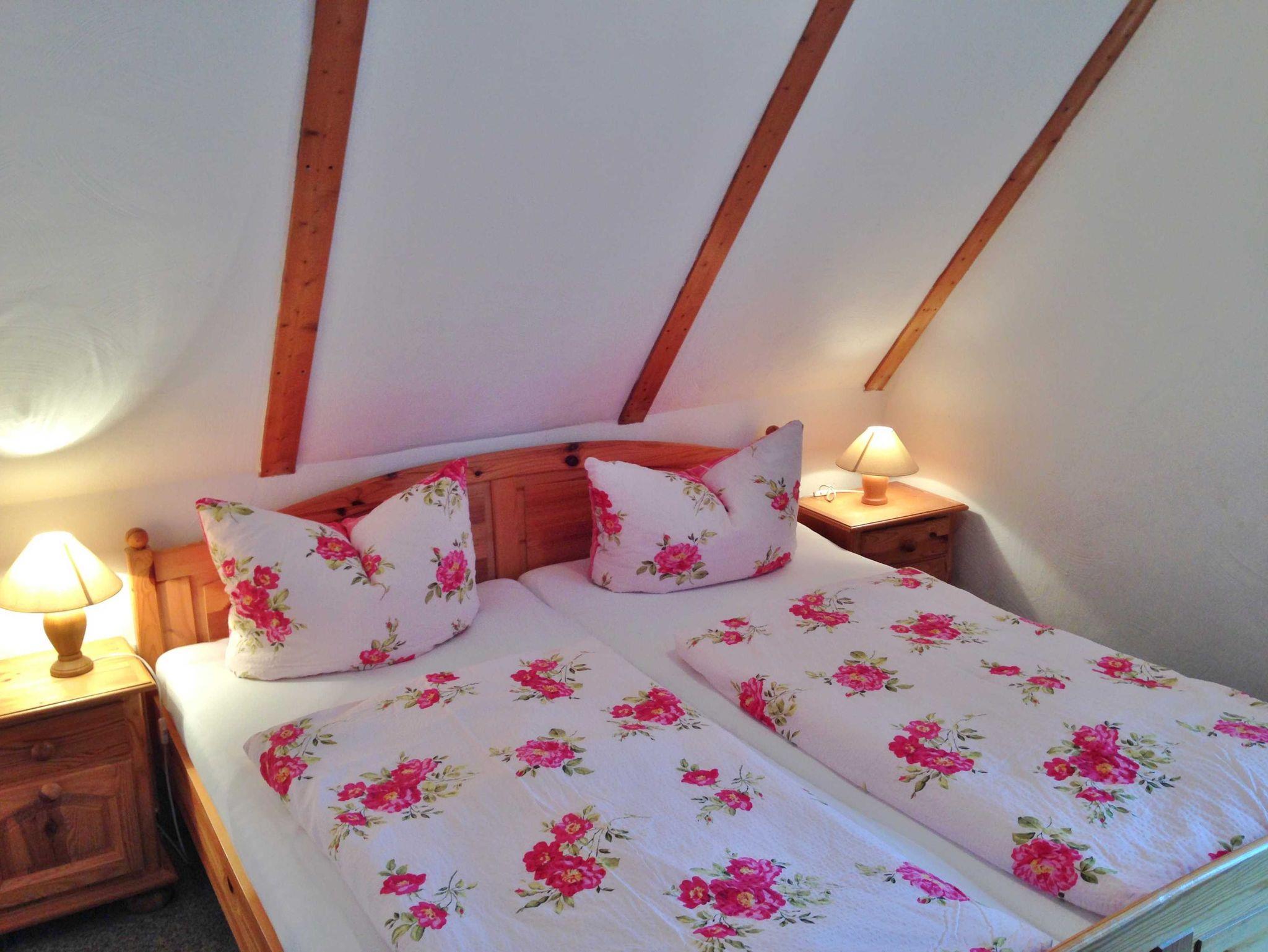 Im reetgedeckten Ferienhaus ,,Rohrdachhus befindet sich in der 1. Etage ihre schöne Ferienwohnung, auf ca. 75qm Fläche, über 2 Ebenen verteilt. Die Wohnung ist komfortabel ausgestattet mit 2 separaten Schlafzimmern, Wohnzimmer, TV und mit voll ausgestatteter Einbauküche, ein Badezimmer mit Dusche/WC und Föhn.