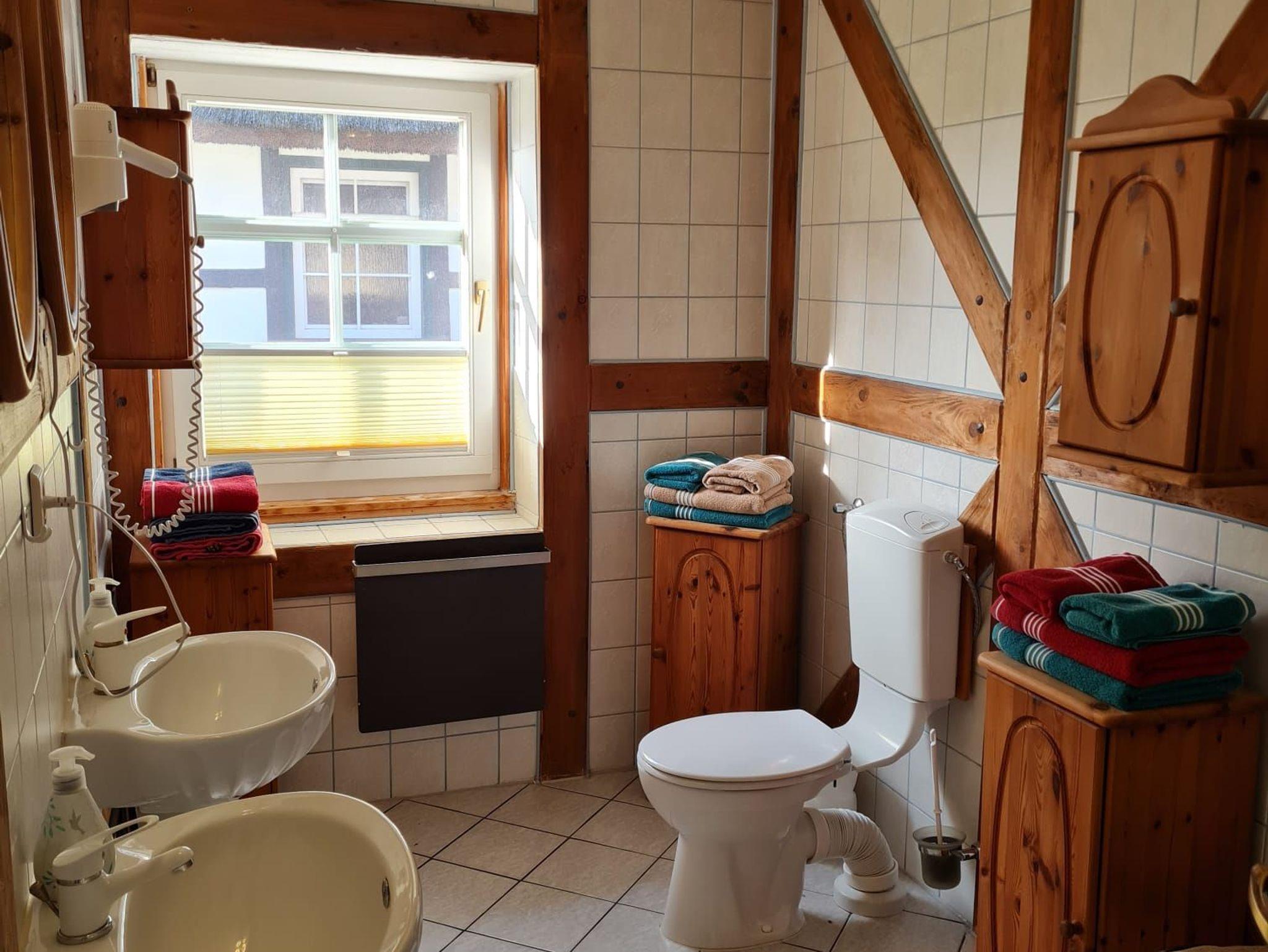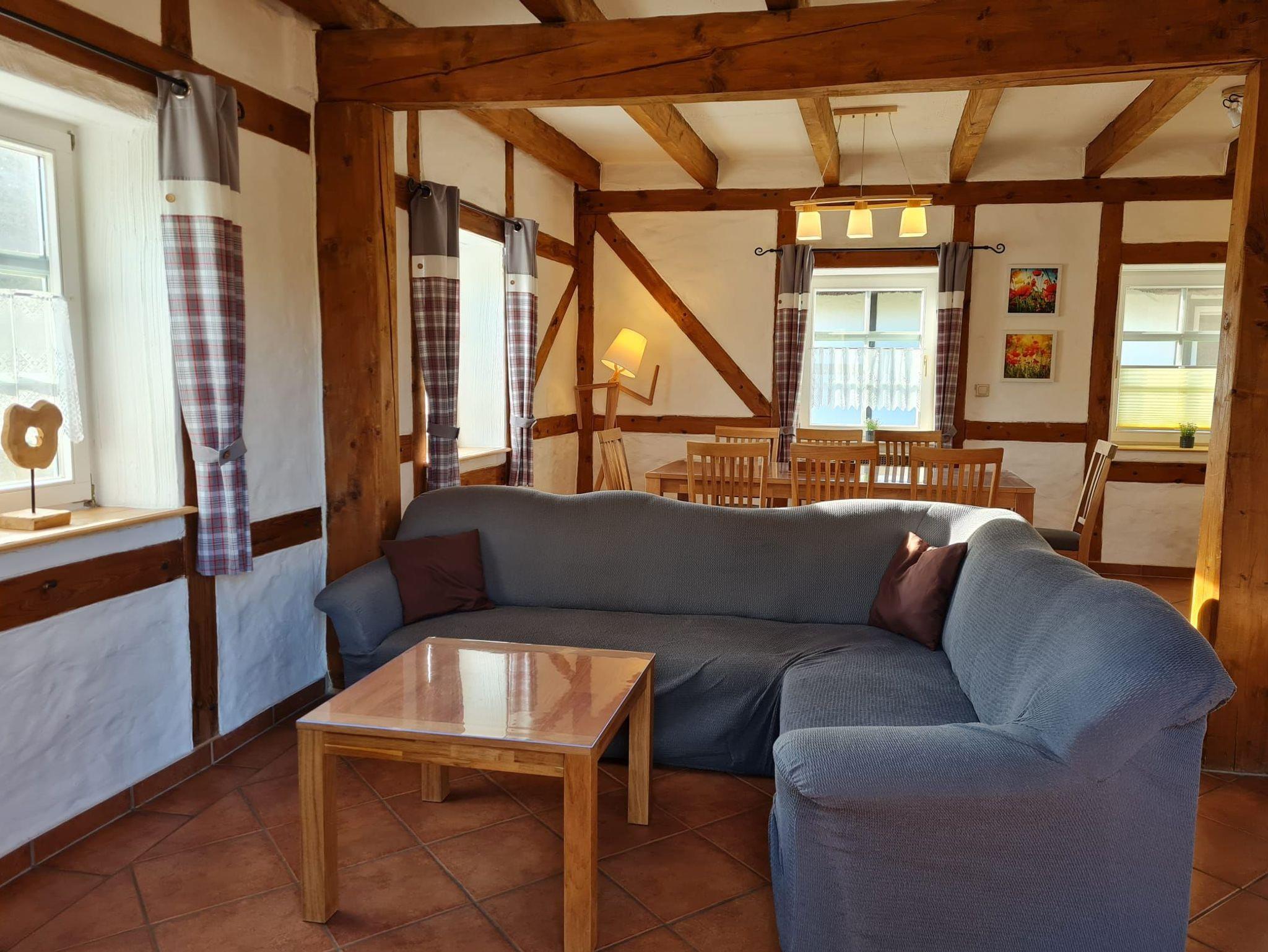 In einer original rekonstruierten Fachwerkscheune aus dem Jahre 1781 bieten wir Ihnen Platz für 2 bis 6 Personen in 6 Ferienwohnungen, jeweils über 2 Etagen. Hinter dem Haus befinden sich die Terrassen zu den Wohnungen mit Blick ins Grüne und in einen Naturgarten der zum Verweilen und Spielen einlädt. Parkplätze sind am Haus vorhanden.