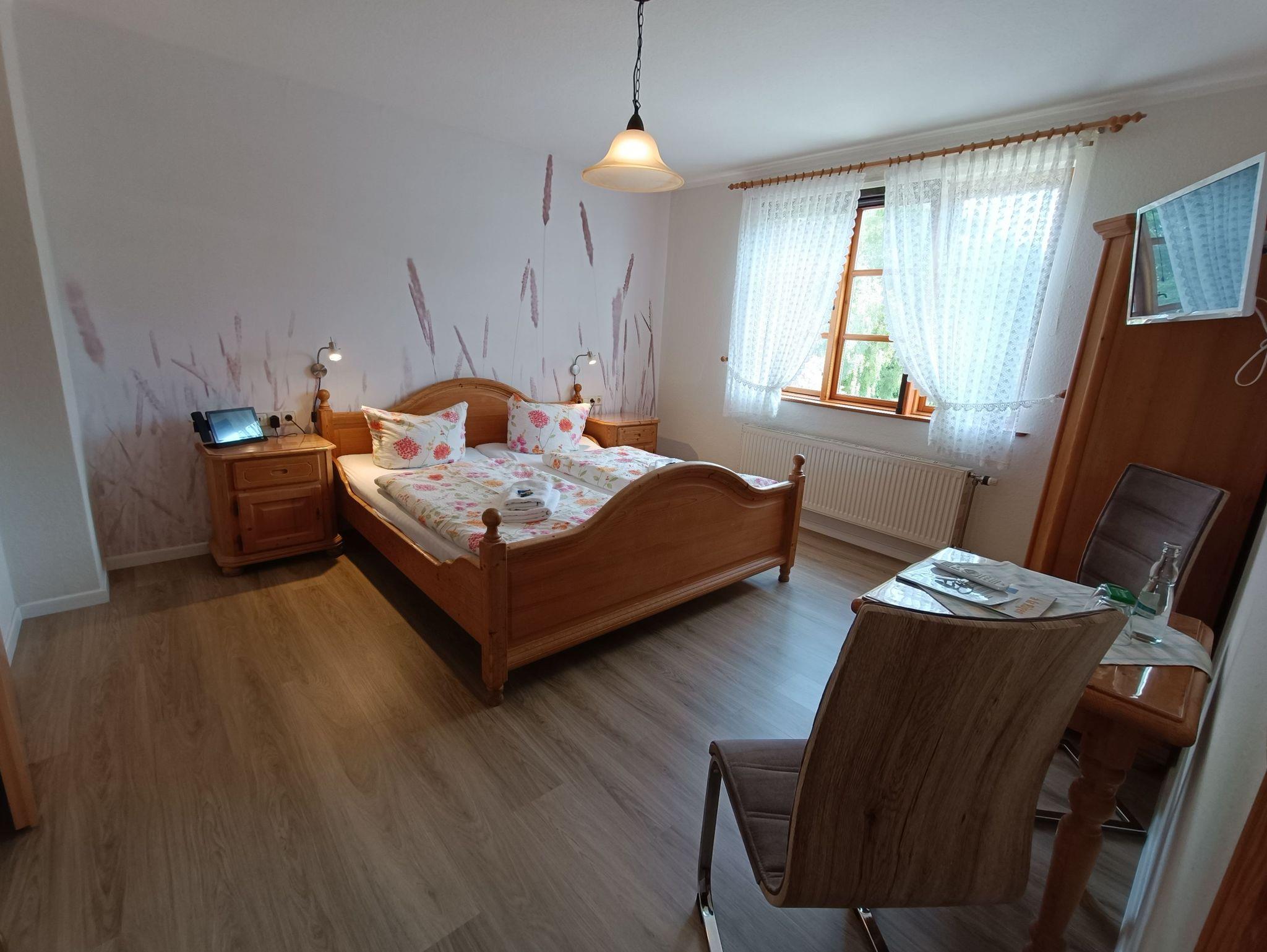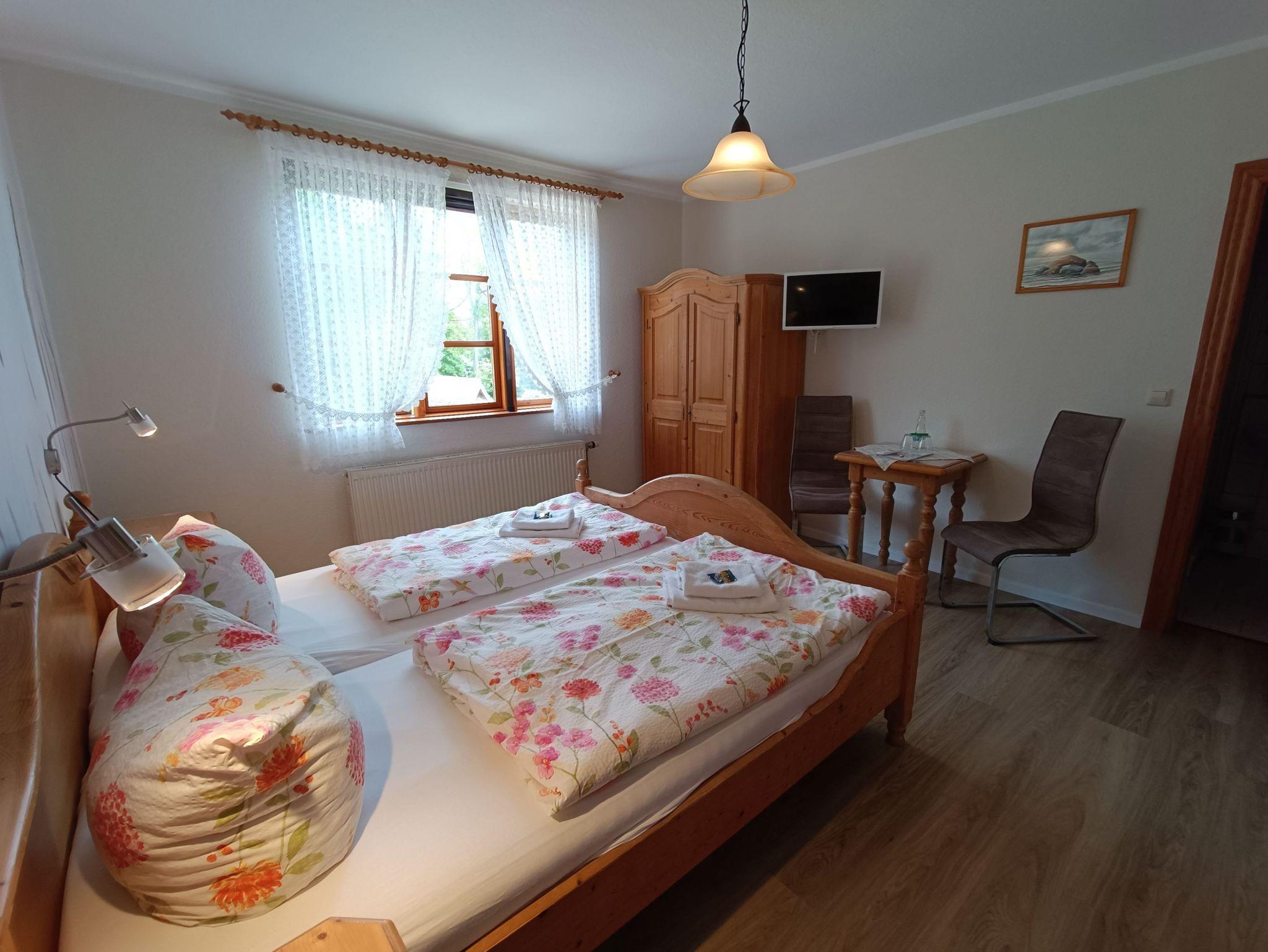 In dem reetgedeckten Haus gibt es 12 Zimmer für zwei bzw. drei Personen auf insgesamt 3 Etagen. In der Pension ist auch die Anmeldung für alle unsere Gäste untergebracht.