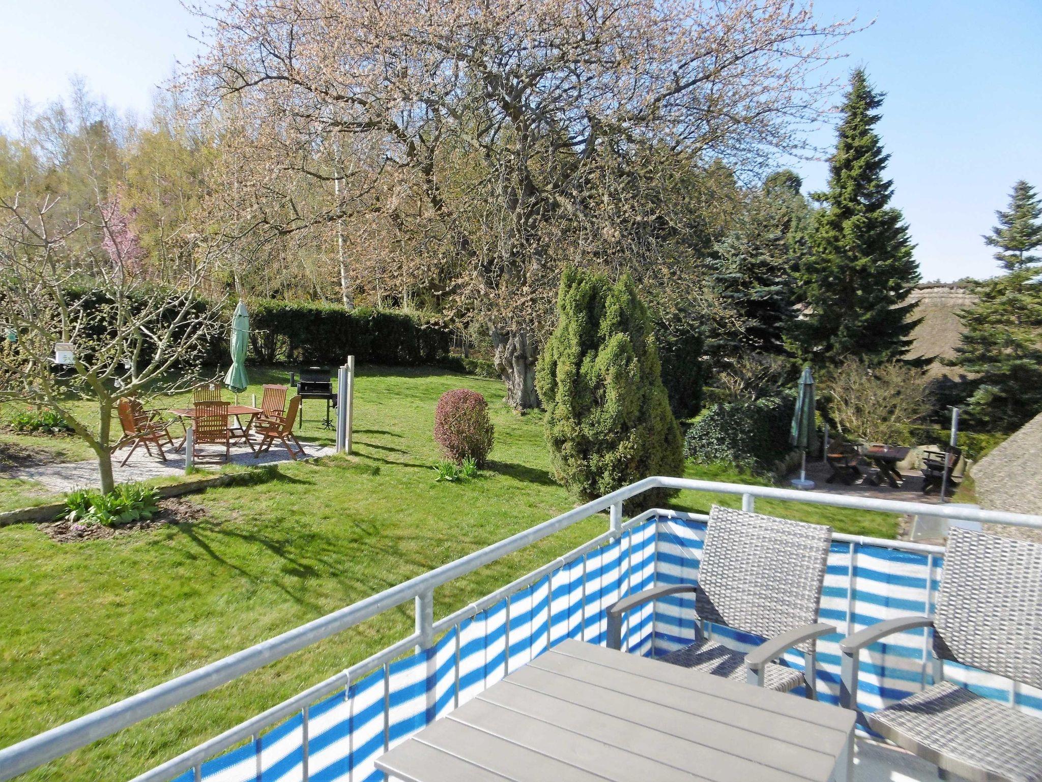 Die Fewo OG (80m²) verfügt über ein Wohnzimmer mit Küchenzeile, Esstisch, Sitzgruppe (TV), zwei separaten Schlafzimmern eines mit einem Doppelbett und einem Einzelbett und eines mit Doppelbett, sowie dem Duschbad und einem Balkon mit einer Treppe in den Garten.