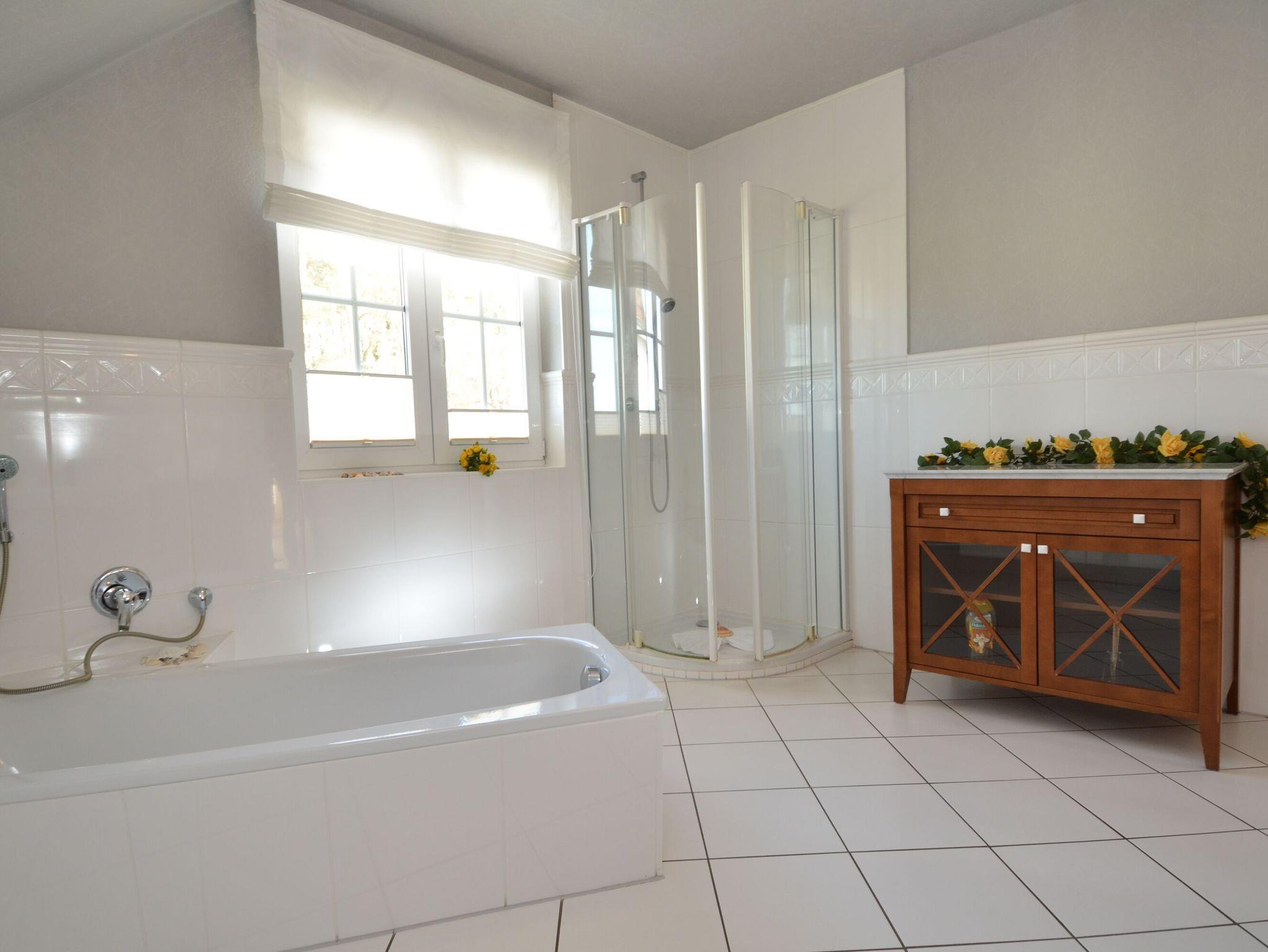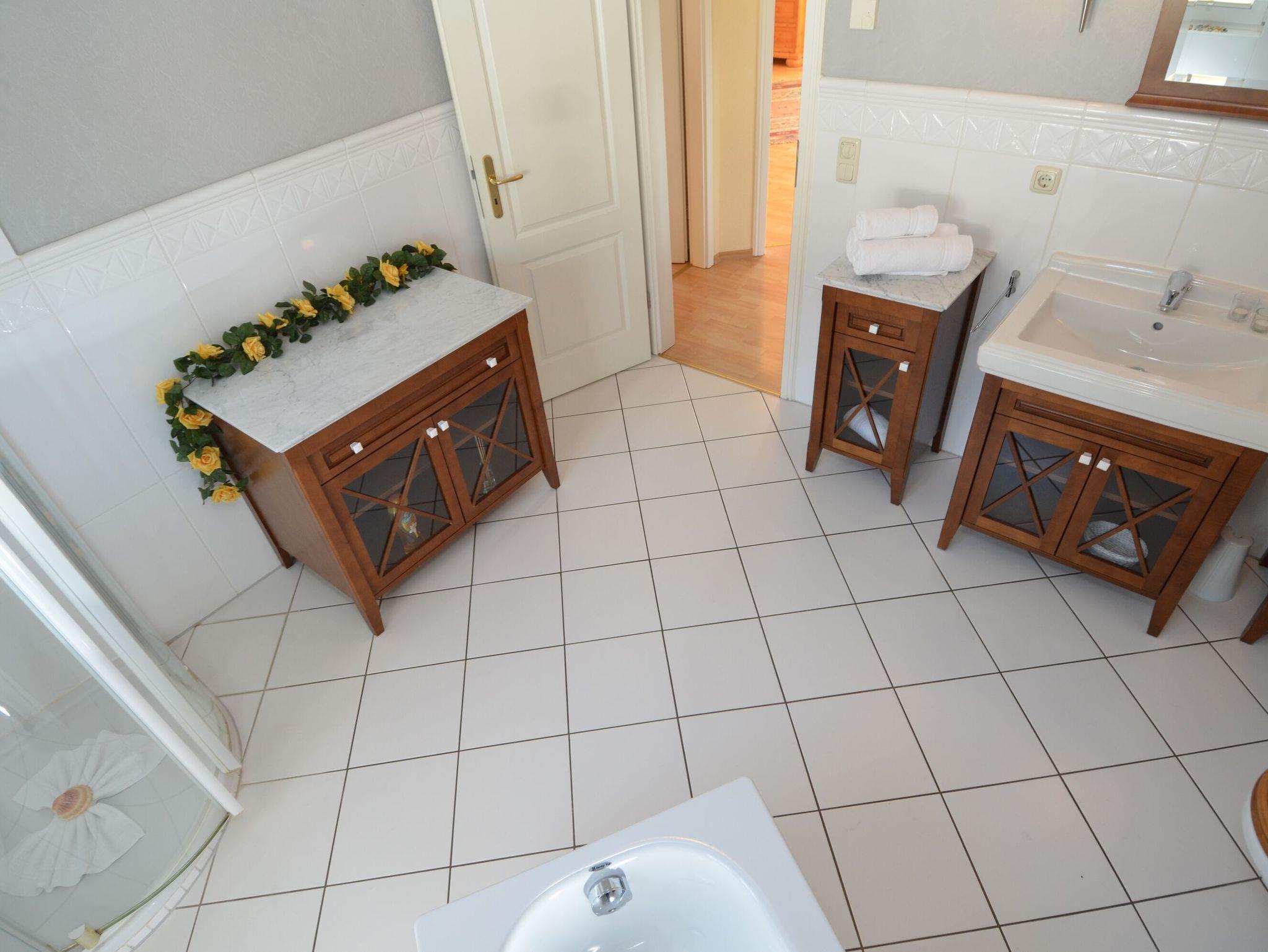 Alle Räume dieser Ebene sind gefliest und haben eine Fußbodenheizung, die in jedem Raum individuell einstellbar ist. Sie können also auch in der kühlen Jahreszeit gemütlich Ihren Urlaub verbringen. Ein W-LAN-Anschluss steht Ihnen kostenfrei zur Verfügung.