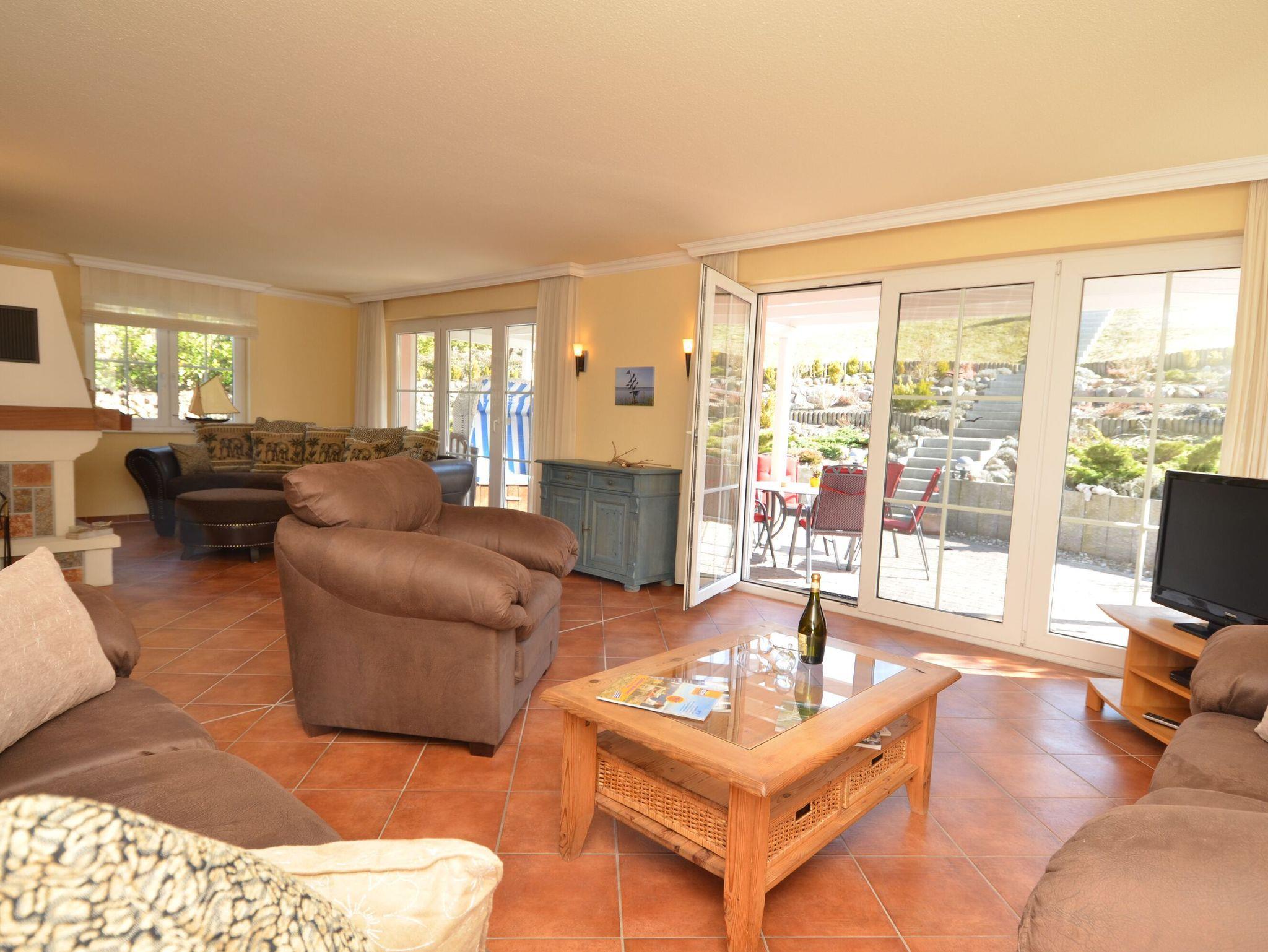 Die große Terrasse zur Südseite ist mit hochwertigen Terrassenmöbeln, Sonnenliegen sowie einem Grill versehen.