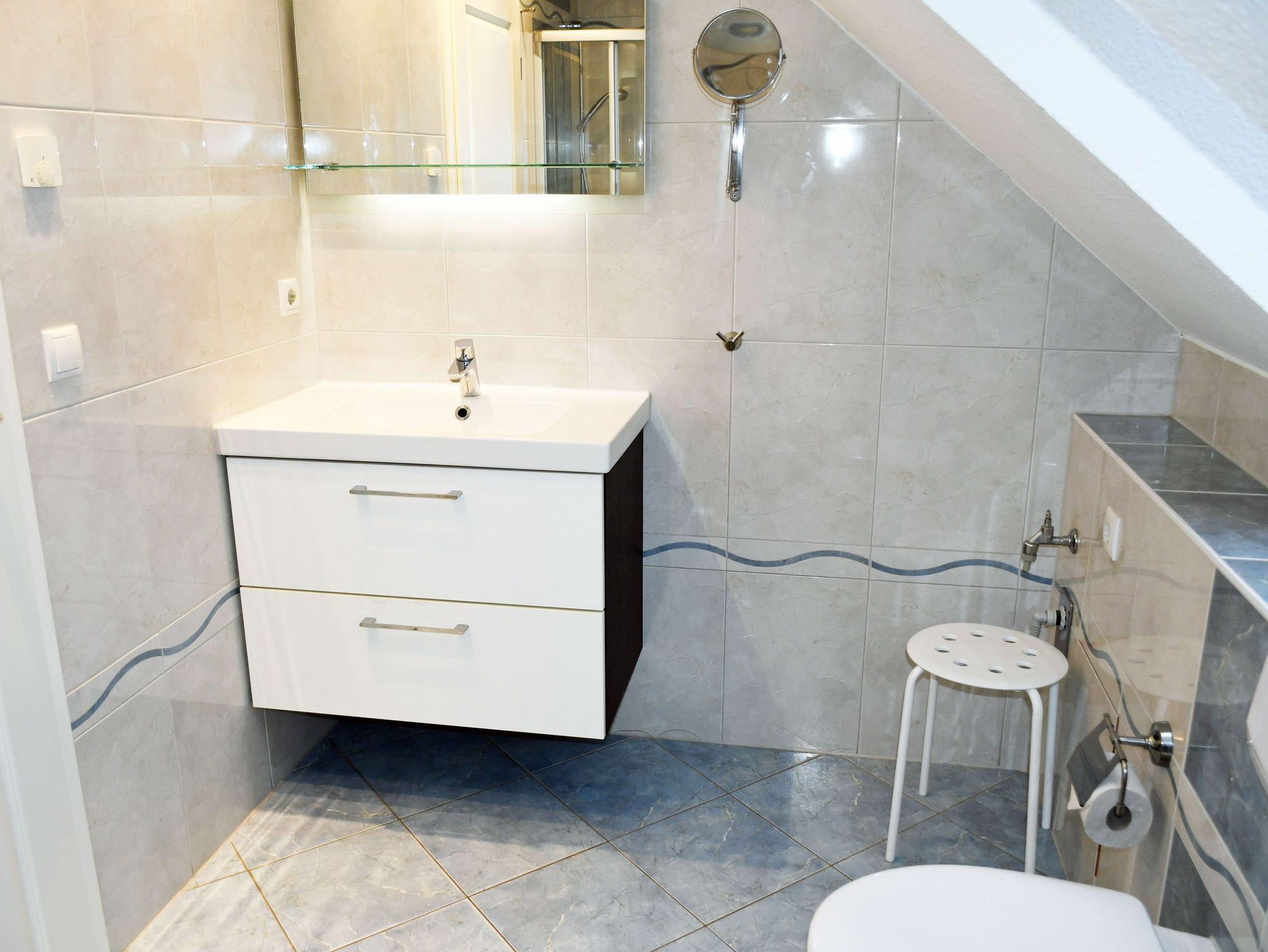 - 1. Bad mit Dusche, Waschbecken, WC, Handtuchtrockner und Tageslicht