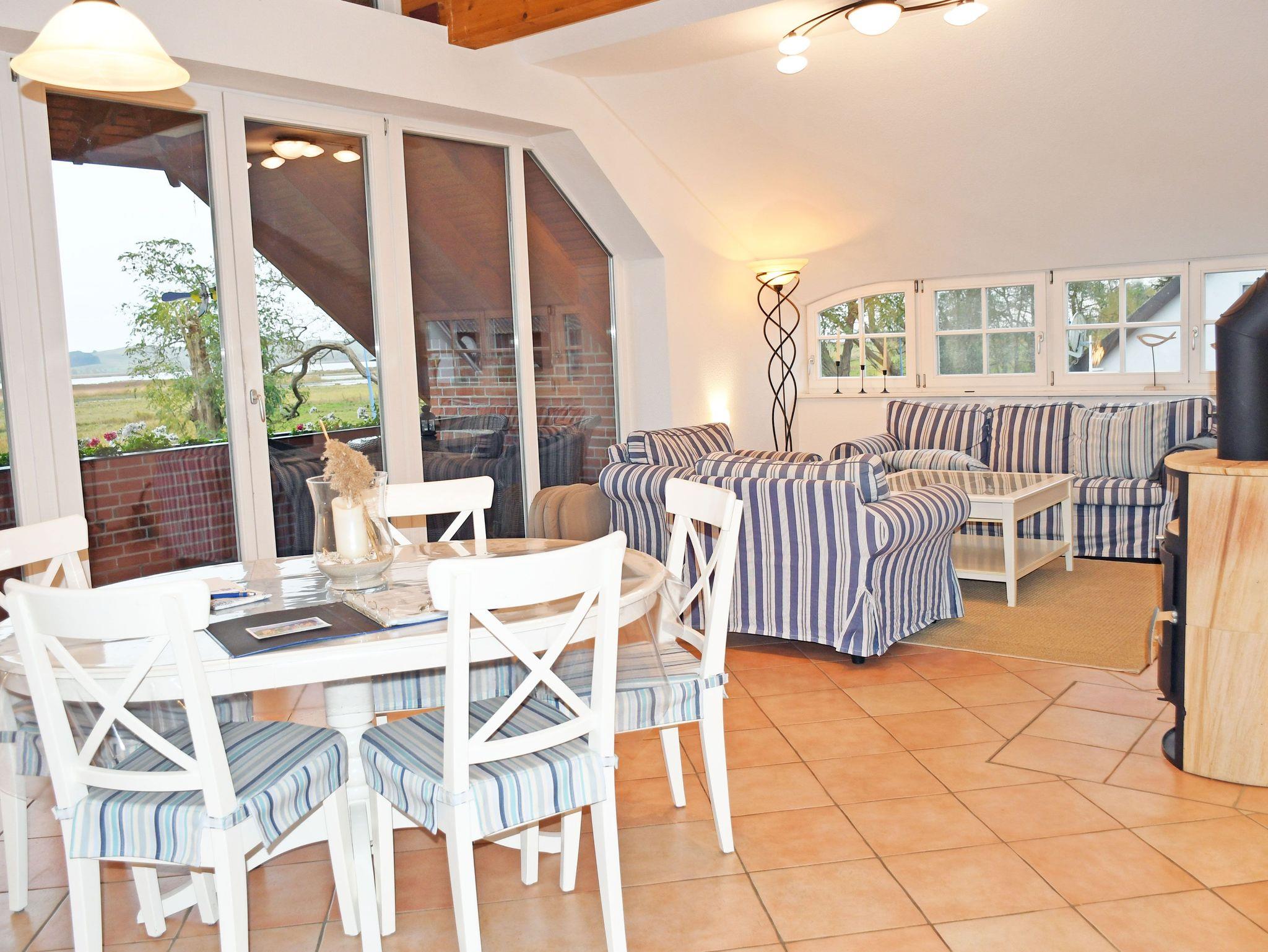 Wir bieten Ihnen acht modern und liebevoll eingerichtete Ferienwohnungen (separater Eingang, 48 - 91 qm, 1 Wohnzimmer, 1 - 2 Schlafzimmer, Küchenzeile, Dusche/Wanne/WC, WLAN-Internet, Balkon bzw. Terrasse mit Grillmöglichkeit, herrlichem Seeblick auf die Hagensche Wiek, Parkplatz, max. 4 Erw. und 2 Kinder bis 3 J.).