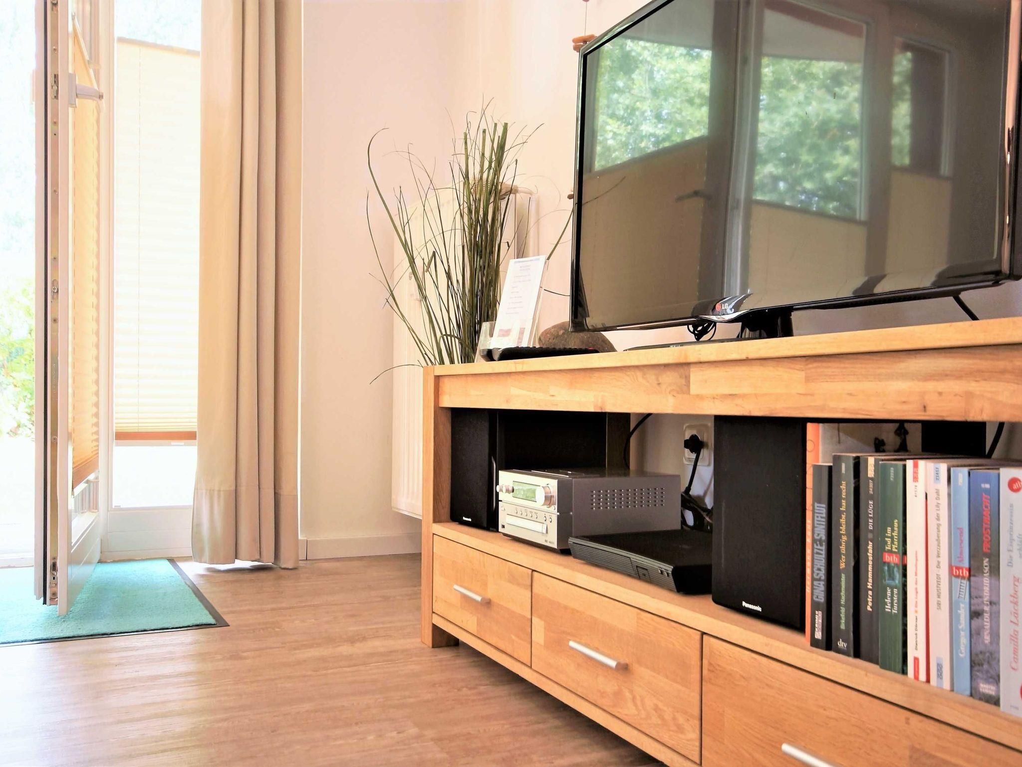 Die beiden Schlafzimmer sind mit Verdunklungsrollos ausgestattet und im Wohn- und Essbereich sind blickdichte Plissees angebracht. Mitgebrachte Fahrräder können in dem abschließbaren Gartenhaus trocken und sicher untergestellt werden. E-Bikes können hier aufgeladen werden. Der zugehörige Parkplatz befindet sich ebenfalls auf dem Grundstück der Ferienwohnung auf Rügen.