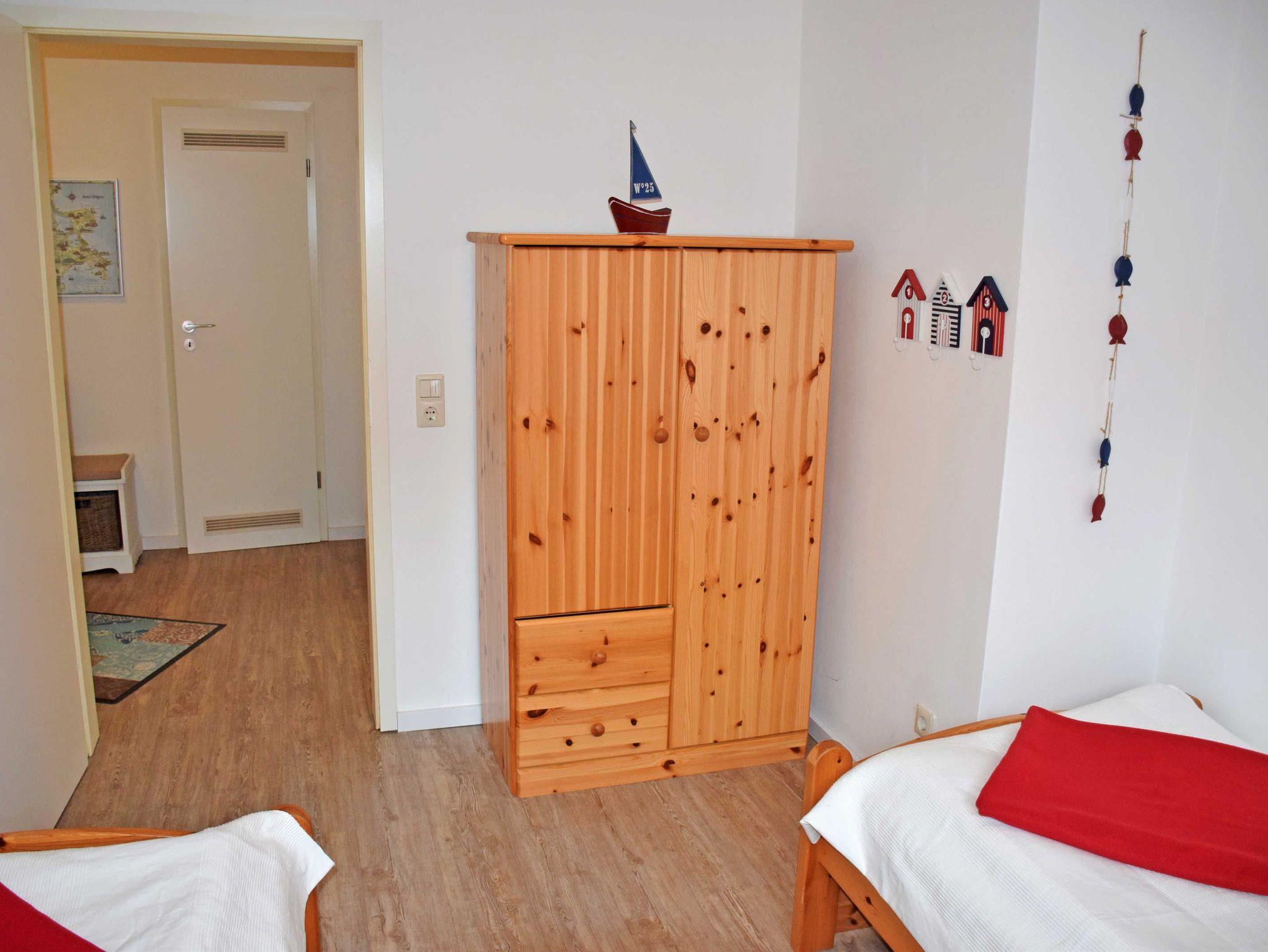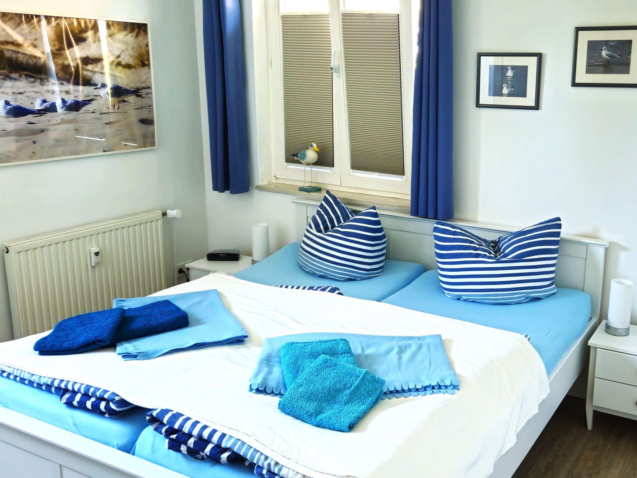 In den beiden Schlafzimmern, eines mit gemütlichem Doppelbett, eines mit zwei bequemen Einzelbetten, sind erholsame und vor allem ruhige Schlafstunden garantiert. Die beiden Zimmer verfügen jeweils über Verdunklungsrollos und Kleiderschränke.