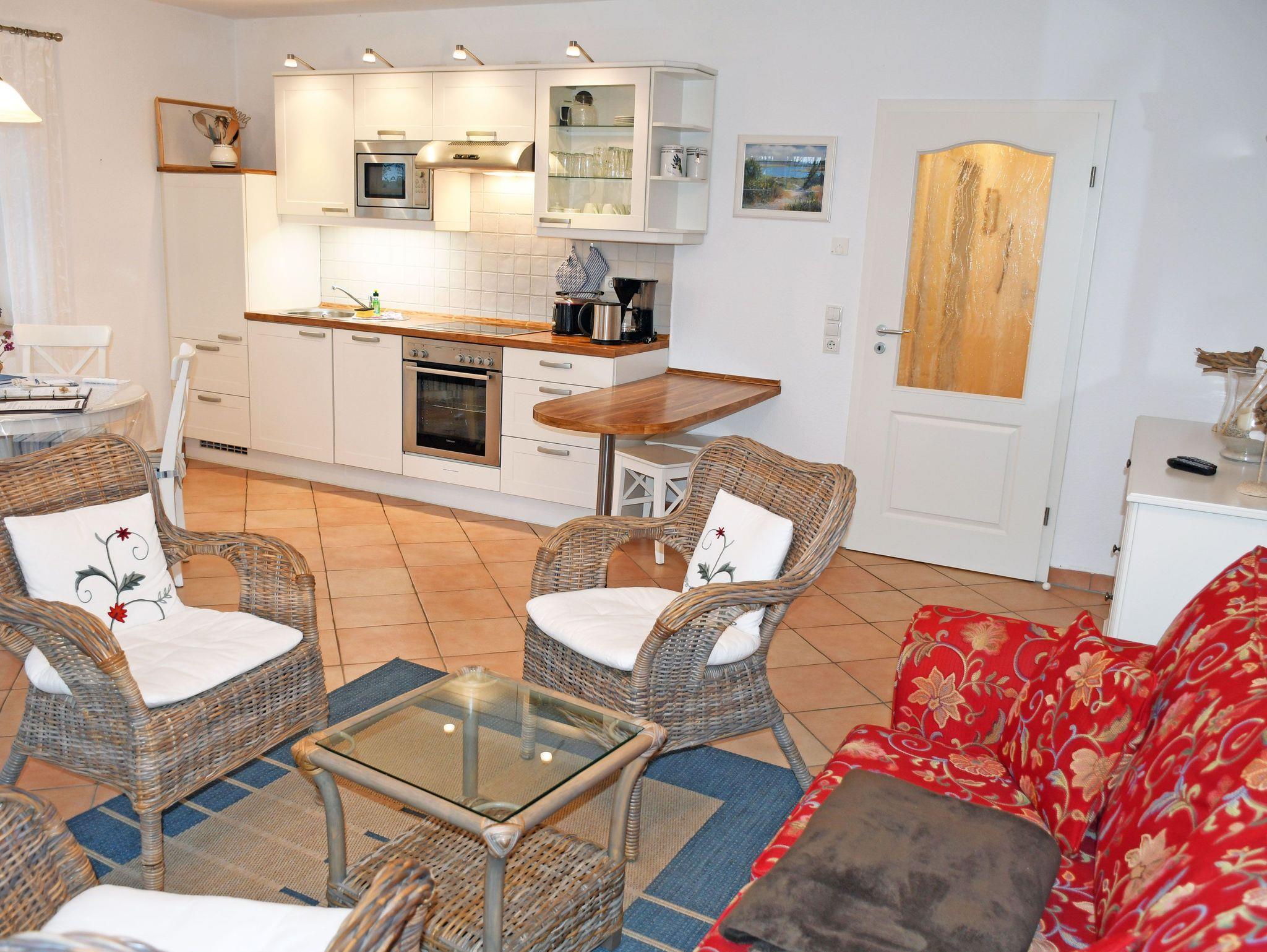Die gehobene Ausstattung ist auf max. 3 Personen (2 Erw.+ 1 Kleinkind im Kinderreisebett) abgestimmt und ermöglicht Ihnen auch bei trübem Wetter, angenehme Urlaubstage zu verbringen. Zum Wohlfühlen trägt die vorhandene Fußbodenheizung bei. In unserem eigenen Saunabereich am Objekt können Sie so richtig an frostigen Tagen entspannen. Beginnen Sie warme Urlaubstage am eignen Gartentisch im ostseetypischen Flair und lassen Sie Ihre erlebnisreichen Tage im Freien ausklingen.