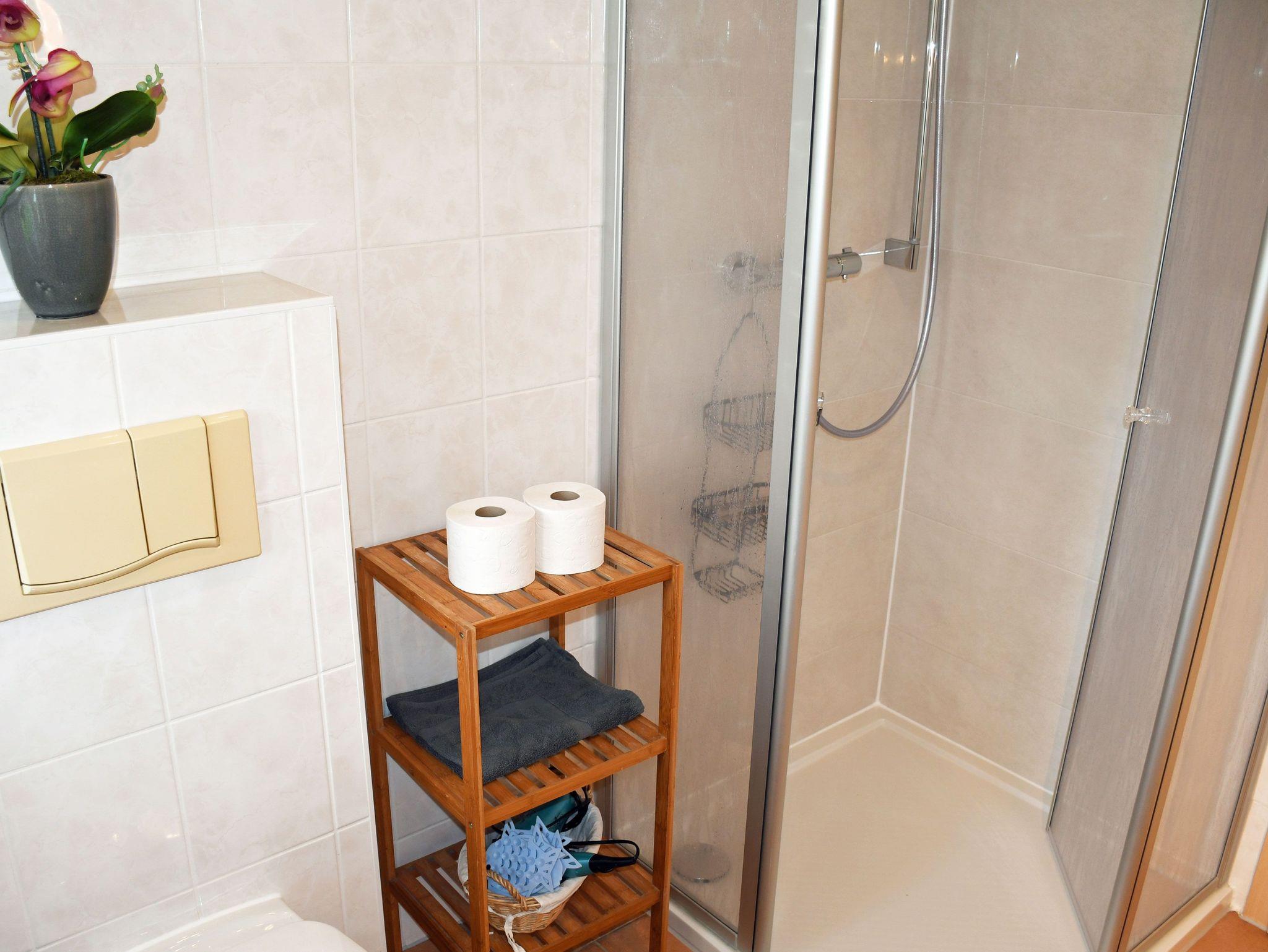 Auf der vor den Wohnungen liegenden Sonnenterrasse mit Gartenmöbeln können Sie die Sonne genießen oder bei einem Gläschen Wein entspannen. Die moderne Küchenzeile ist mit einem Cerankochfeld, Abzugshaube, Backofen, Wasserkocher, Kaffeemaschine, Toaster und Kühlschrank komplett ausgestattet. Das Schlafzimmer ist mit einem bequemen Doppelbett, Nachttischen und Leselampen sowie einem Kleiderschrank ausgestattet. Ein Kinderreisebett und Hochstuhl können auf Wunsch gern bereitgestellt werden. Auf Wunsch sind gegen Aufpreis bei Ihrer Anreise die Betten mir Bettwäsche bezogen und es liegen frische Handtücher bereit, bitte dann mitbuchen! Das moderne und helle Bad ist mit Dusche, WC, Fön und Waschtisch ausgestattet und verfügt über Tageslicht.