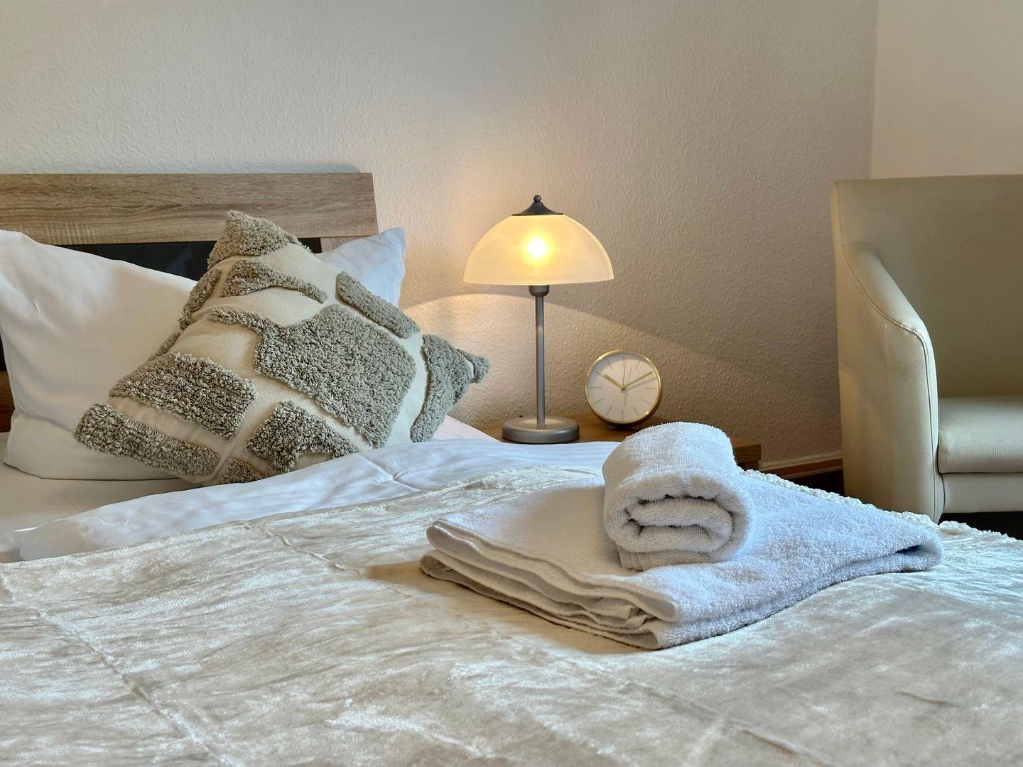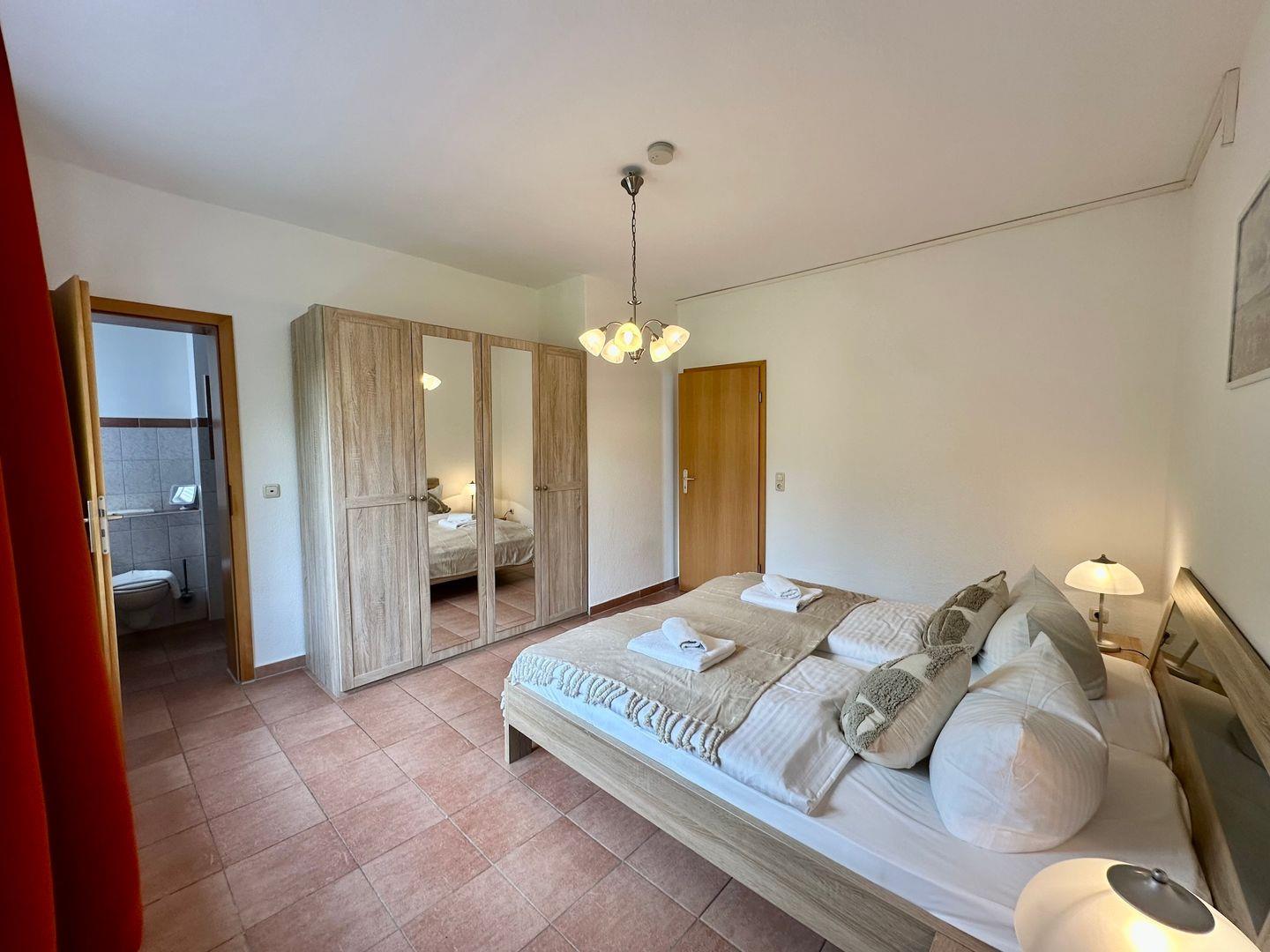 Ferienwohnung 1 bietet auf großzügigen 52?m² alles, was Familien oder kleine Gruppen bis zu vier Personen für einen erholsamen Aufenthalt brauchen. Zwei getrennte Schlafzimmer mit jeweils einem bequemen King-Size-Bett und zwei voll ausgestattete Badezimmer sorgen für maximalen Komfort und Flexibilität.