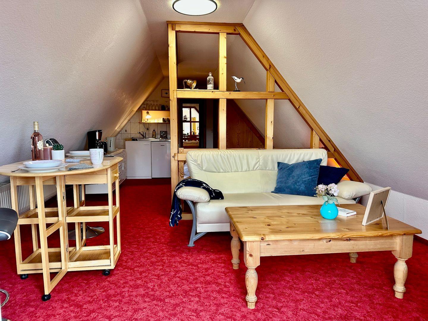 Die Wohnung liegt im Dachgeschoss mit ruhiger Ausrichtung und Zugang zum Gemeinschaftsgarten. Die Badestelle ist in wenigen Minuten erreichbar. Kostenfreie Parkplätze befinden sich direkt auf dem Grundstück.