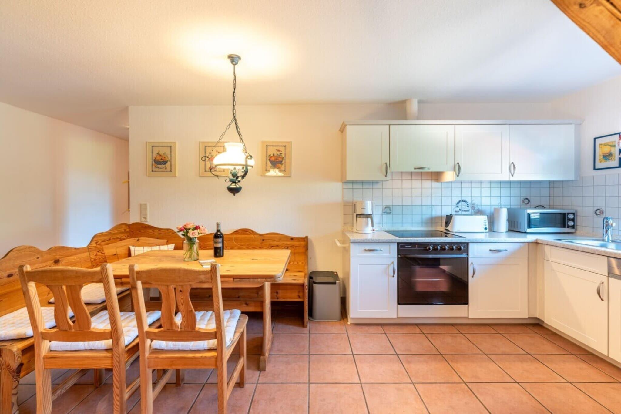 Soveværelser Lejligheden har to komfortable soveværelser. Stue Den centrale stue tilbyder en hyggelig sofagruppe og et spisebord, hvor I kan nyde måltider sammen. Der er også underholdning: et fjernsyn er tilgængeligt. Wi-Fi er tilgængeligt i hele lejligheden, så I kan holde forbindelsen selv på ferie. Køkken Det åbne køkken indbyder til at skabe kulinariske lækkerier. Udstyret med komfur, ovn, køleskab og et udvalg af køkkenredskaber, lader det intet tilbage at ønske. Badeværelse Efter en dag fuld af eventyr kan I slappe af på badeværelset. En hårtørrer er til rådighed for jeres bekvemmelighed.