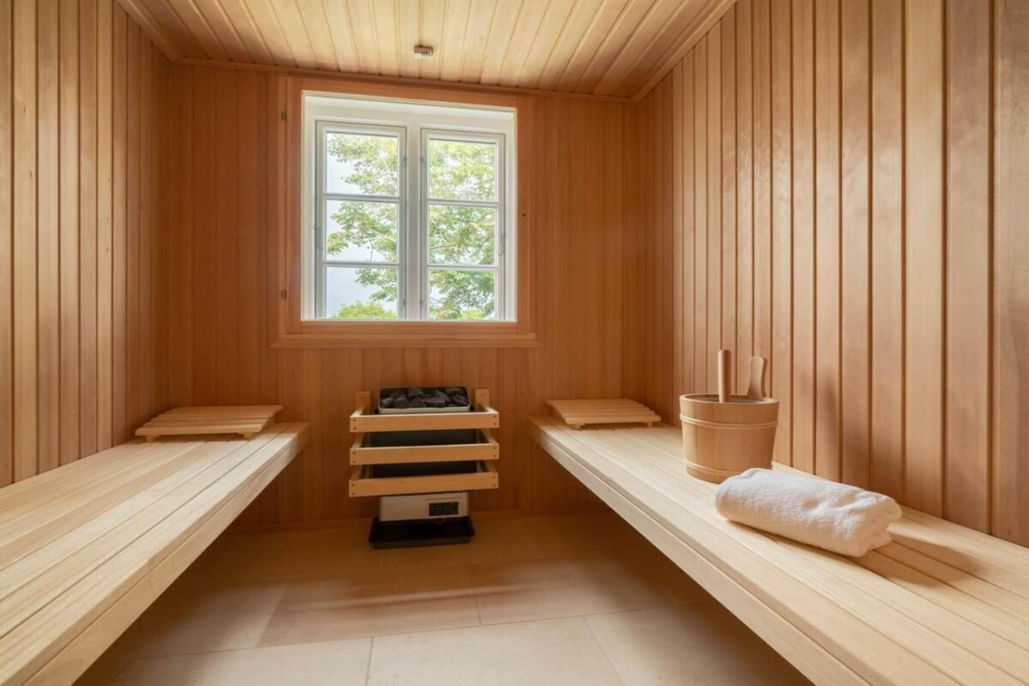 , , , entre, åbent køkken(, , bibliotek, Fjernsyn, spisebord, kakkelovn, radio, elkedel, brødrister, brødrister, komfur, kaffemaskine, ovn, opvaskemaskine , køleskab, fryser, fryser, Foodprocessor), soveværelse(, dobbeltseng, Fjernsyn), soveværelse(, dobbeltseng, Fjernsyn), soveværelse(, dobbeltseng, Fjernsyn), guest toilet(toilet, håndvask), loungerum(sauna), Internetadgang, Internetadgang, tørretumbler, vaskemaskine, varme, terrasse(, Strand, havemøbler, solstole), have(Haveskur), parkering, strygebræt, strygejern